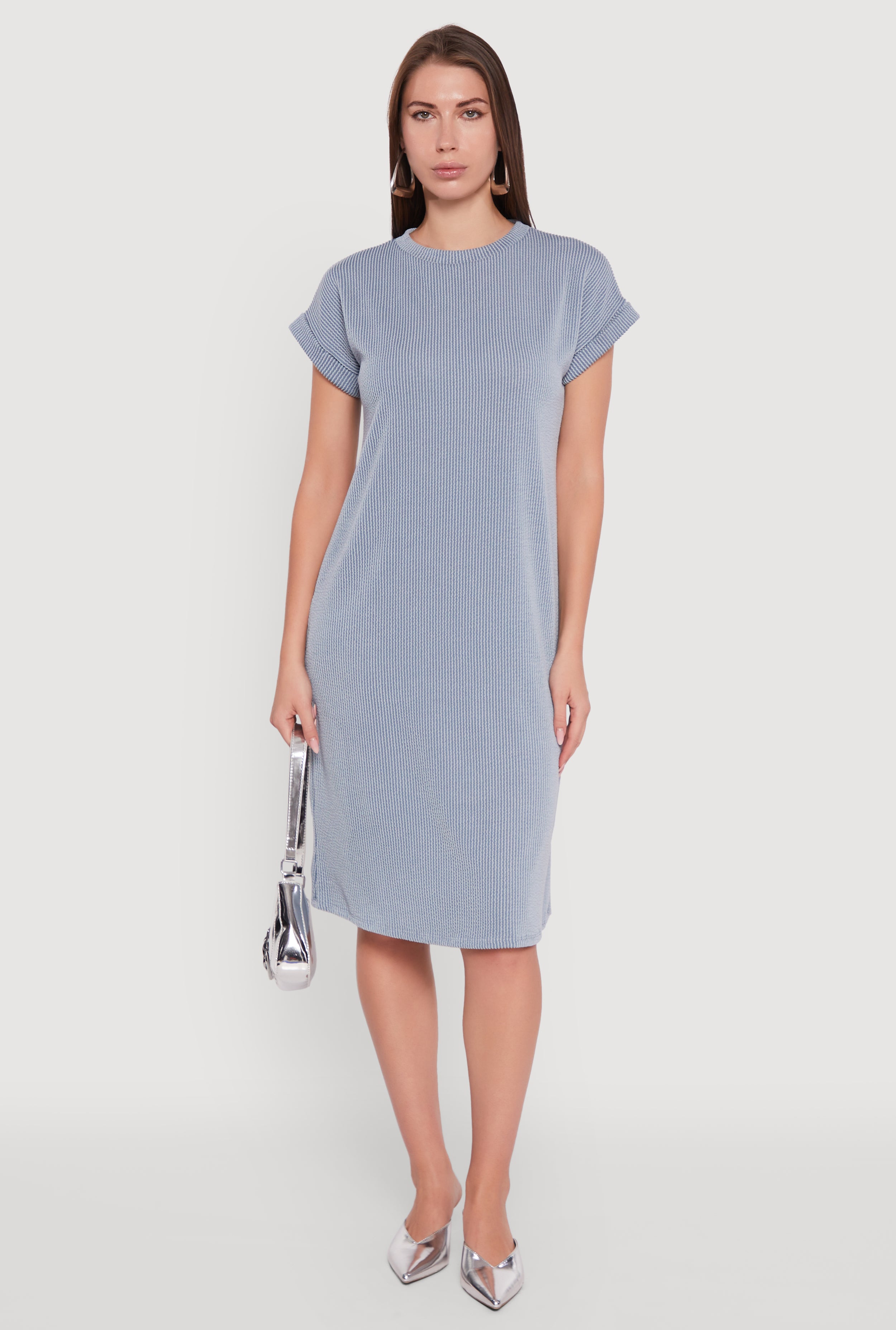 Rib Knit Shadow Stripe Fixed Cuff T-Shirt Dress