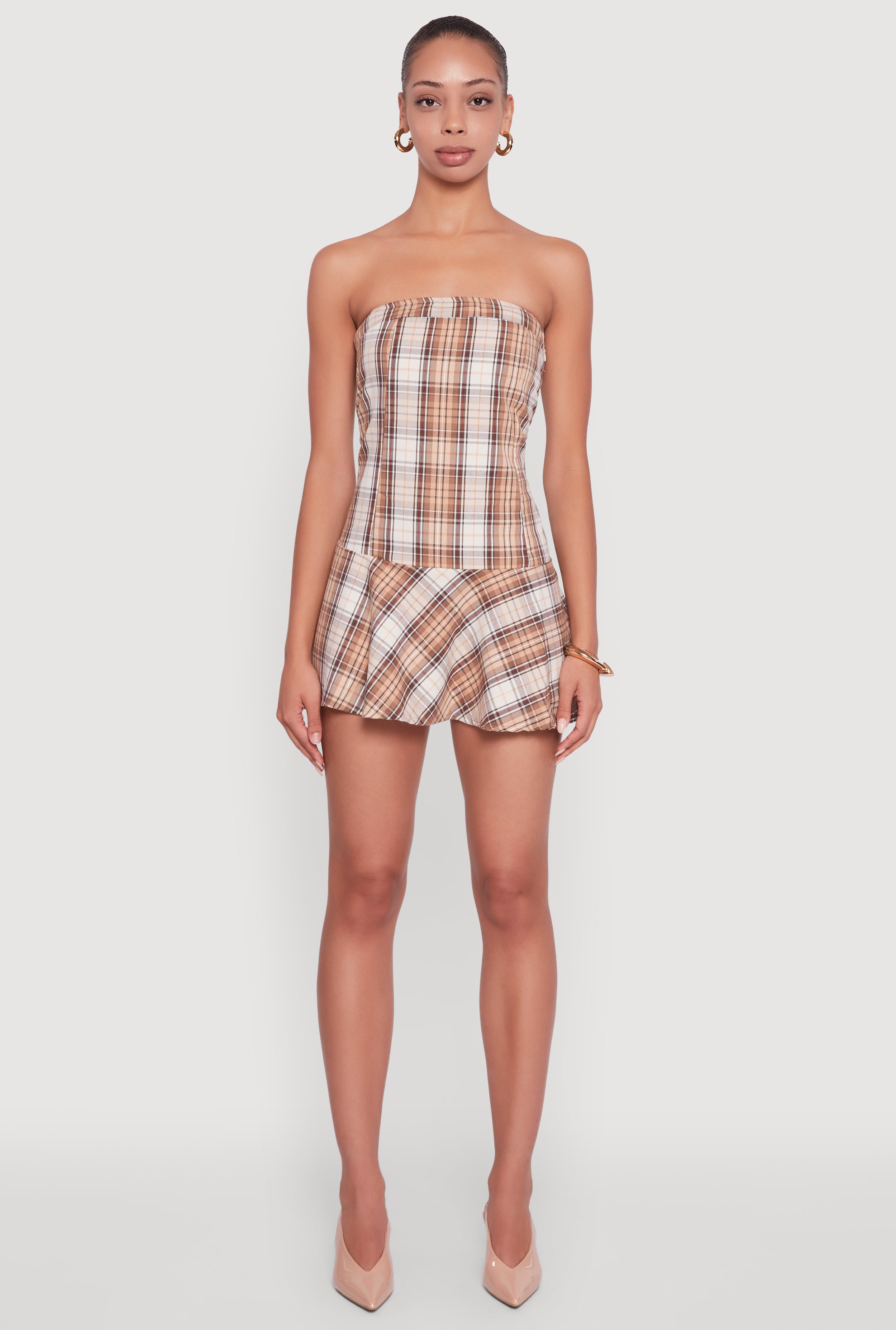 Plaid Strapless Skater Dress