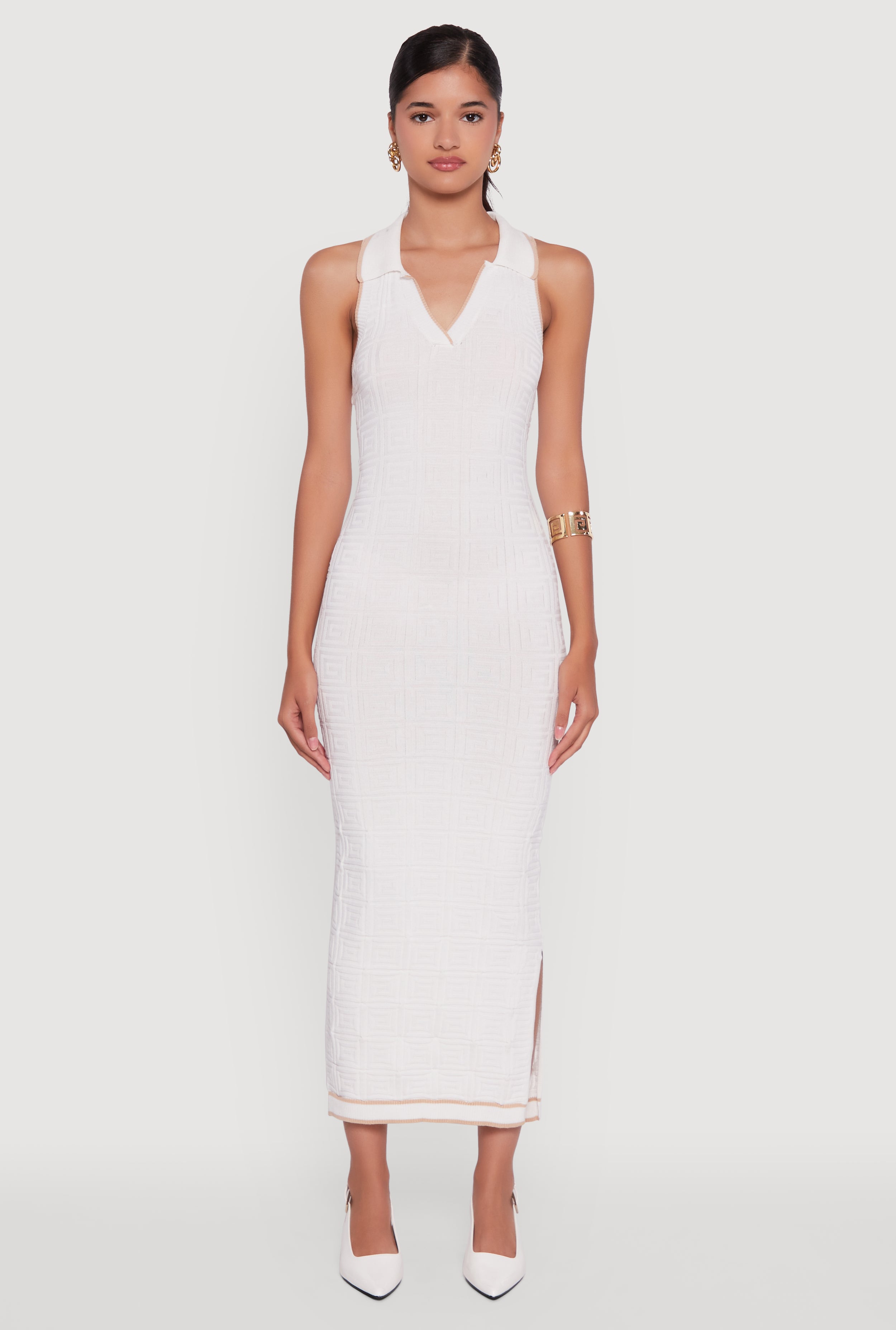 Textured Knit Greek Key Patterned Midi Dress