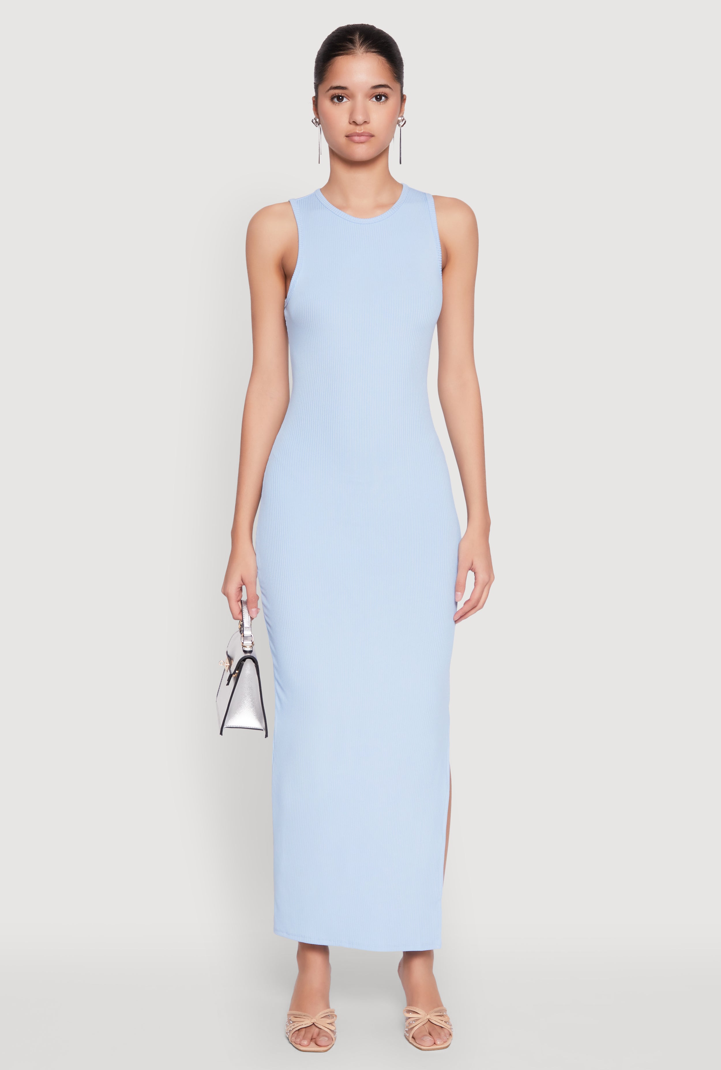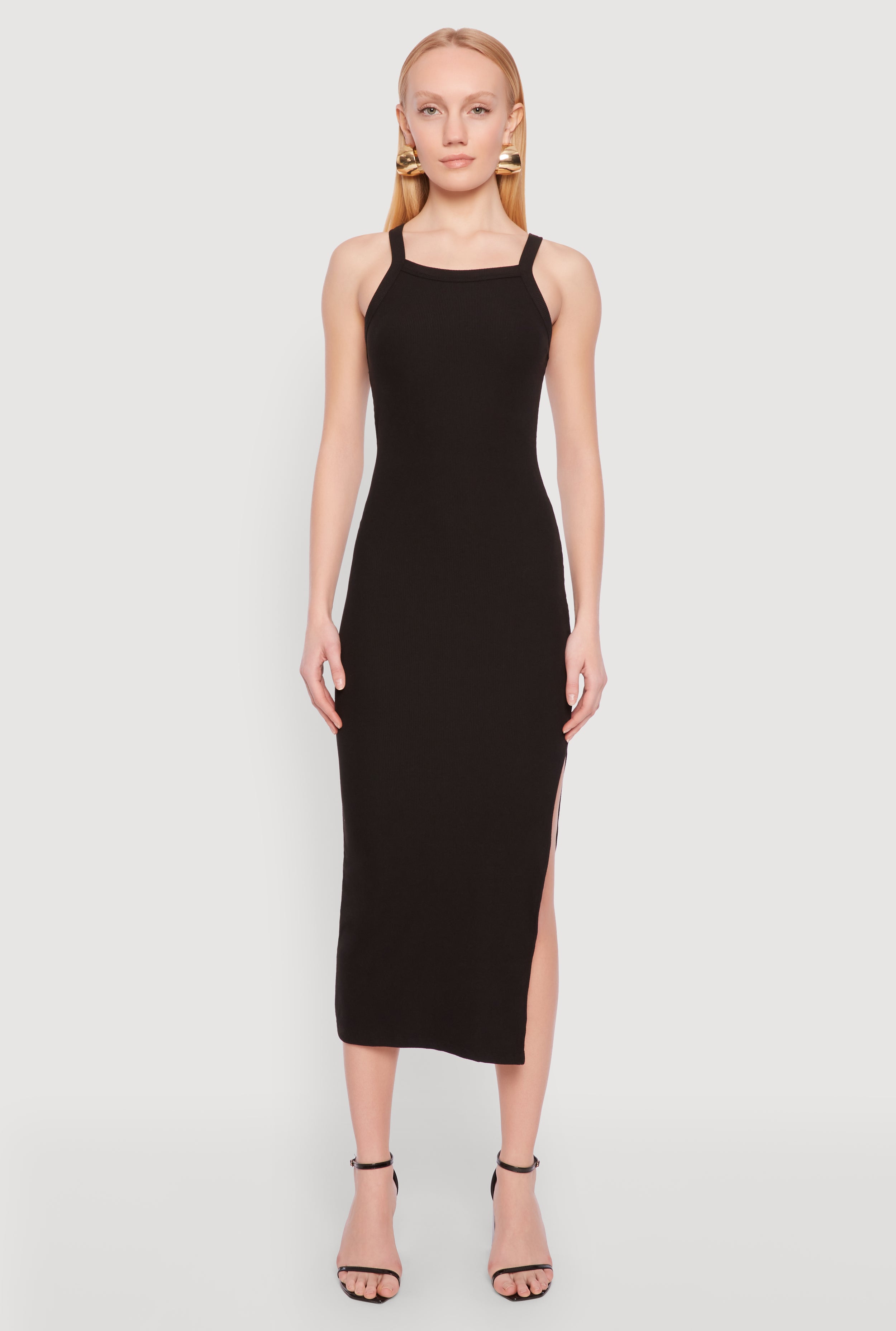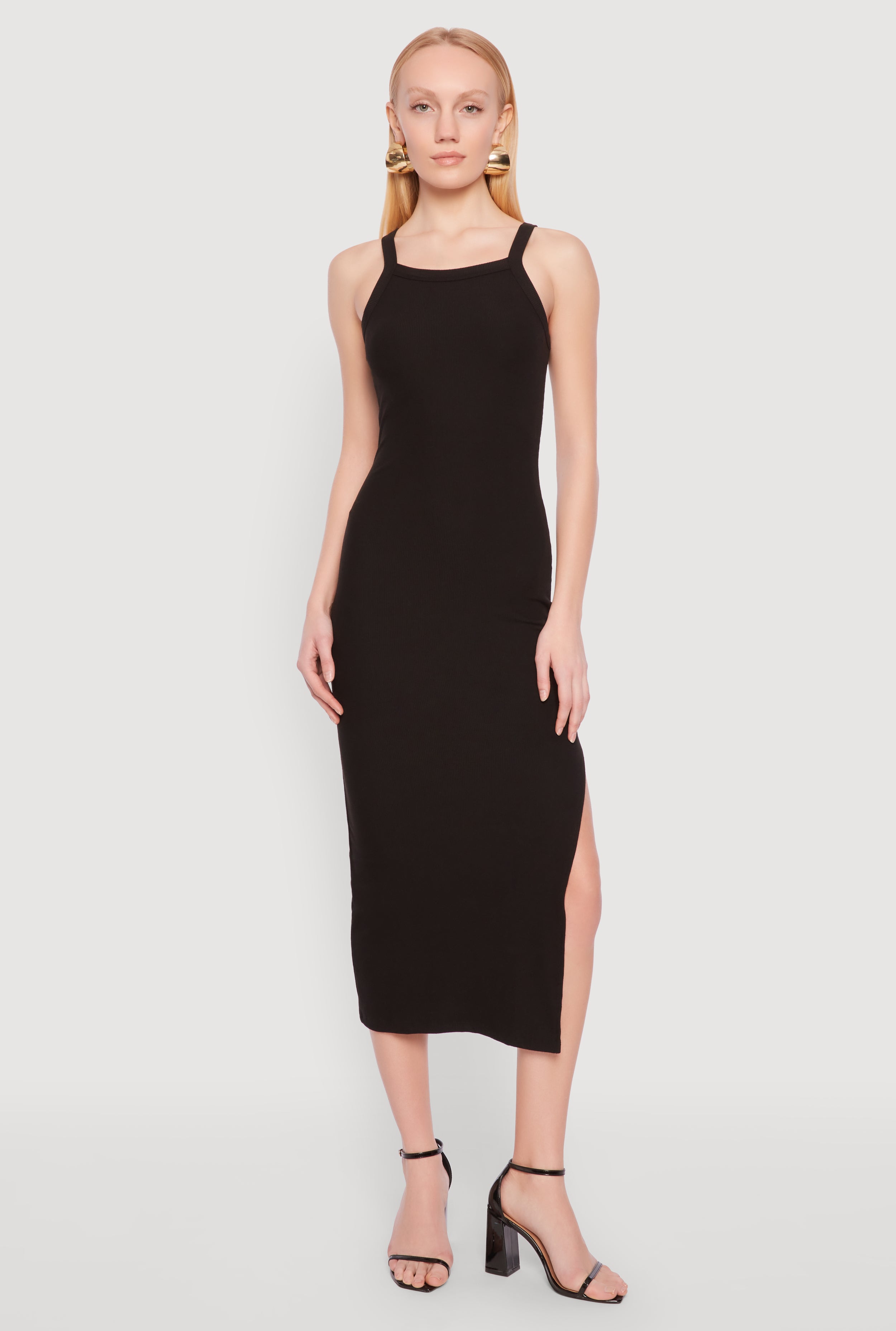 Ribbed Knit Side Slit Tank Maxi Dress