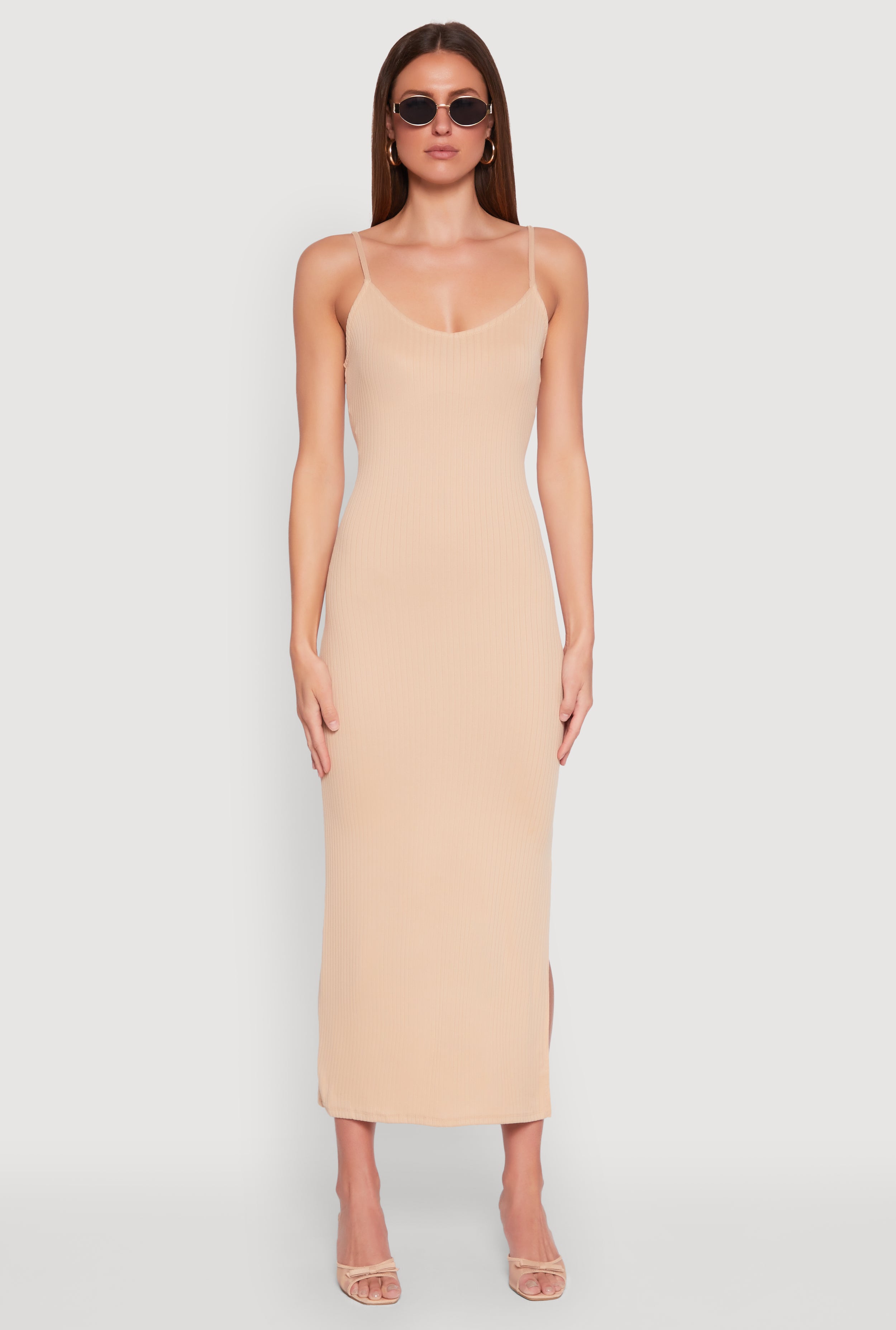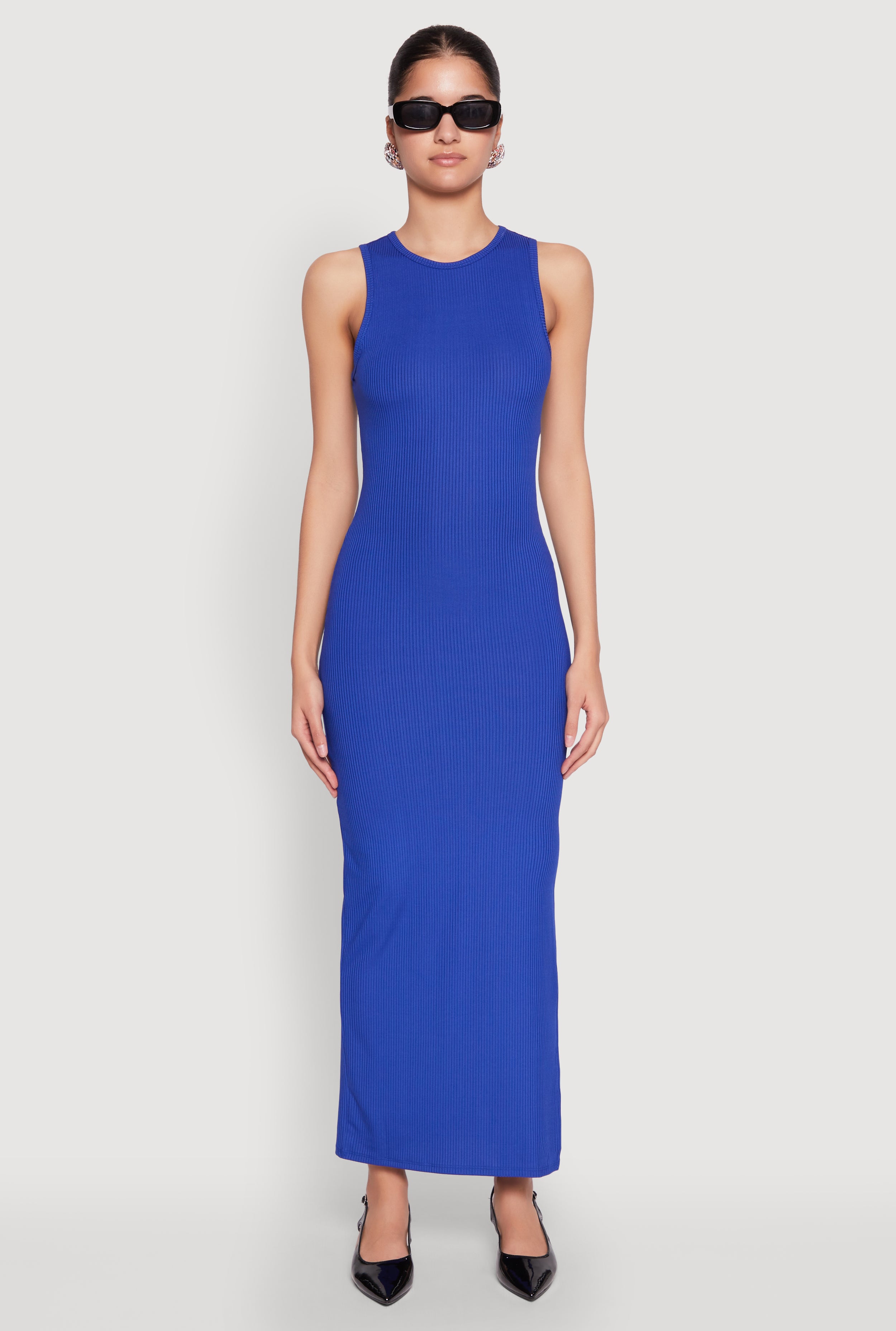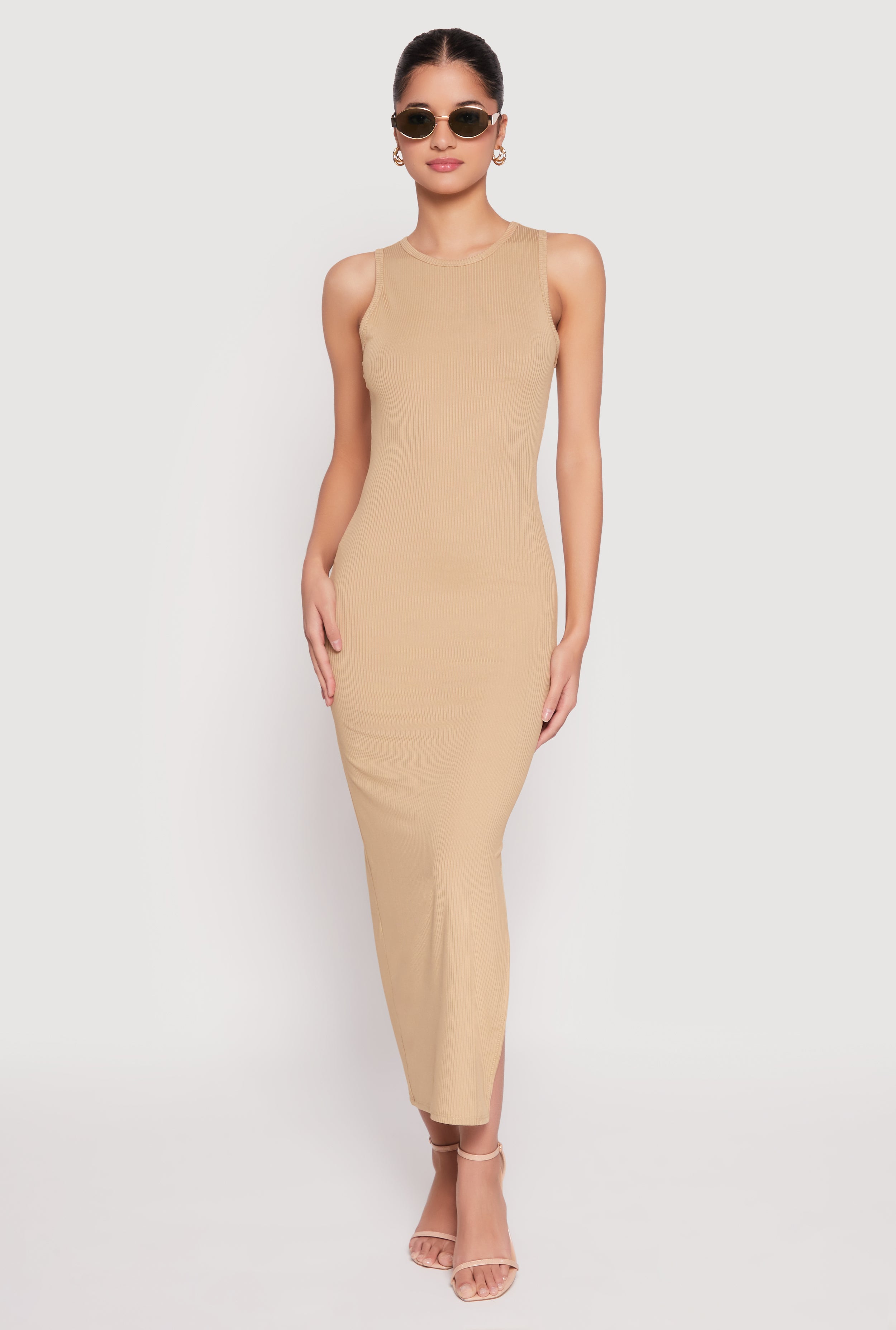 Ribbed Knit Side Slit Tank Maxi Dress