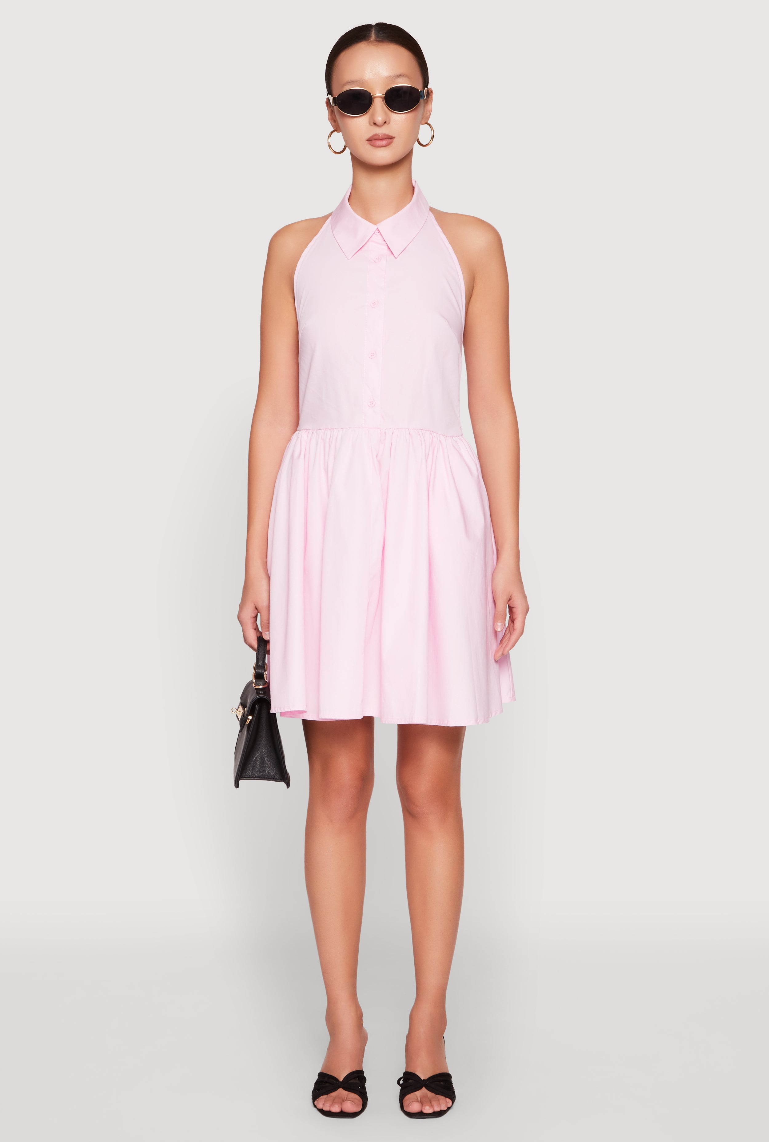 Halter Button Front Skater Dress