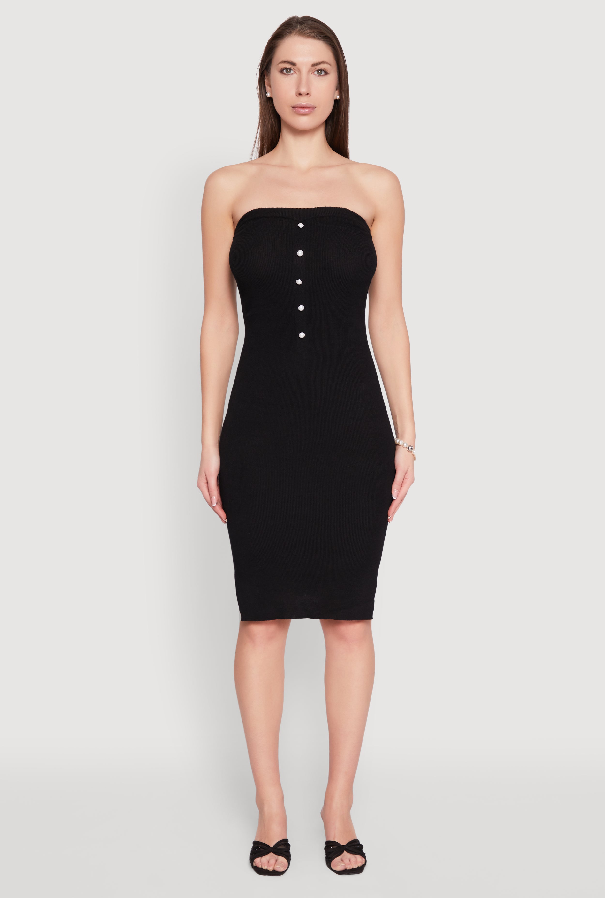 Ribbed Knit Faux Pearl Detail Tube Dress