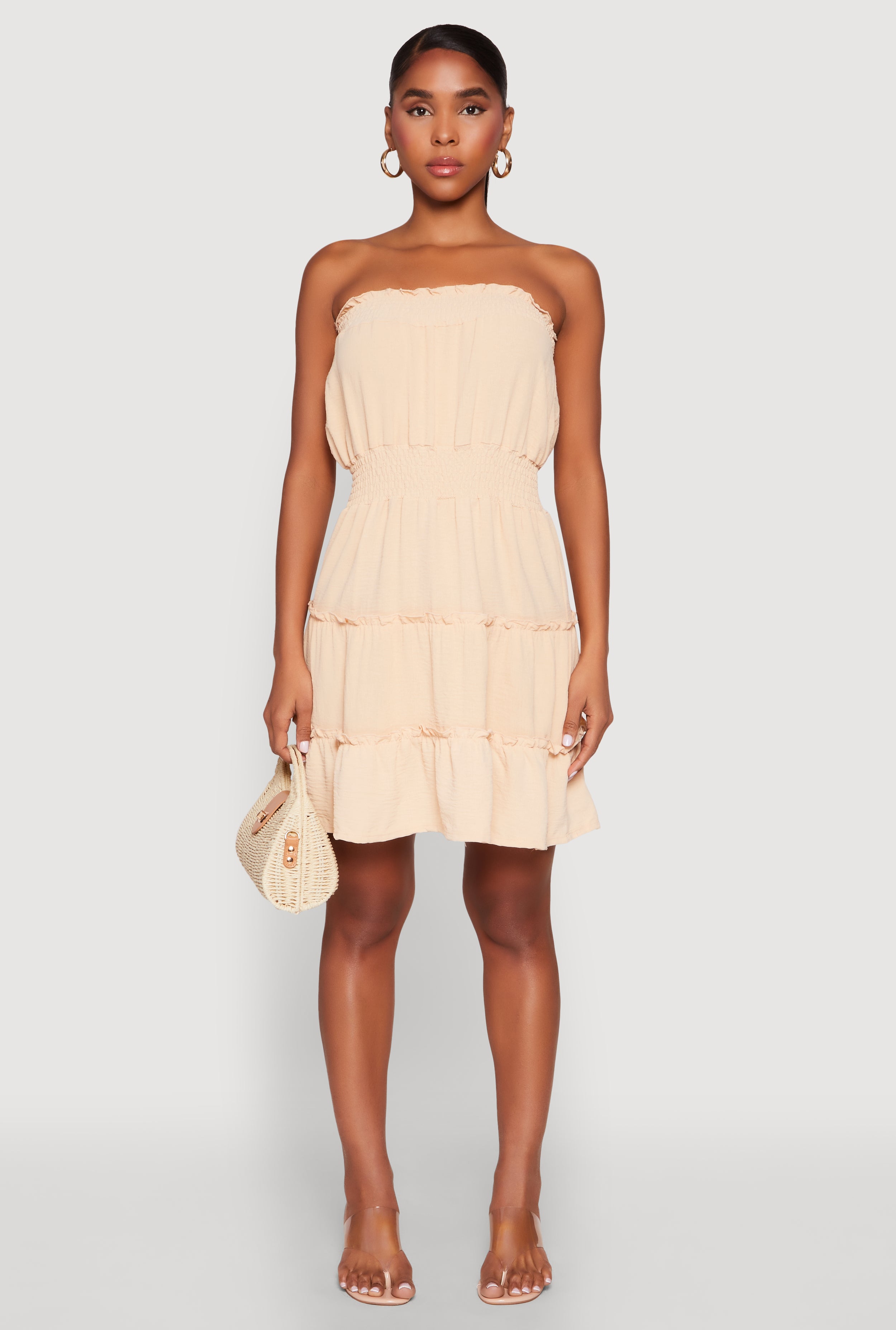 Strapless Smocked Tiered Mini Dress