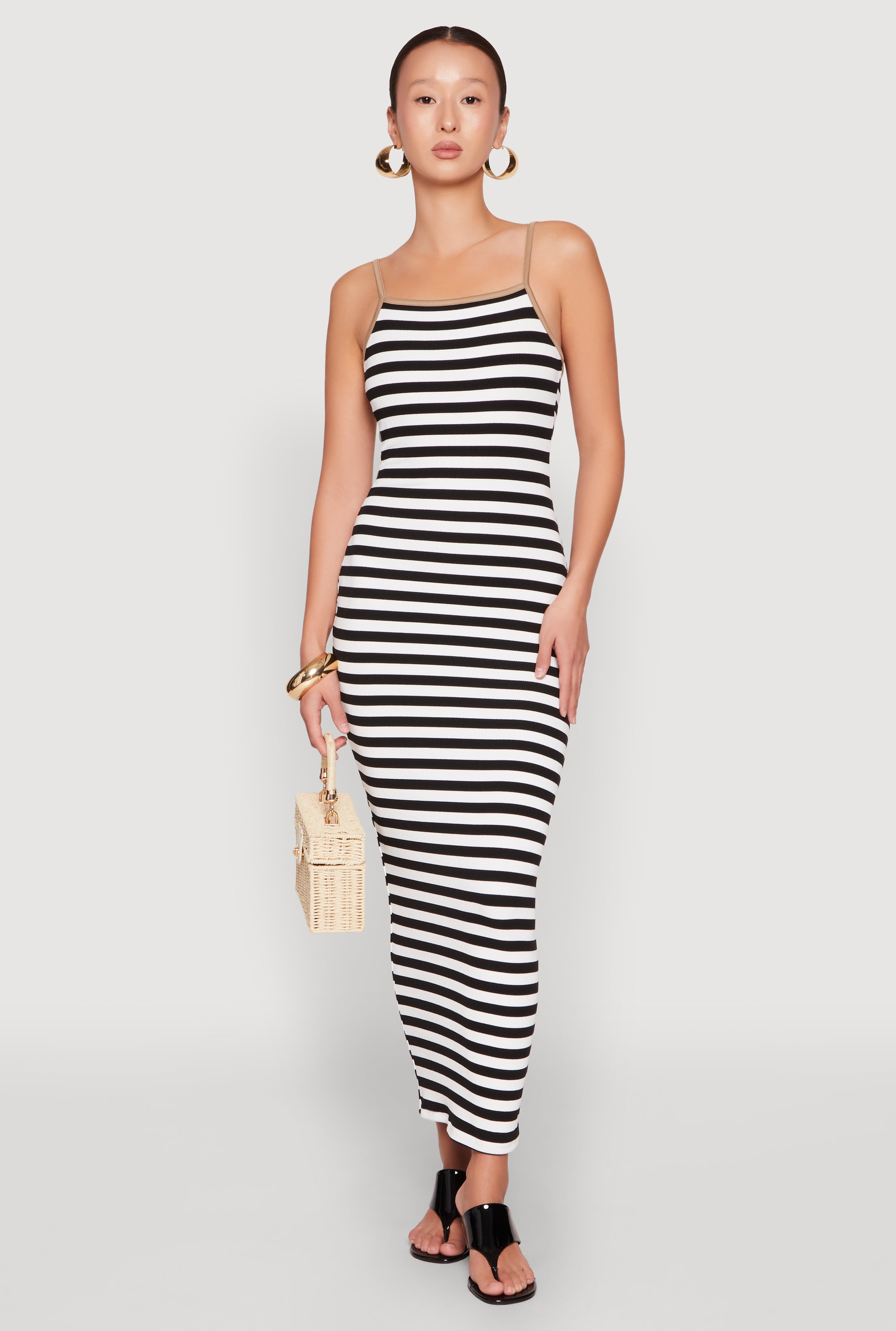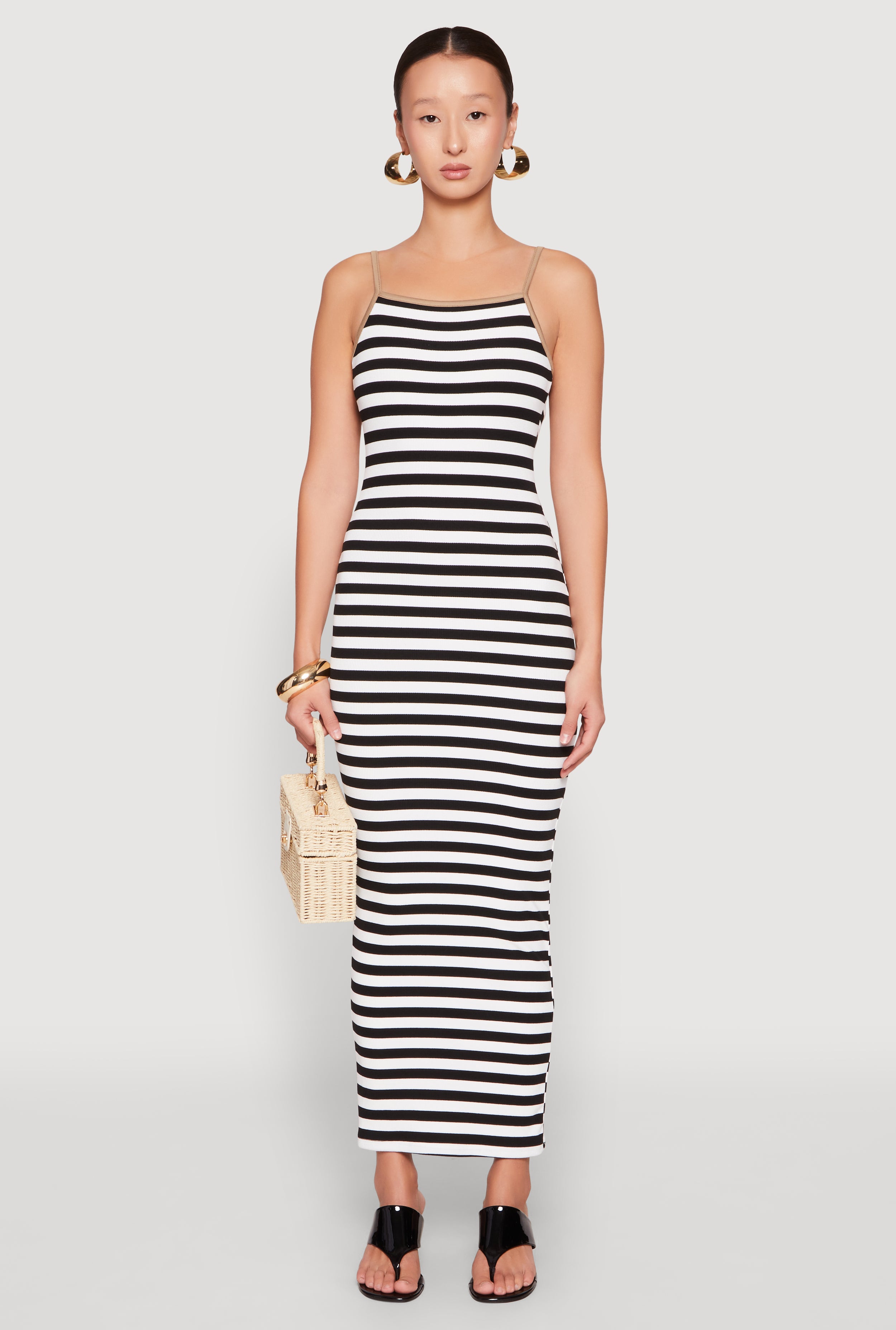 Striped Cut Out Midi Tank Dress