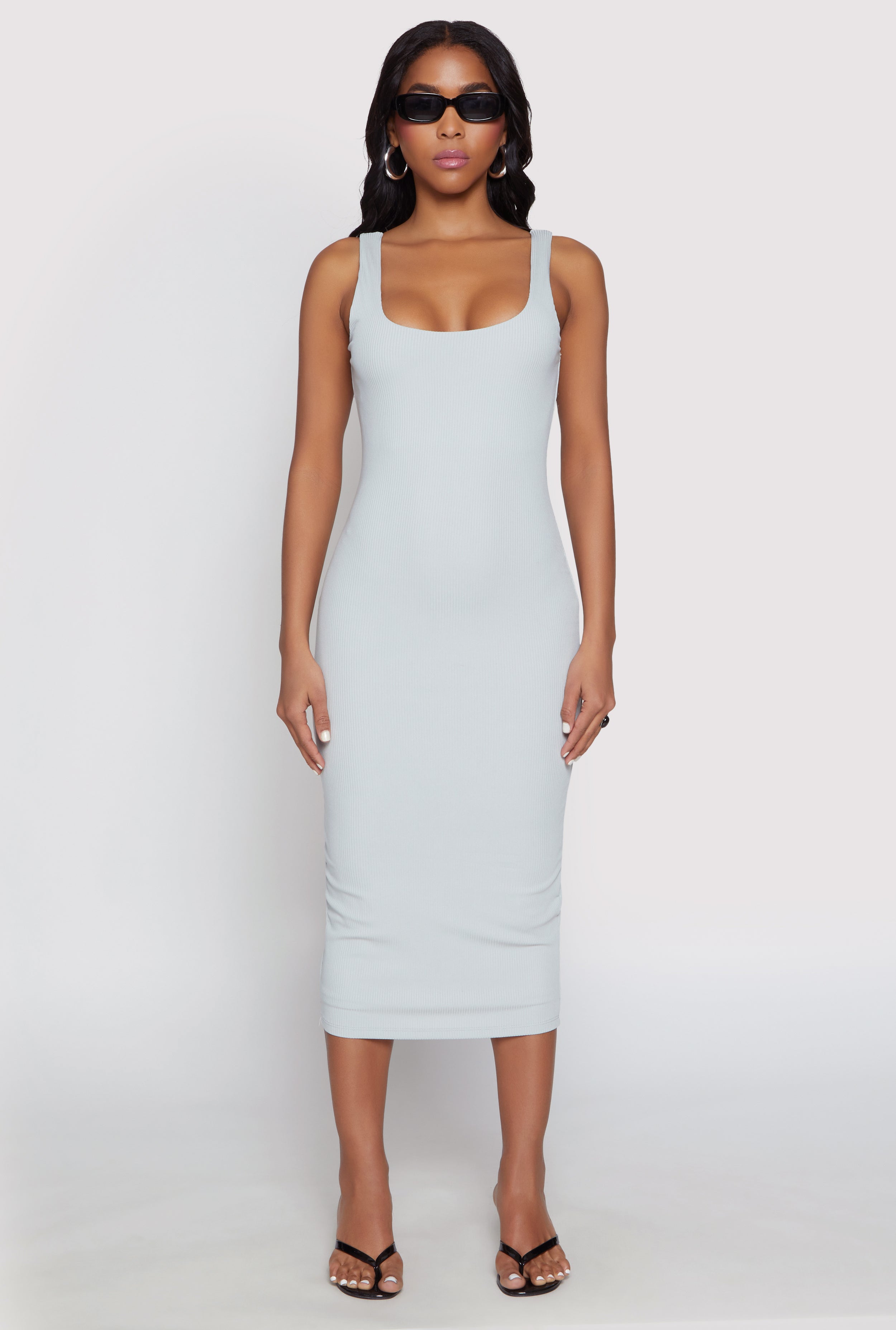 Ribbed Knit Scoop Neck Midi Dress