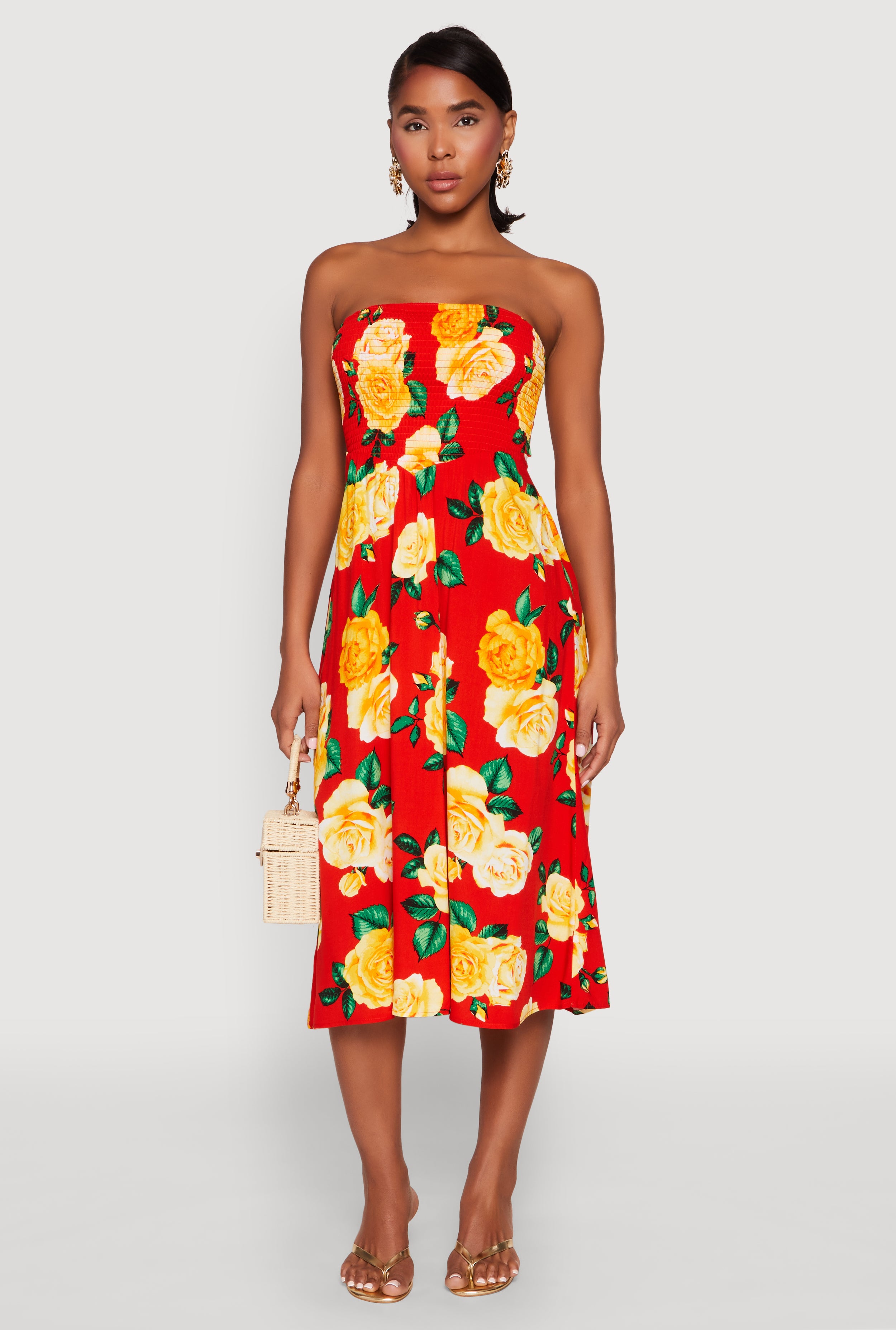 Almost Famous Floral Print Smocked Midi Dress