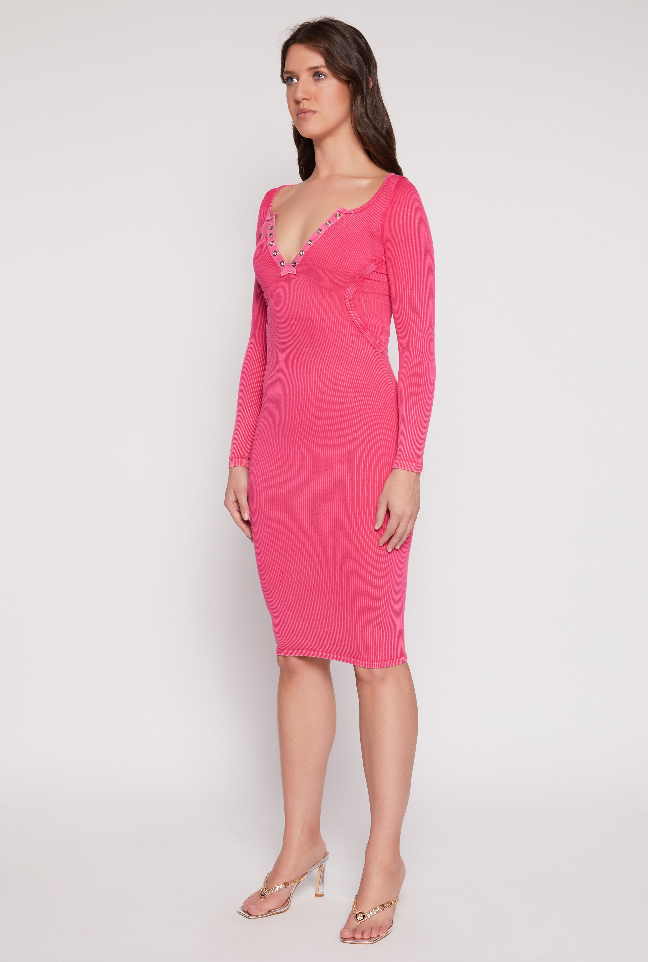 Ribbed Knit Side Cut Out Midi Dress