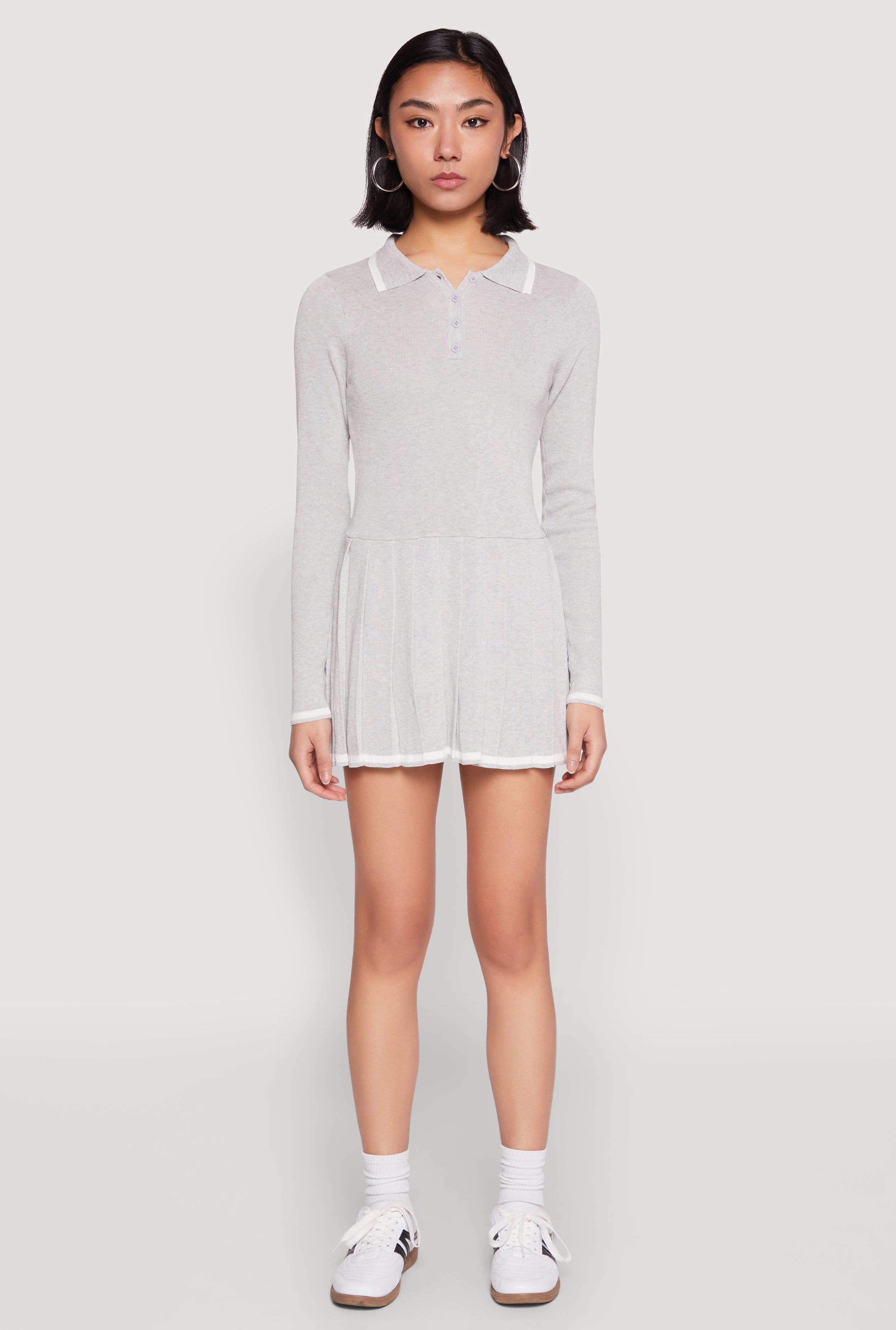 Daisy Pleated Contrast Trim Sweater Dress