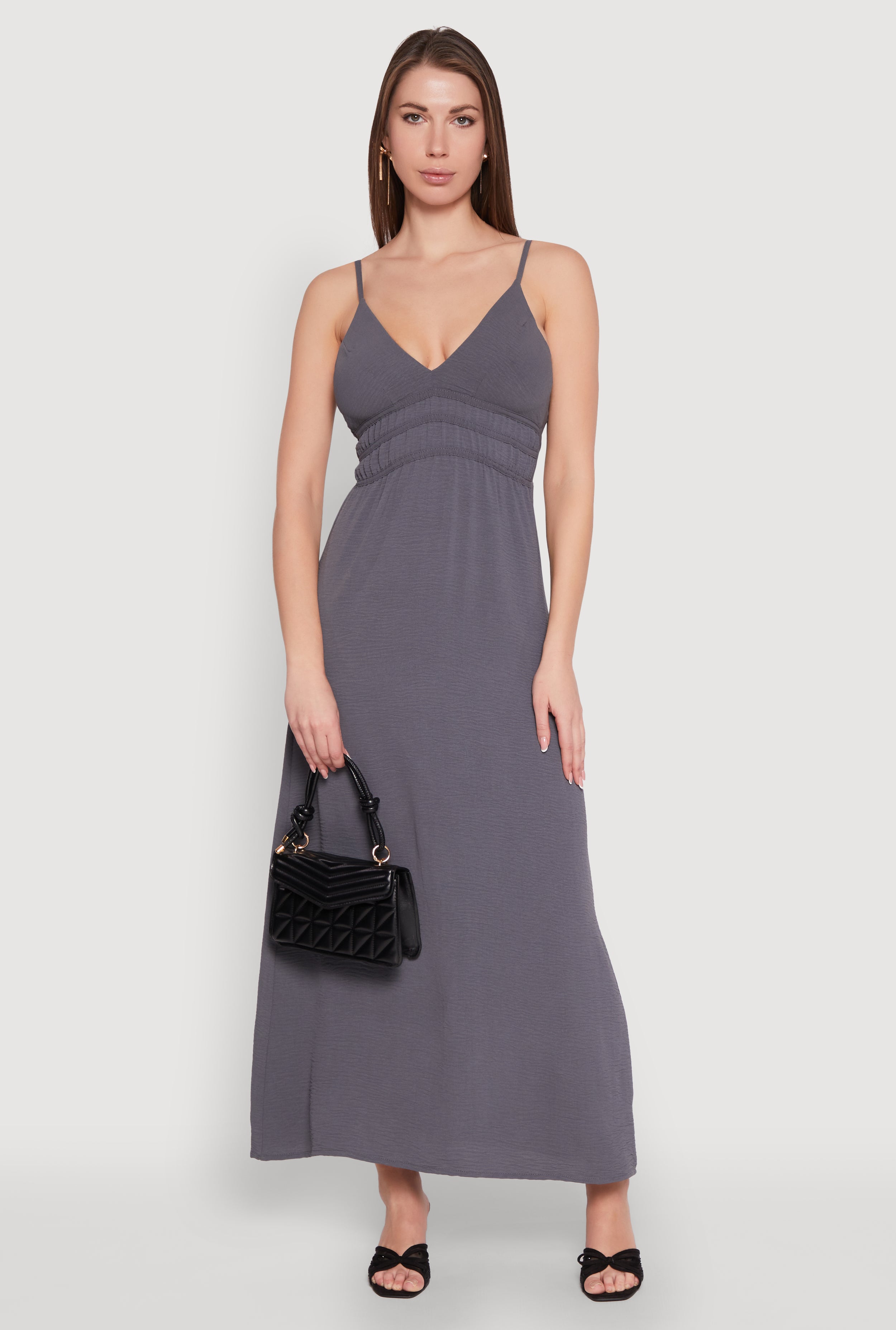 V Neck Empire Waist Maxi Dress