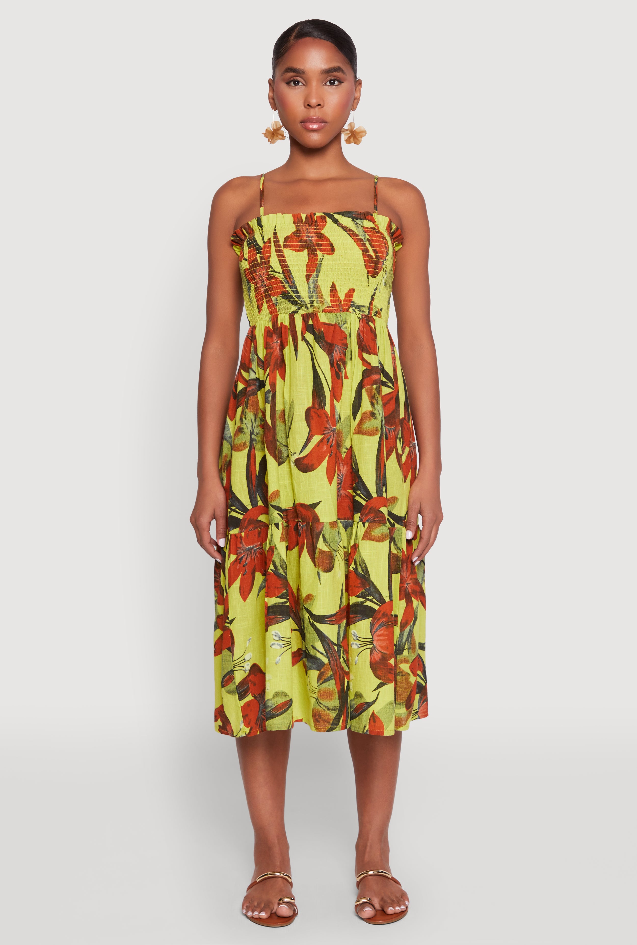 Floral Print Smocked Tiered Midi Dress