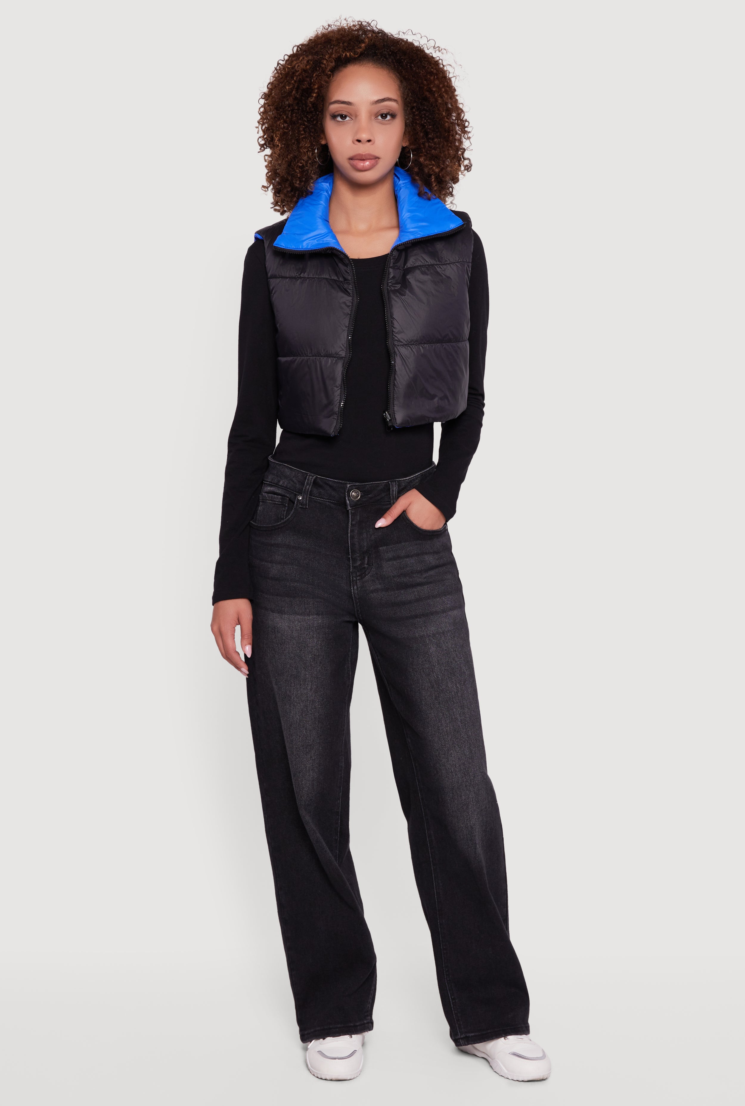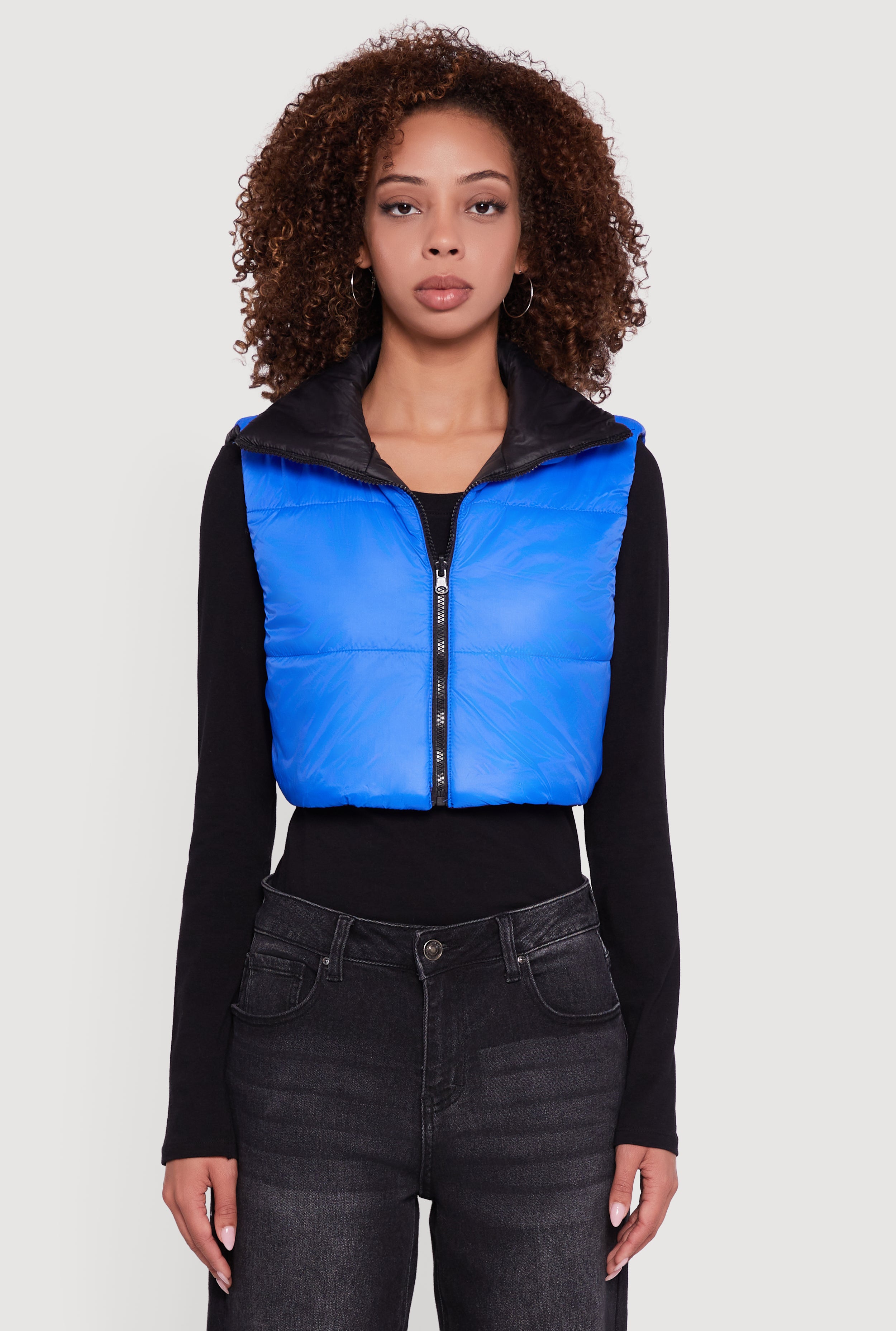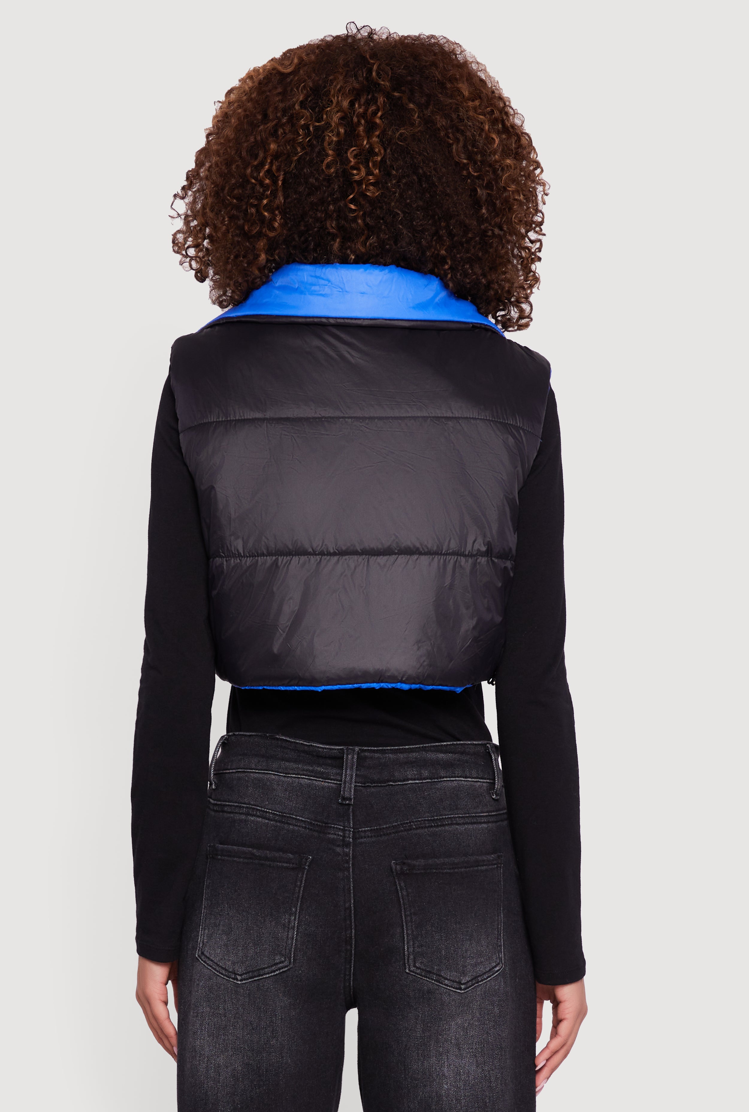 Stay cozy and cool with the Color Blocked Drawstring Hem Puffer Vest by Daisy. This reversible, sleeveless puffer vest is your new go-to for casual days when you want to add a pop of color and a dash of warmth without the bulk. The cropped fit and adjustable drawstring hem let you customize your look, while the sleek nylon fabric keeps it lightweight and easy to layer. Whether you're running errands or meeting friends, this vest has your back—and your front—with style and comfort.