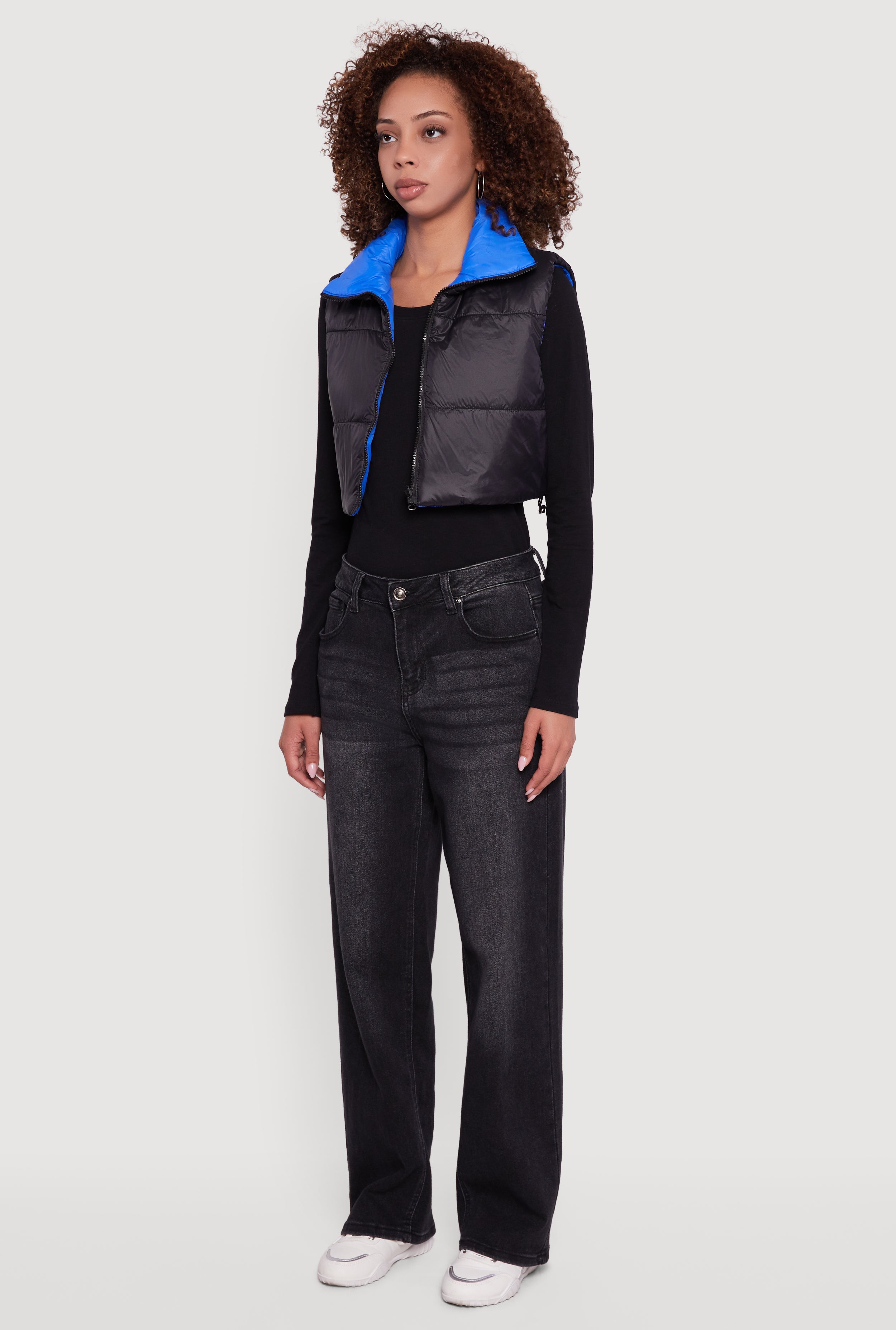 - Cropped puffer style adds trendy warmth without heaviness