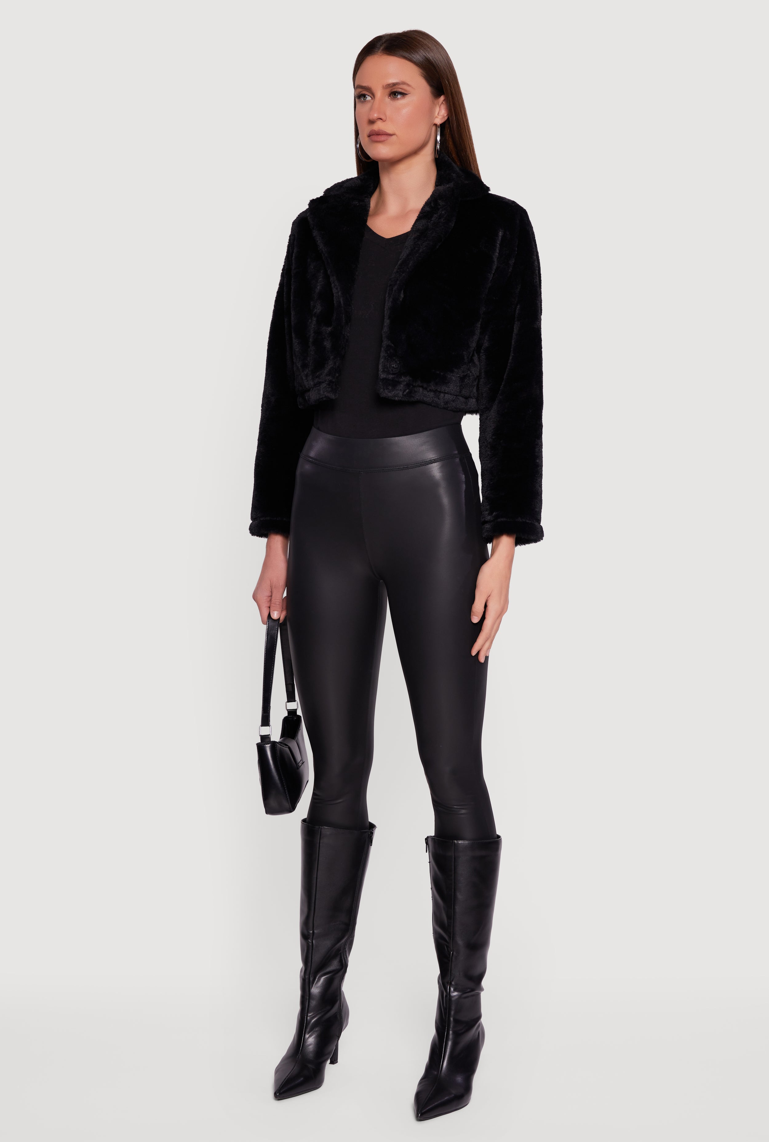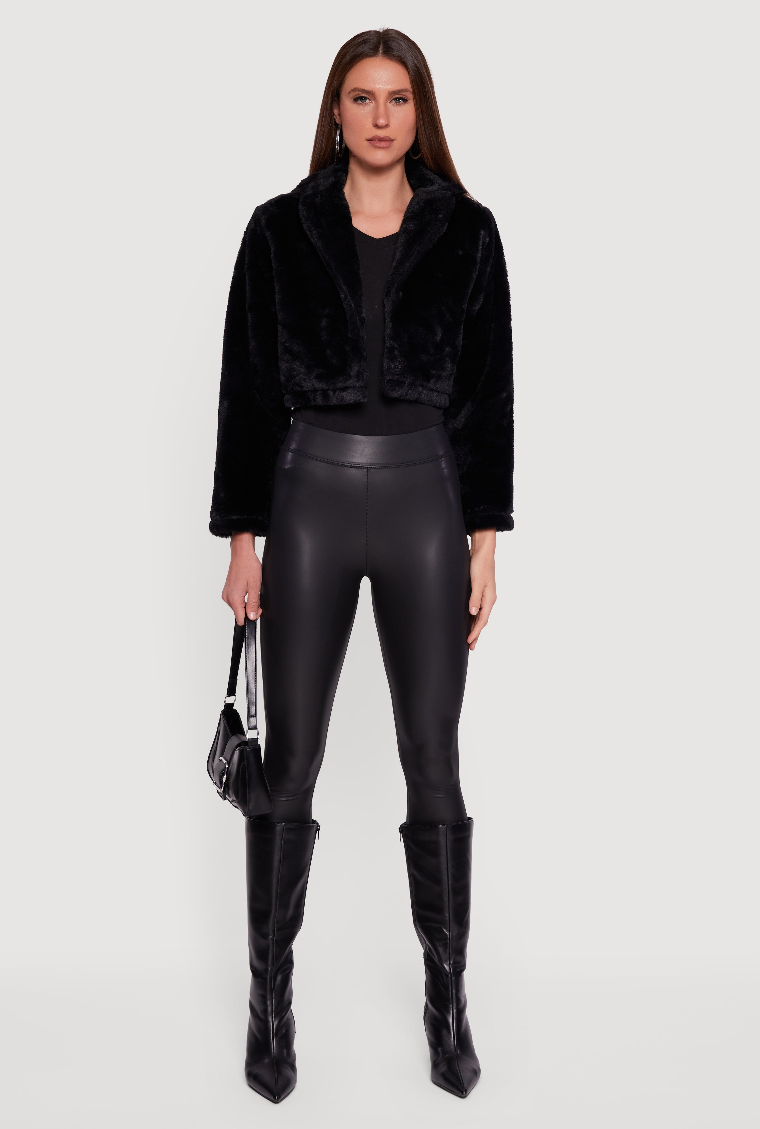 Cozy up in style with this Faux Fur Cropped One Button Jacket. Perfect for adding a touch of luxe to your everyday look, this jacket features a soft faux fur texture and a trendy cropped fit that pairs effortlessly with high-waisted jeans or skirts. The collared neckline and one snap button closure keep it simple yet chic, making it a must-have outerwear piece for your wardrobe. Stay warm, look cool, and turn heads wherever you go.