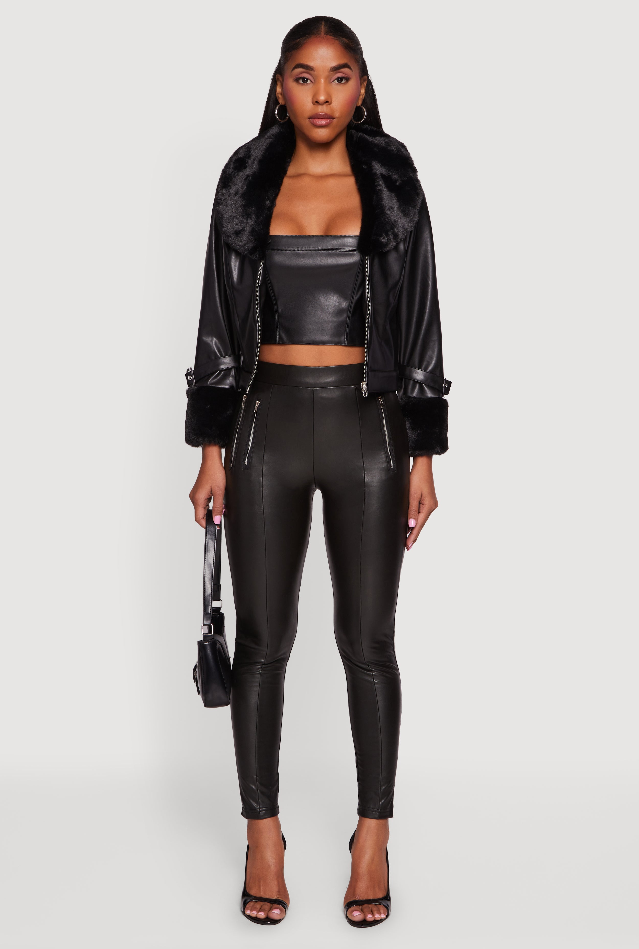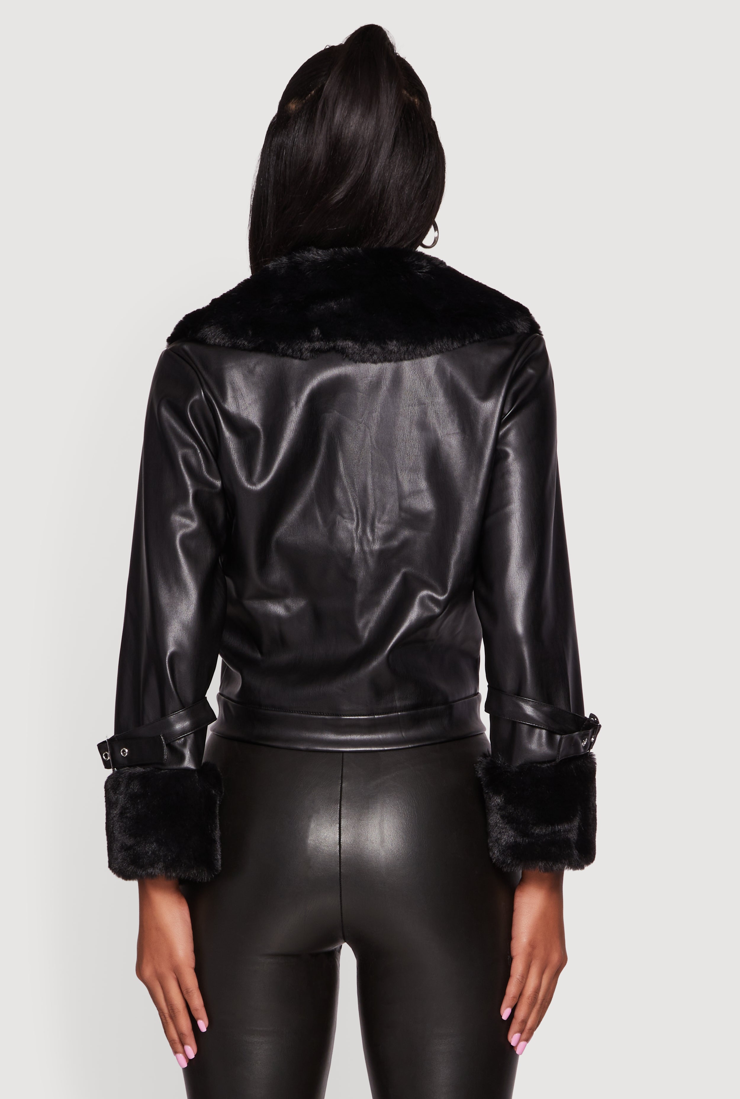 Step up your style game with this Faux Fur Trim Faux Leather Jacket that blends edgy motorcycle vibes with cozy comfort. Featuring a sleek zip front and a chic shawl collar, it’s perfect for casual hangouts, office days, or night outs when you want to make a statement without trying too hard. The soft faux fur trim adds a touch of luxe while the fleece lining keeps you warm and comfy. Ready to turn heads and keep you feeling fabulous all day and night.