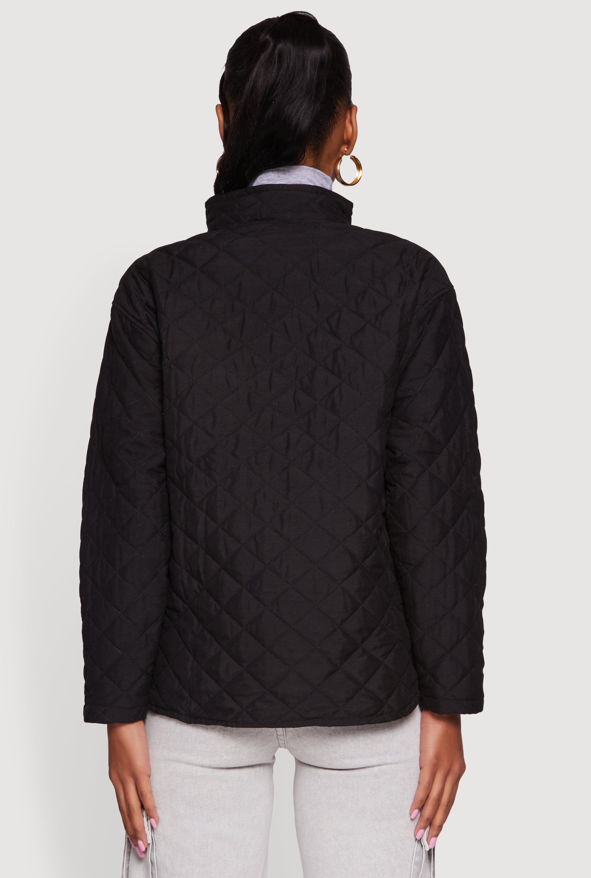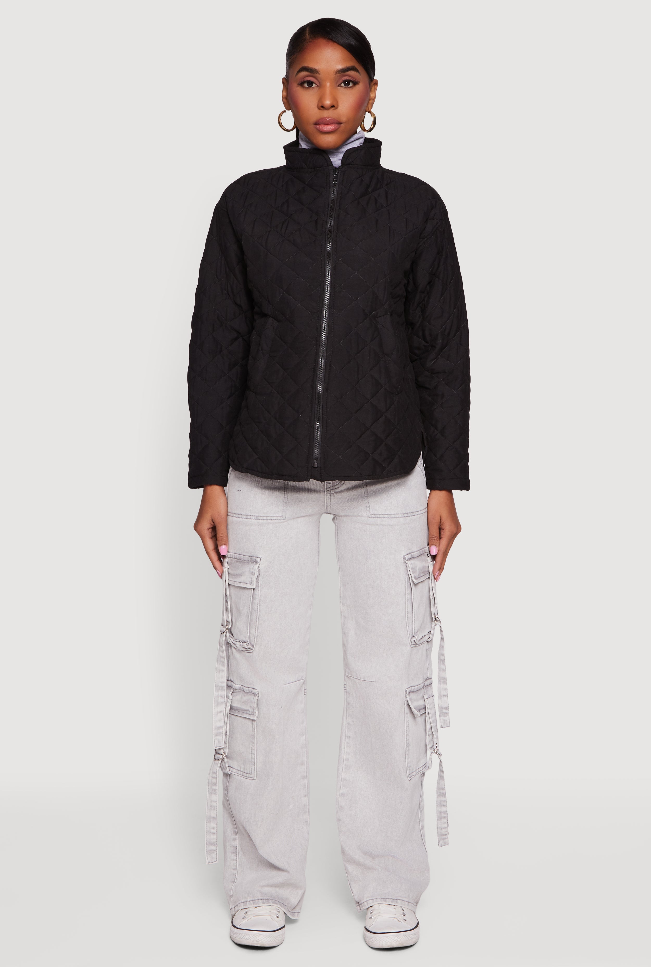 Stay cozy and stylish with this Long Sleeve Zip Front Quilted Jacket. Featuring a sleek mock neck and a trendy quilted design, this jacket is your go-to layer for chilly days. The zip front makes it easy to throw on and go, while the solid color keeps it versatile for any outfit. Perfect for adding a touch of sporty edge to your everyday look without breaking the bank.