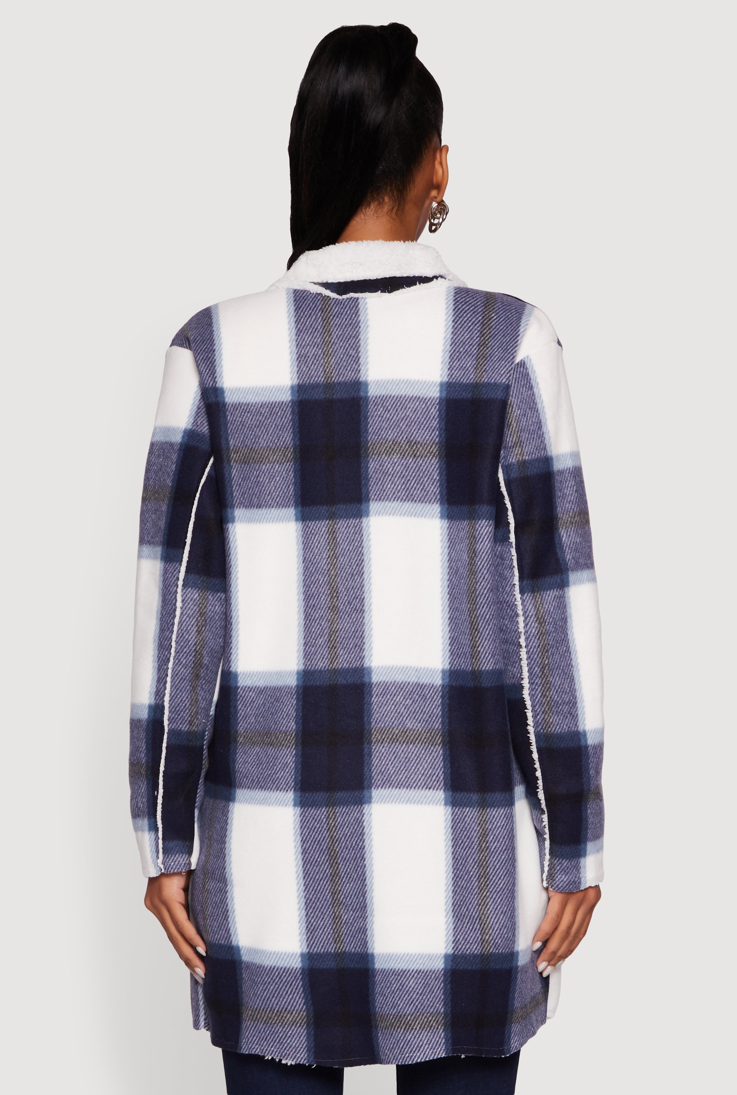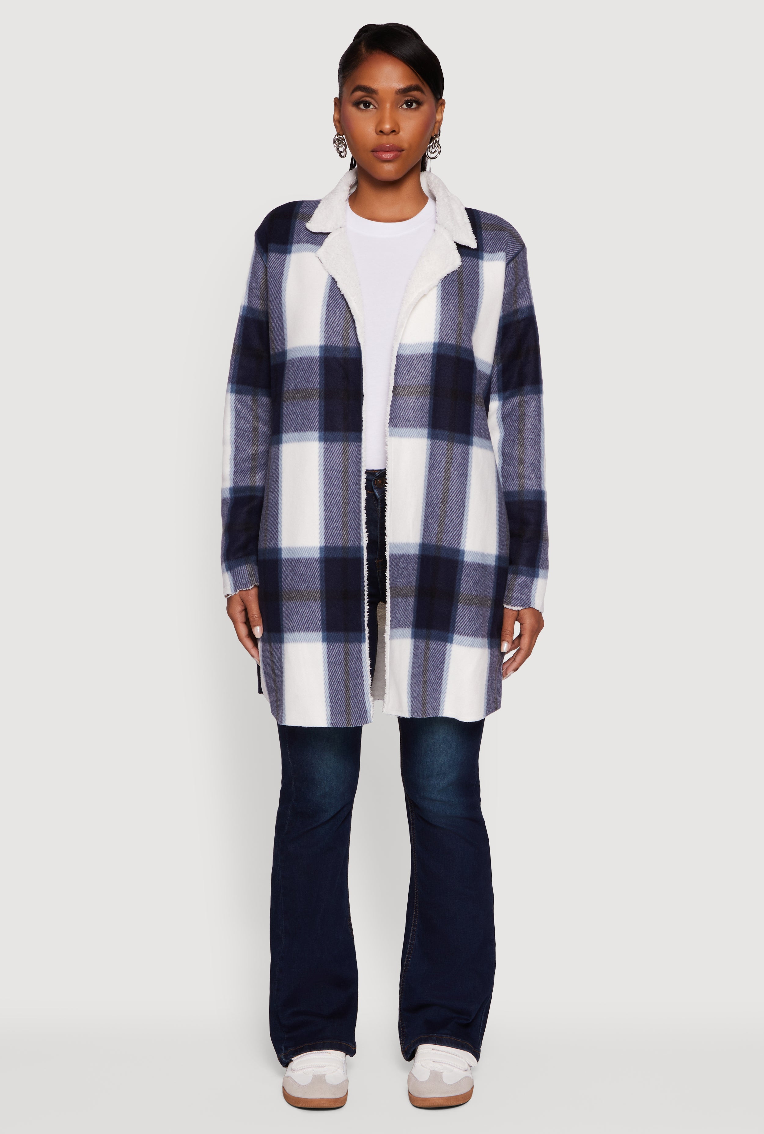 Step up your cozy game with this Plaid Sherpa Lined Fleece Collared Open Front Long Jacket. Perfect for those chill days when you want to stay warm without sacrificing style. The soft sherpa lining feels like a hug, while the classic plaid pattern adds a touch of timeless cool. Whether you're running errands or meeting friends for coffee, this jacket is your new go-to for casual comfort and effortless vibes.