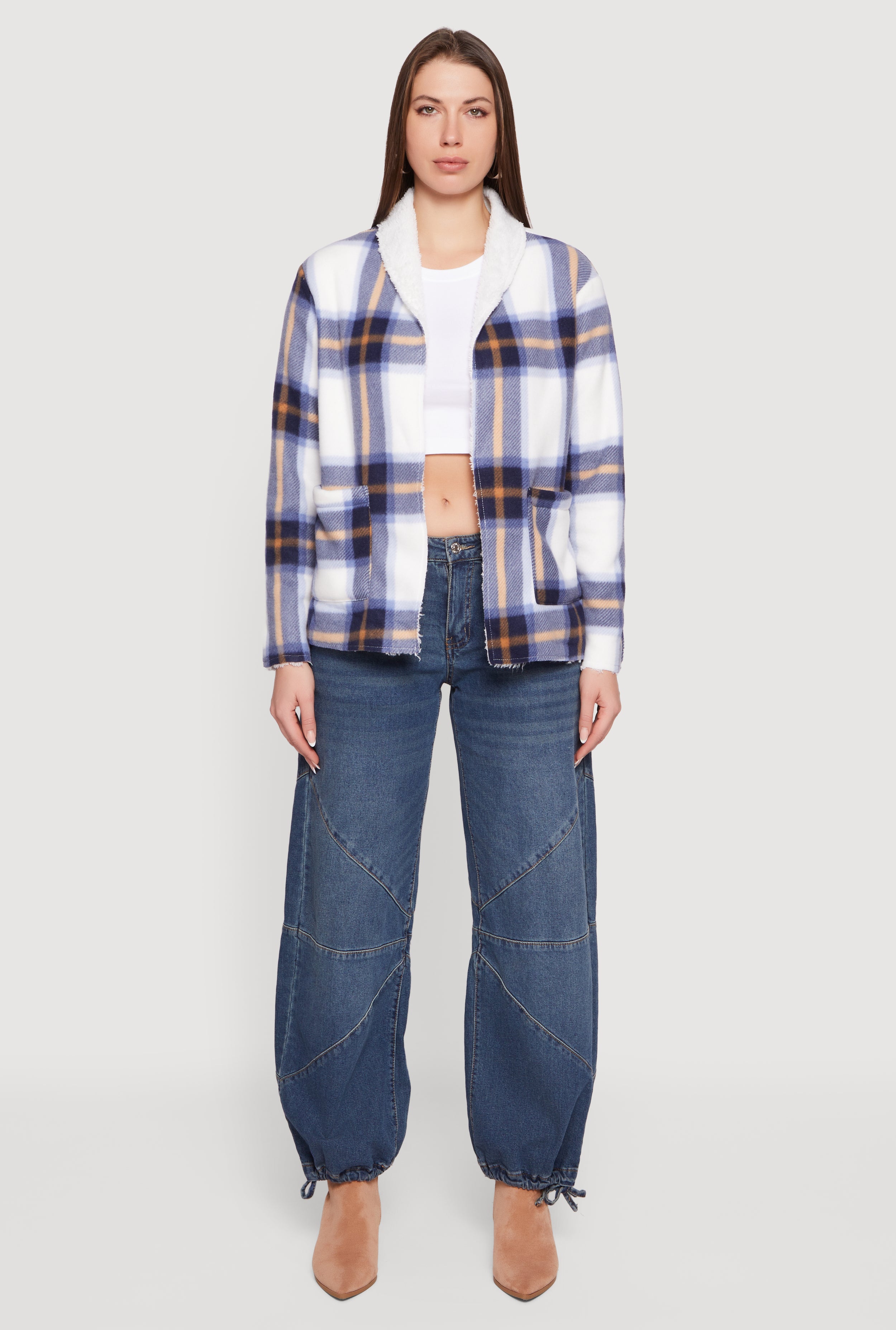 Stay cozy and stylish with this Plaid Sherpa Lined Open Front Shacket. Perfect for layering on chilly days, it features a classic plaid pattern and a soft sherpa lining that keeps you warm without sacrificing comfort. The open front design makes it easy to throw on over any outfit, while the collared neckline adds a touch of laid-back cool. Whether you're heading out for a casual day or lounging at home, this fleece-lined shacket is your go-to for effortless style and warmth.