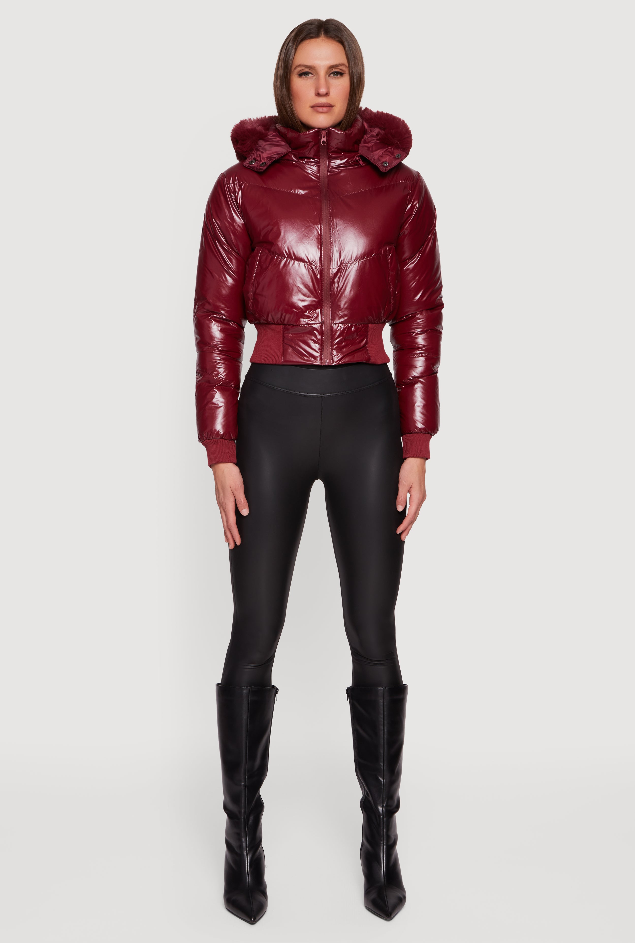 Stay cozy and stylish with this Puffer Jacket featuring a removable faux fur hood that adds a touch of luxe to your winter look. Crafted from durable nylon with a sleek leather look finish, this jacket is designed to keep you warm without sacrificing style. The zip front closure and mock neck provide extra protection against chilly winds, while the long sleeves ensure full coverage. Perfect for layering or wearing solo, this solid-colored outerwear piece is a versatile must-have for your cold-weather wardrobe.