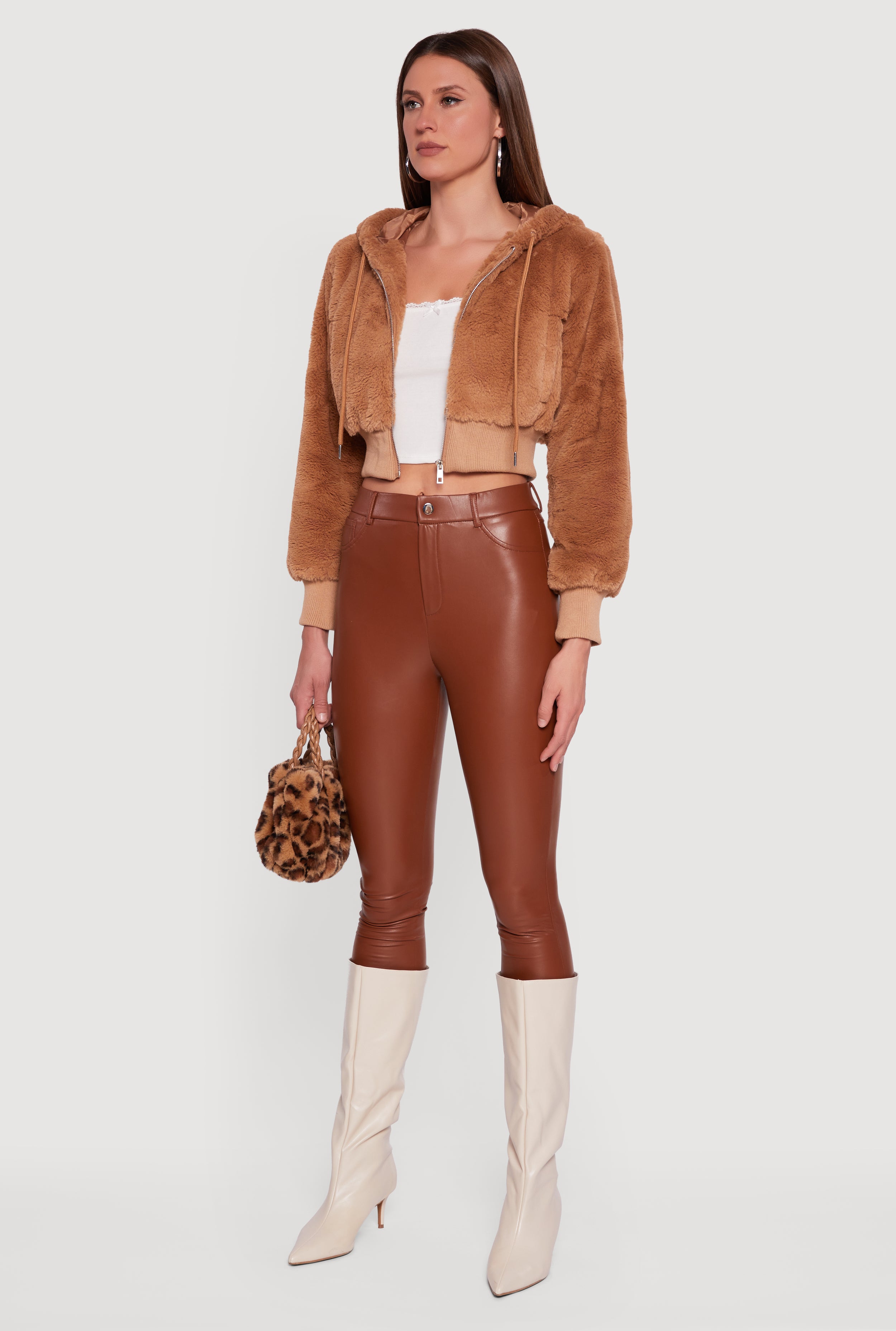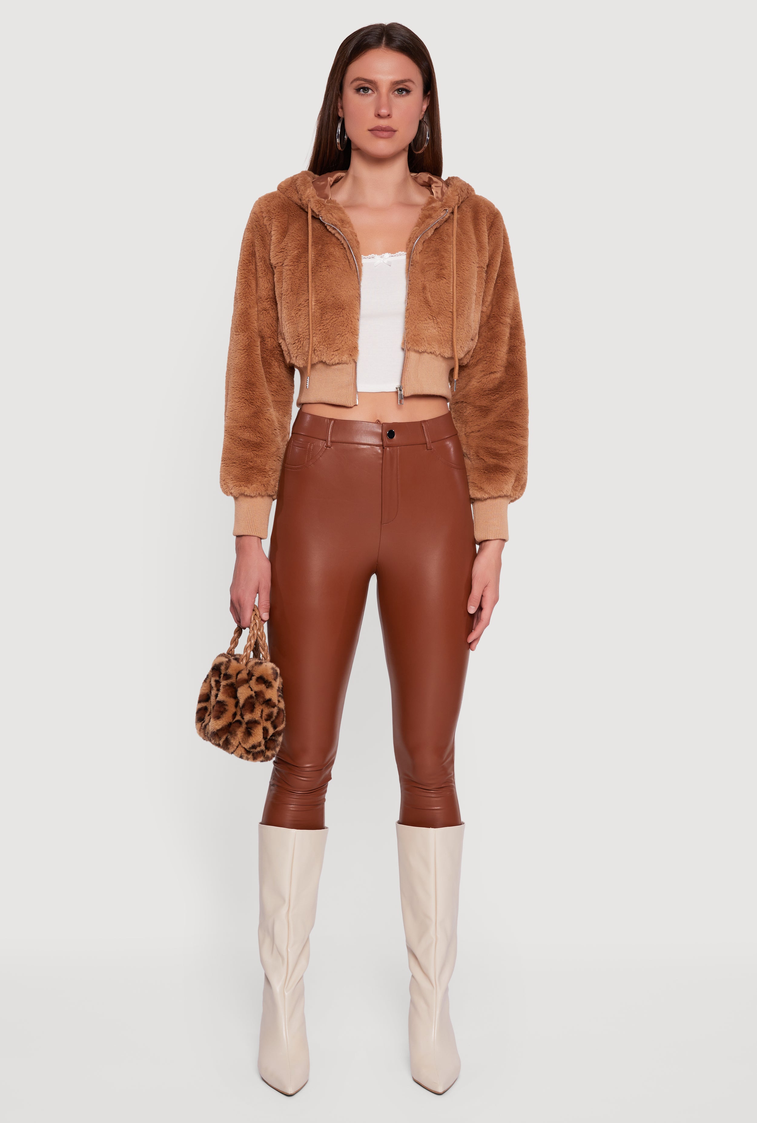 Stay cozy and stylish with this Faux Fur Zip Front Hooded Cropped Jacket. Perfect for casual days when you want to add a touch of luxe without breaking the bank, this jacket features a soft faux fur texture that feels as good as it looks. The cropped fit pairs effortlessly with high-waisted jeans or skirts, while the hood and drawstring add a trendy, laid-back vibe. Zip it up for instant warmth and cool factor wherever you go.