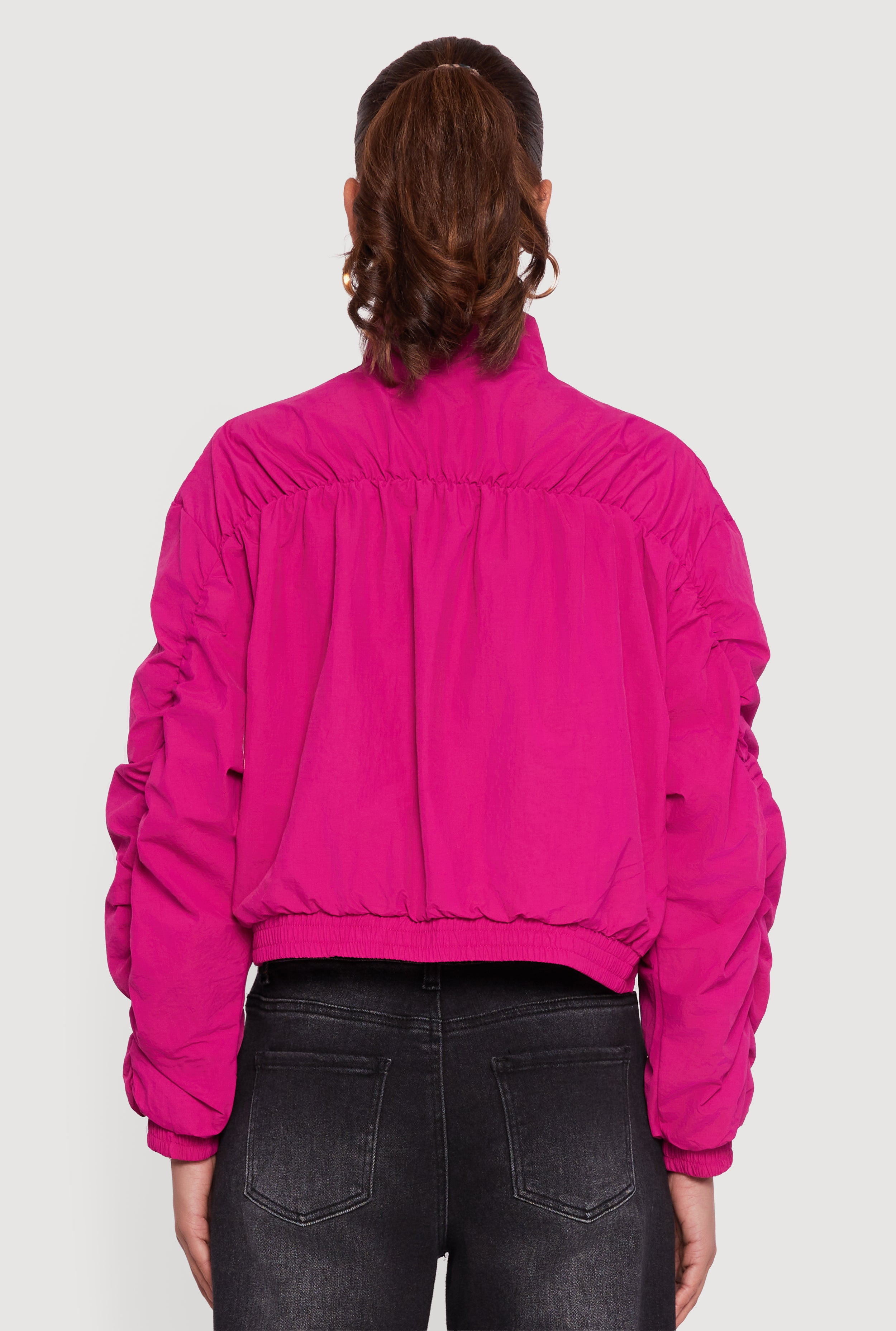 Ruched Long Sleeve Zip Front Windbreaker Jacket