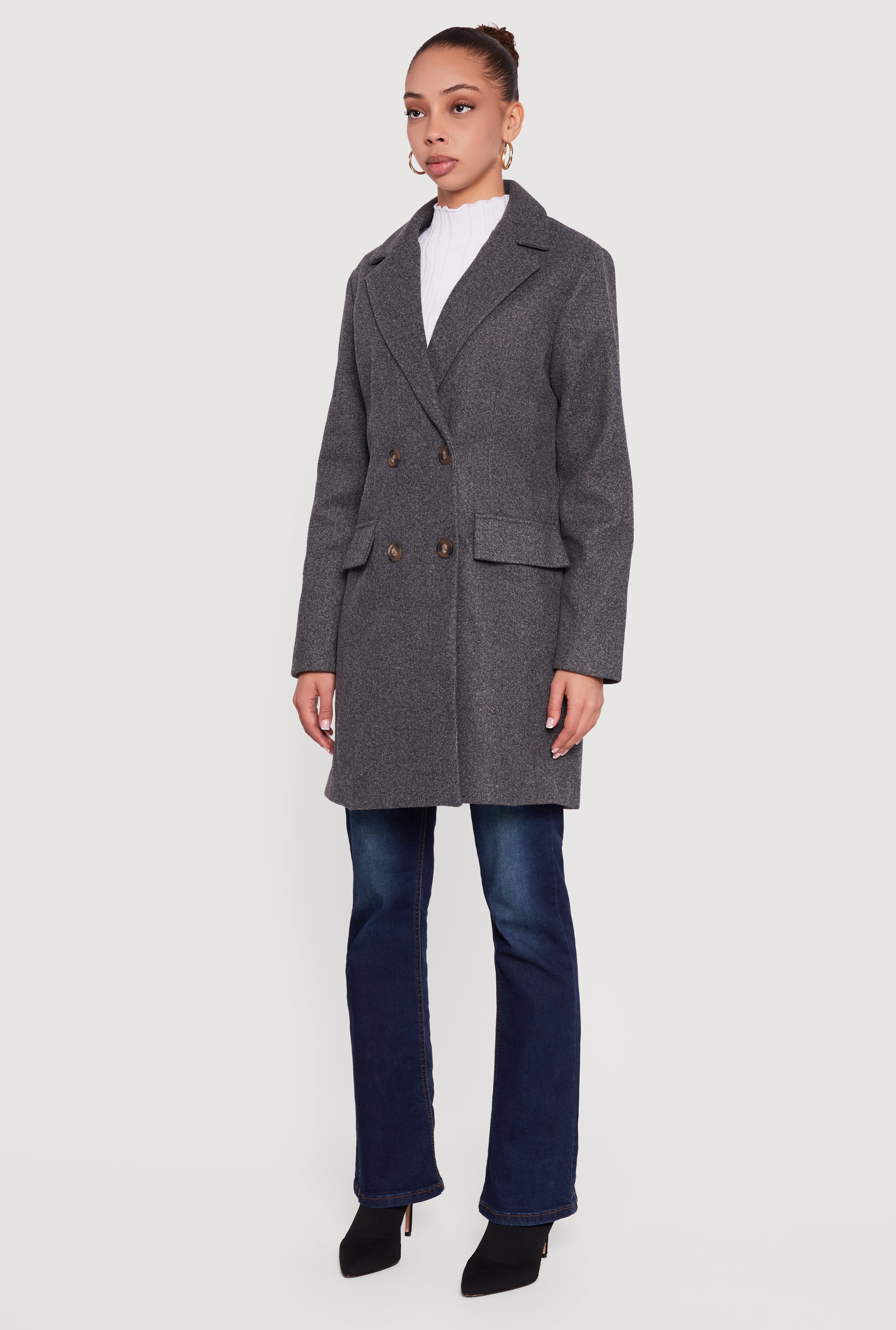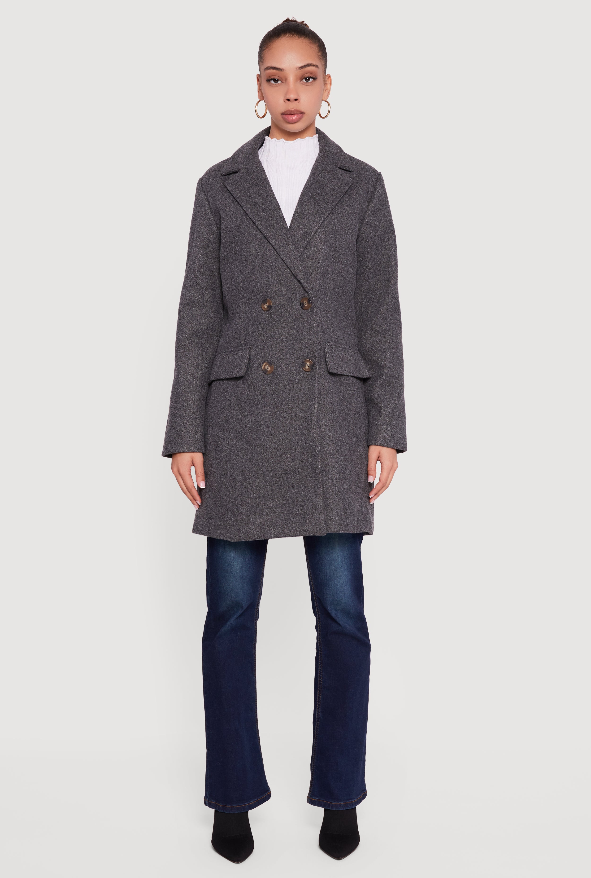 - Double breasted design for a flattering silhouette