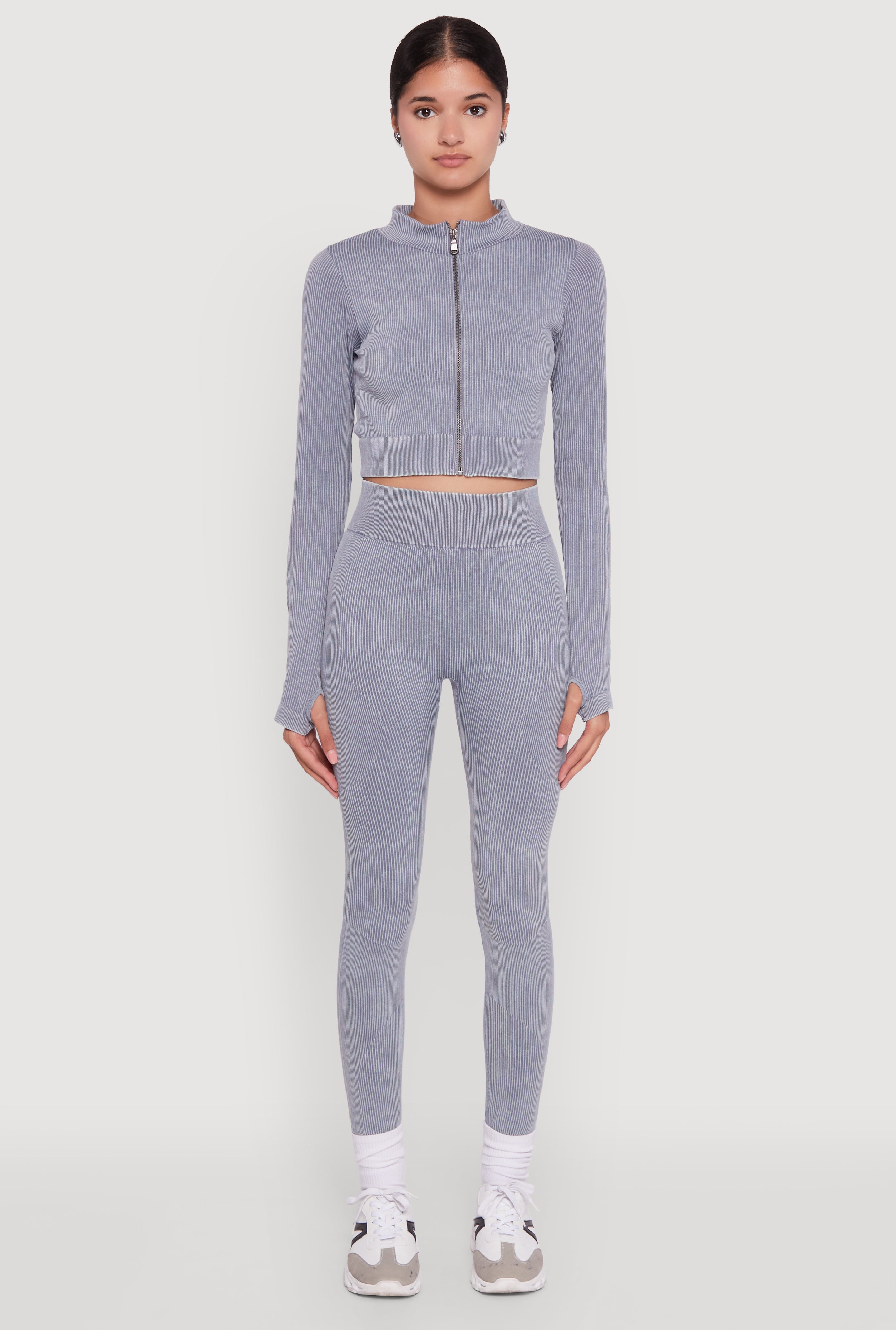 Seamless Ribbed Zip Front Cropped Track Jacket