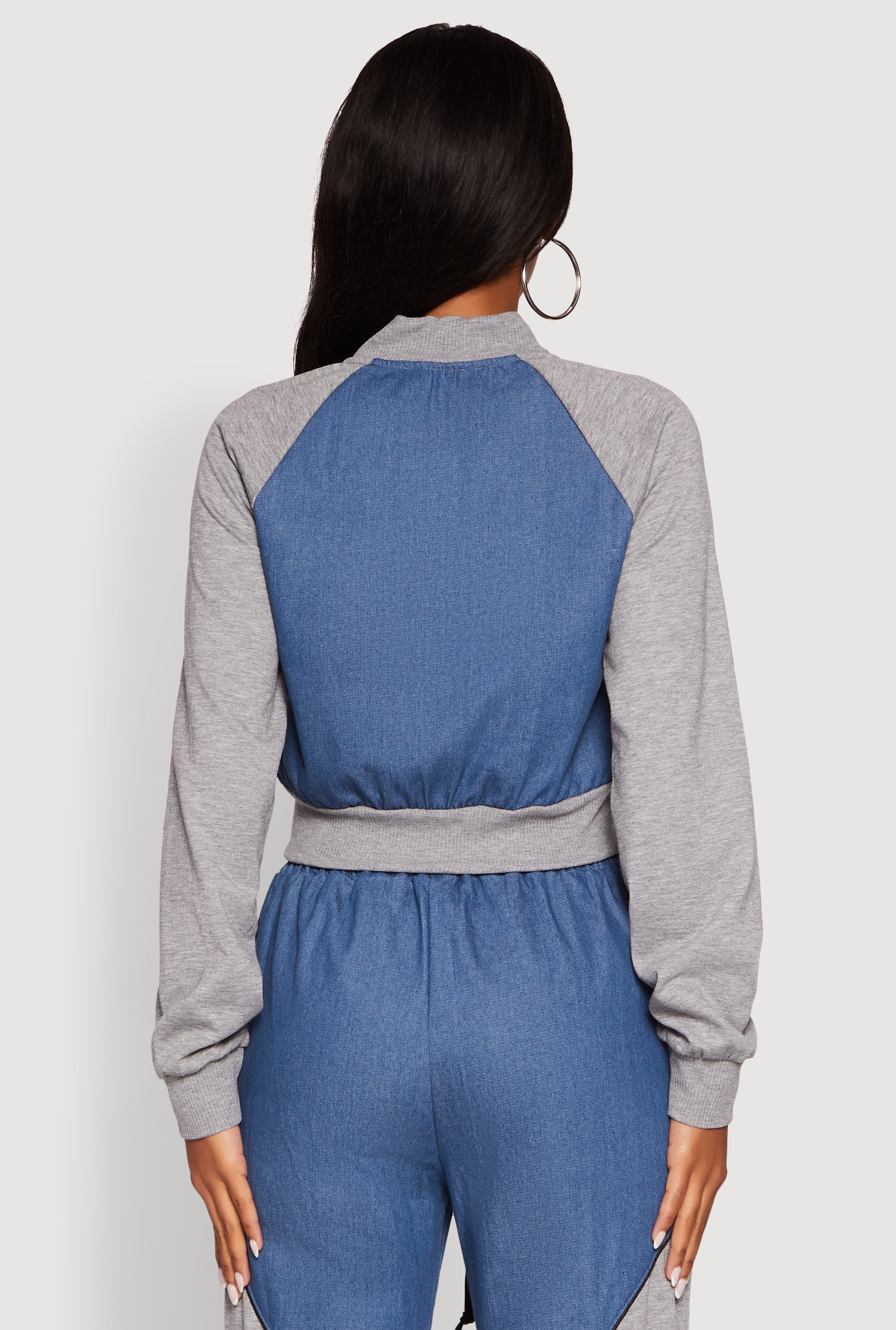 Step up your style game with this Color Block Sheer Insert Bustier Detail Bomber Jacket. Perfect for those who love mixing edgy and casual vibes, this jacket features a sleek O-ring zip front and playful sheer trim details that add just the right amount of flair. Made from comfy denim and fleece, it’s your new go-to for athleisure looks that turn heads without trying too hard. Whether you’re hitting the streets or chilling with friends, this cropped bomber brings effortless cool to every outfit.