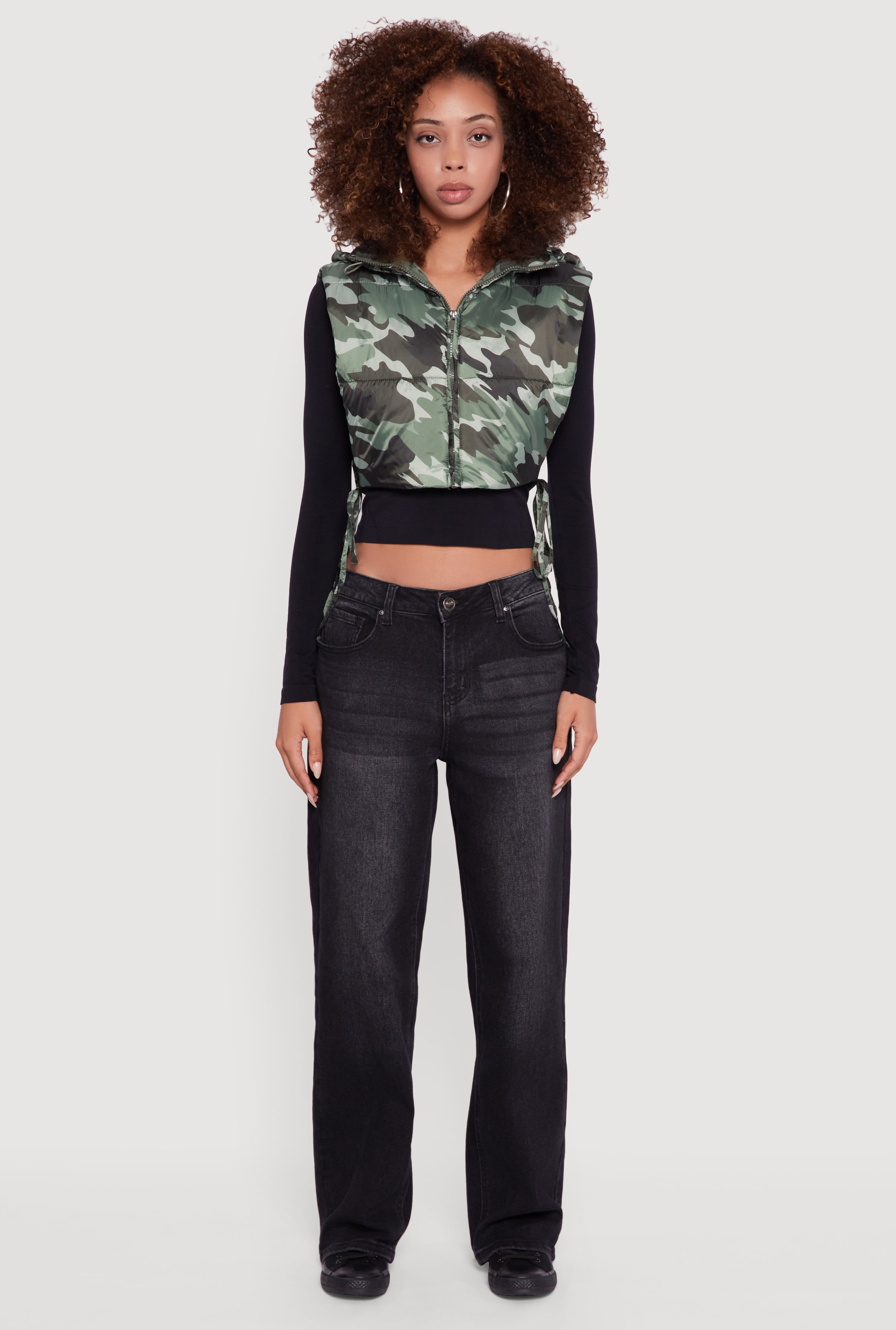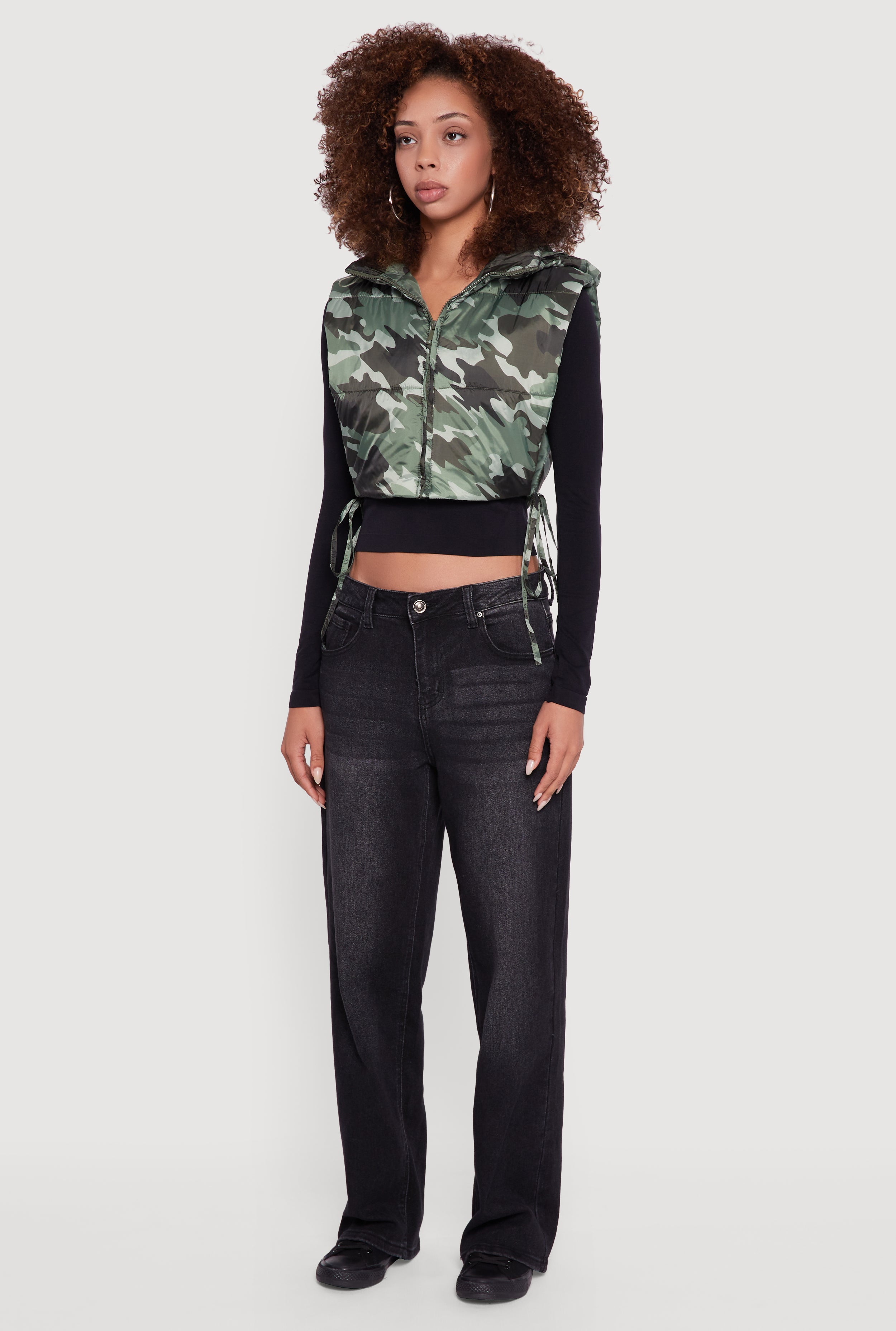 Stay cozy without sacrificing style in this Hooded Cropped Puffer Vest with Open Tie Sides. Perfect for layering over your favorite casual outfits, this sleeveless vest features a trendy cropped fit and playful open ties on the sides that add a flirty twist to your look. The hood adds an extra edge while keeping you warm during those chillier days. Zip it up for a sleek silhouette or leave it open to show off your layers underneath. This vest is your new go-to for effortless cool vibes and easy comfort.