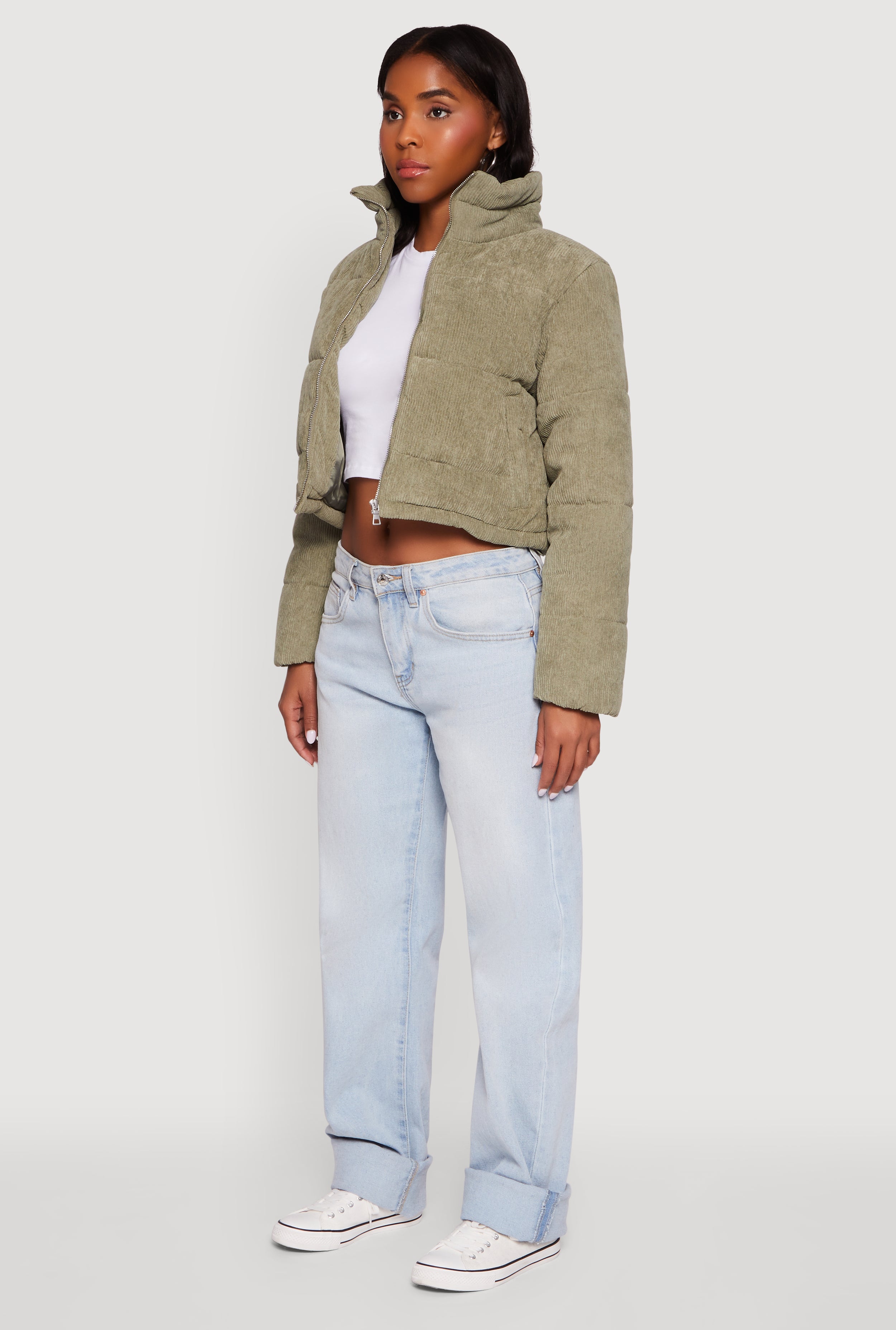 Stay cozy and cool with the Mock Neck Zip Front Corduroy Puffer Jacket from Ambiance. This cropped puffer blends vintage corduroy texture with modern warmth, making it your go-to for casual days when you want to look effortlessly stylish. The mock neck adds a sleek touch while the drawstring hem lets you customize your fit for ultimate comfort. Zip it up and step out with confidence, knowing you nailed the perfect balance of cozy and trendy.