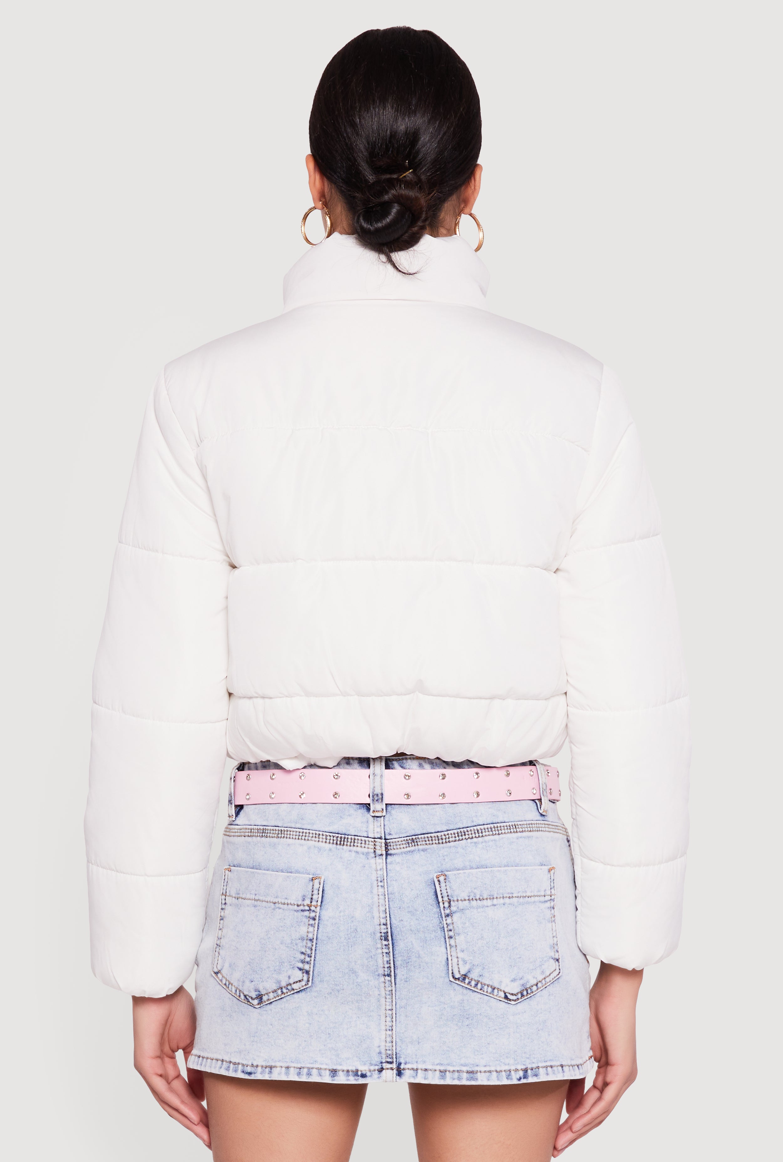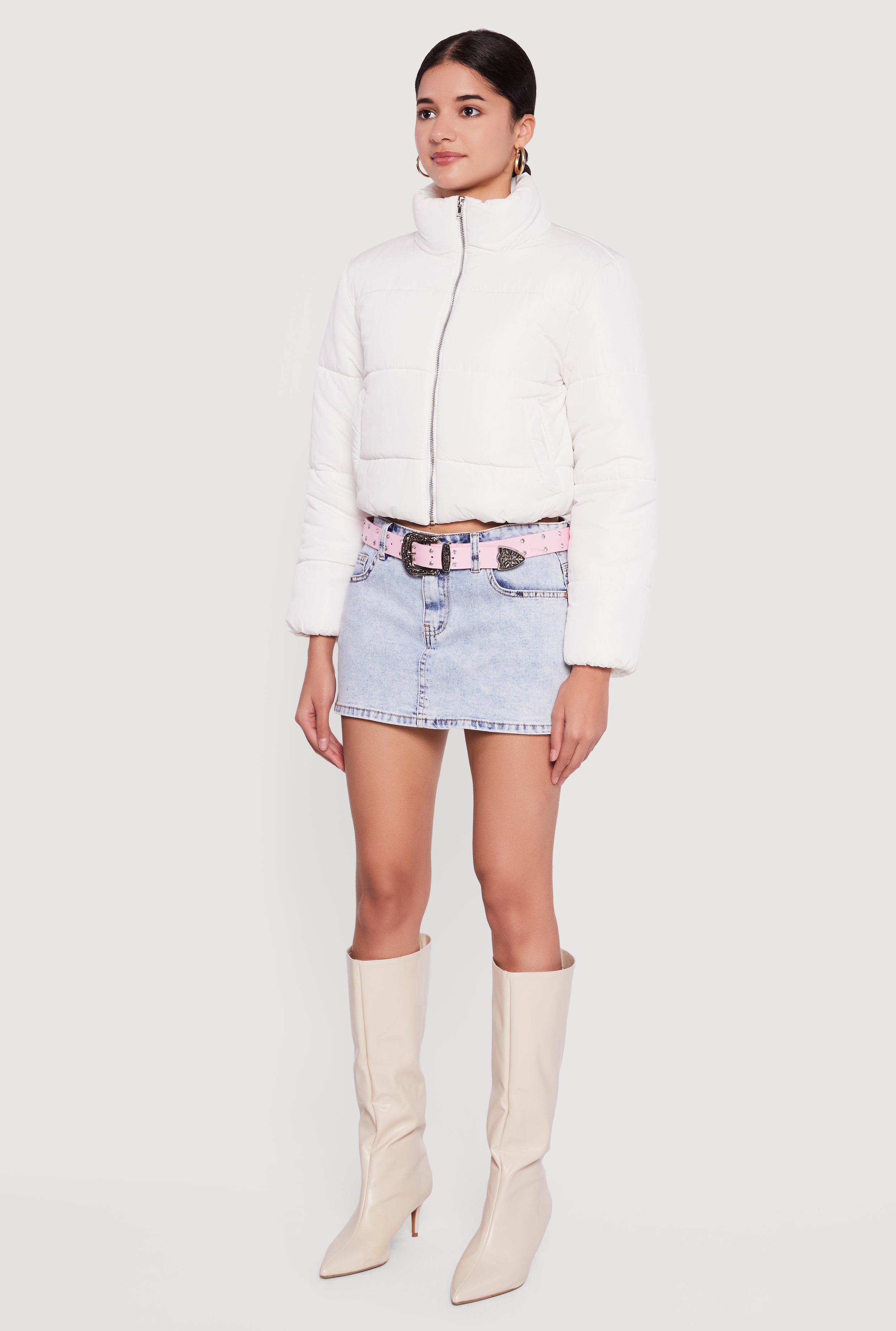 Stay effortlessly cool and cozy with this Solid Cropped Zip Front Puffer Jacket. Designed for those who love a sleek, modern look, its cropped fit and mock neck add a trendy edge to your outerwear game. The zip front closure makes it easy to throw on and go, while the quilted puffer style keeps you warm without the bulk. Perfect for layering or rocking solo on chill days, this jacket blends style and function in one must-have piece.