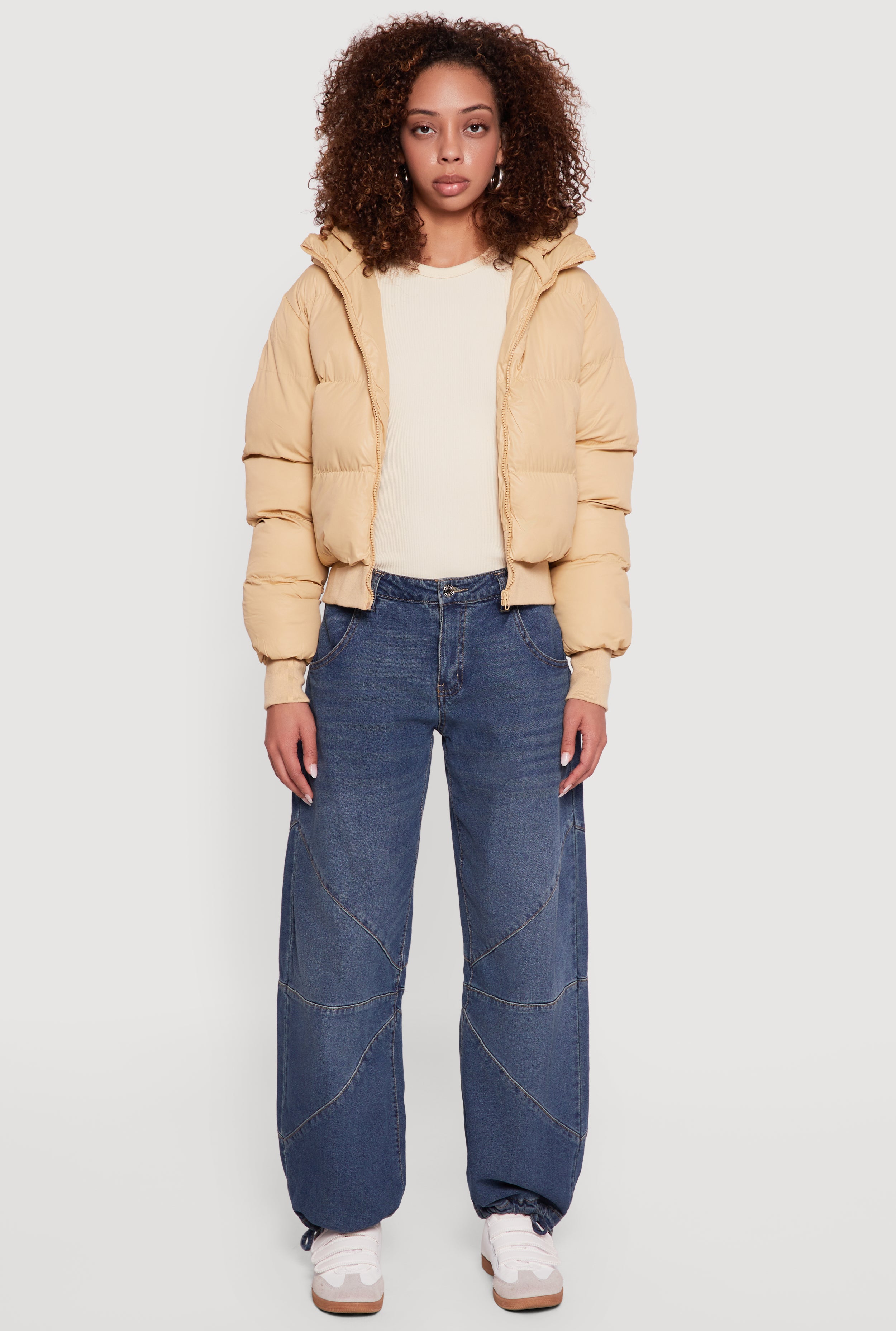 Stay cozy and stylish with this Zip Front Puffer Jacket featuring a removable hood that lets you switch up your look effortlessly. Perfect for casual days, its mock neck and long sleeves keep the chill out while the zip pockets secure your essentials. Whether you're layering up for a brisk walk or running errands, this solid-colored puffer adds a trendy edge to any outfit.
