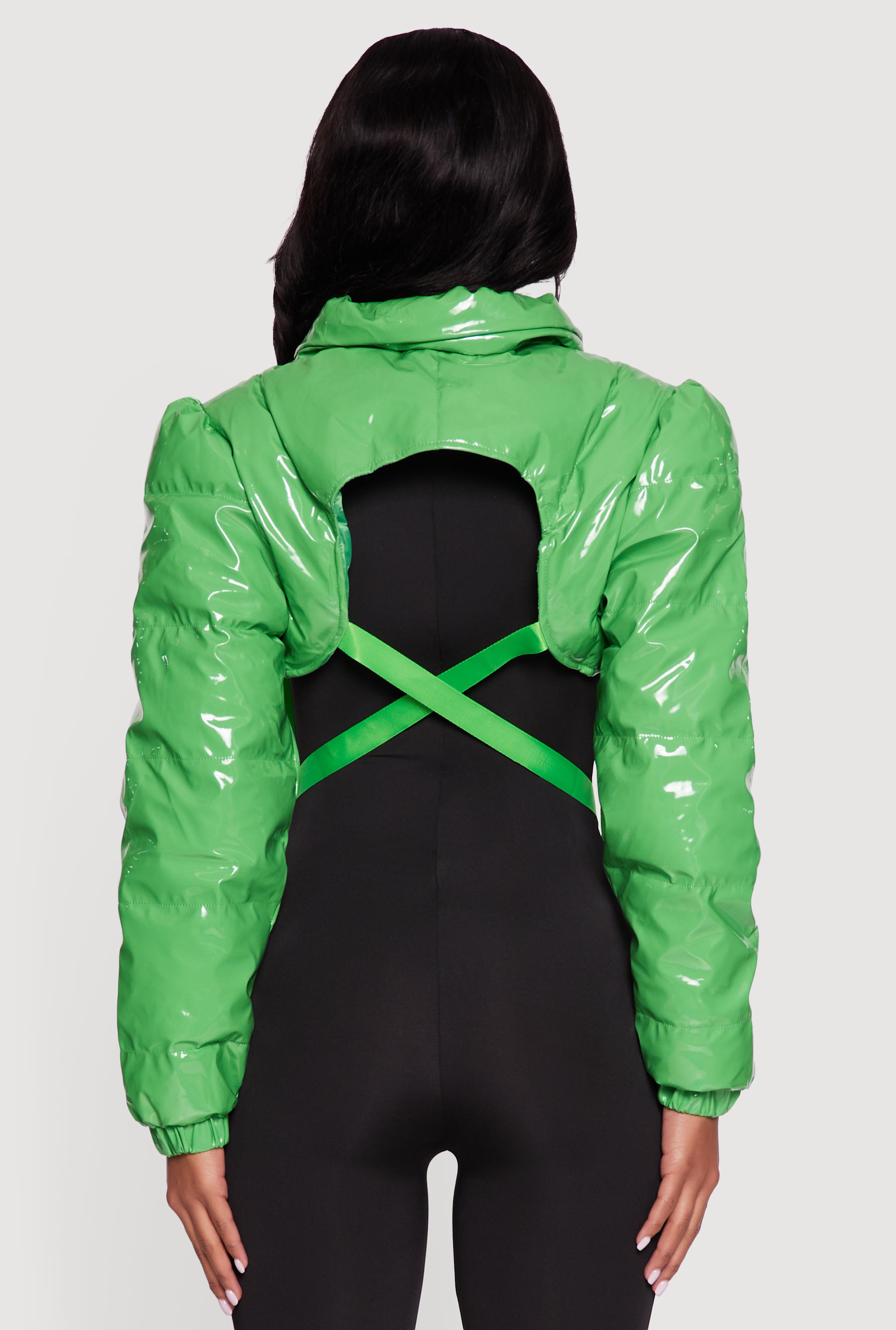 Step out in style with the Trendy Faux Leather Buckle Detail Bolero Puffer Jacket by Daisy. This cropped puffer jacket combines edgy faux leather with puff sleeves and a chic buckle detail for a bold, streetwear-inspired look. Perfect for casual days, nights out, or parties, its mock neck and zipper closure keep you cozy and confident while turning heads wherever you go.