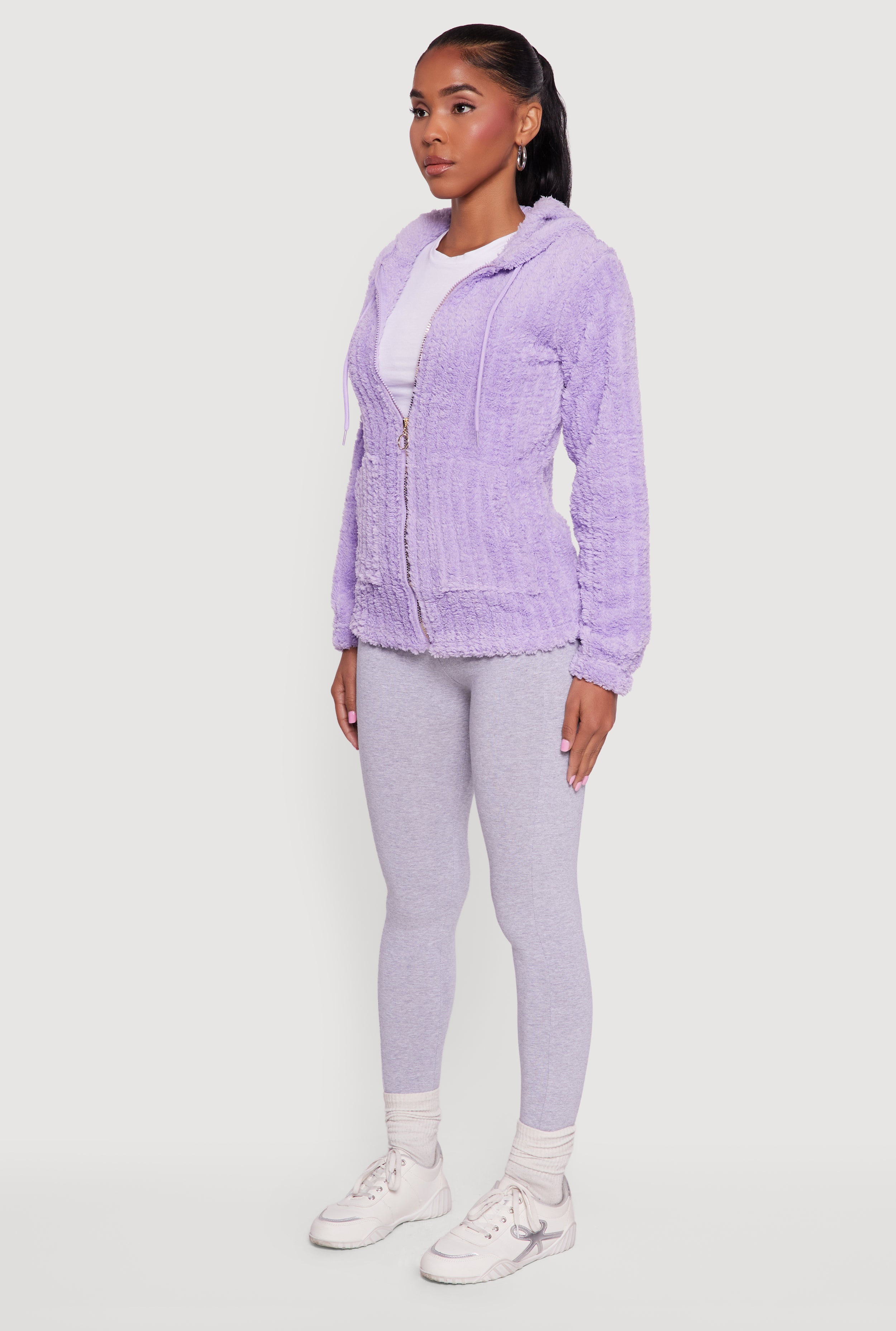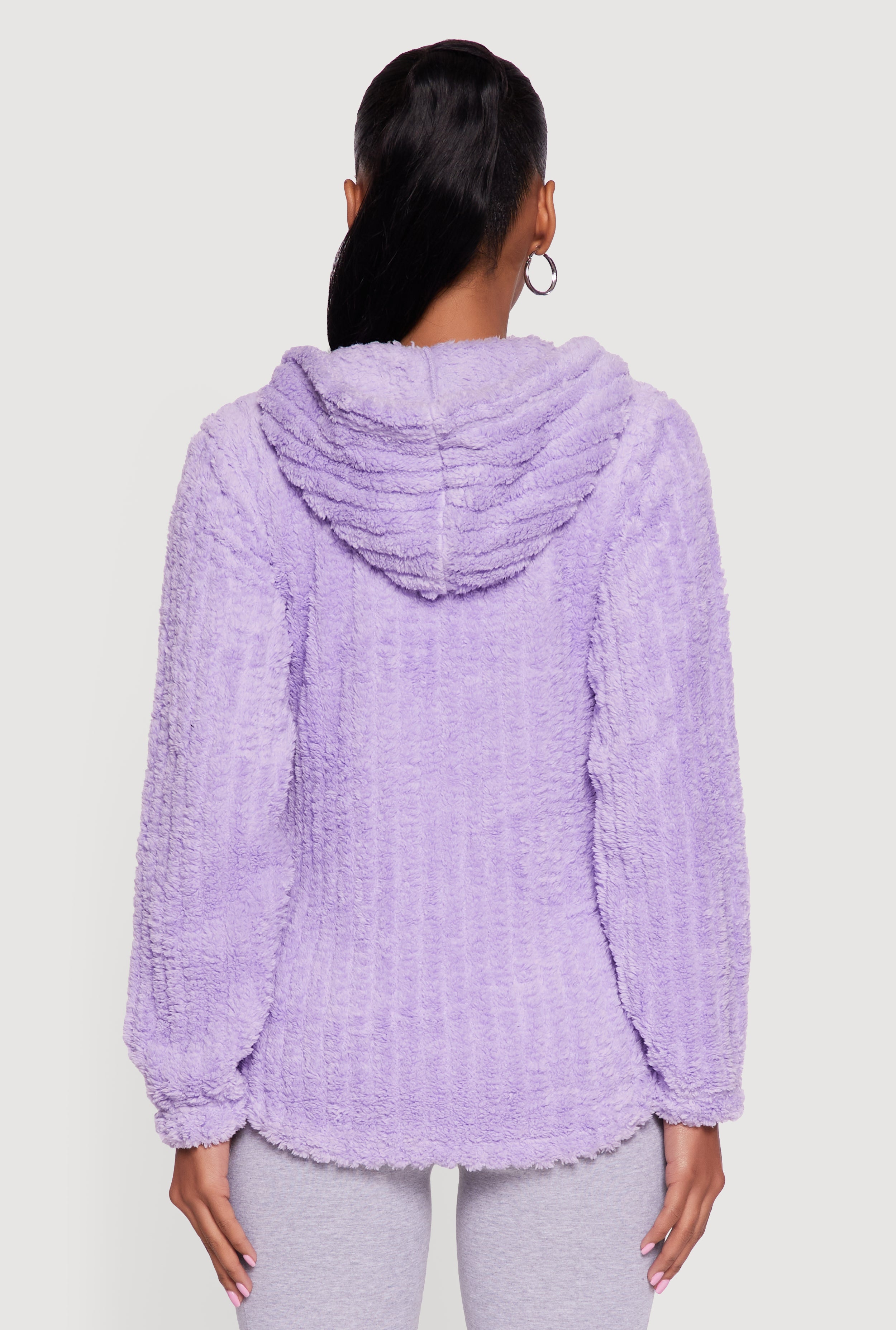 Stay cozy and effortlessly cool in this Hooded Oversized Ribbed Knit Sherpa Jacket. Perfect for casual days when you want to lounge or step out in style, this jacket combines soft sherpa lining with a trendy ribbed knit exterior. The hood and drawstring closure add extra warmth and a laid-back vibe, while the zip front makes it easy to layer over your favorite tees and leggings.