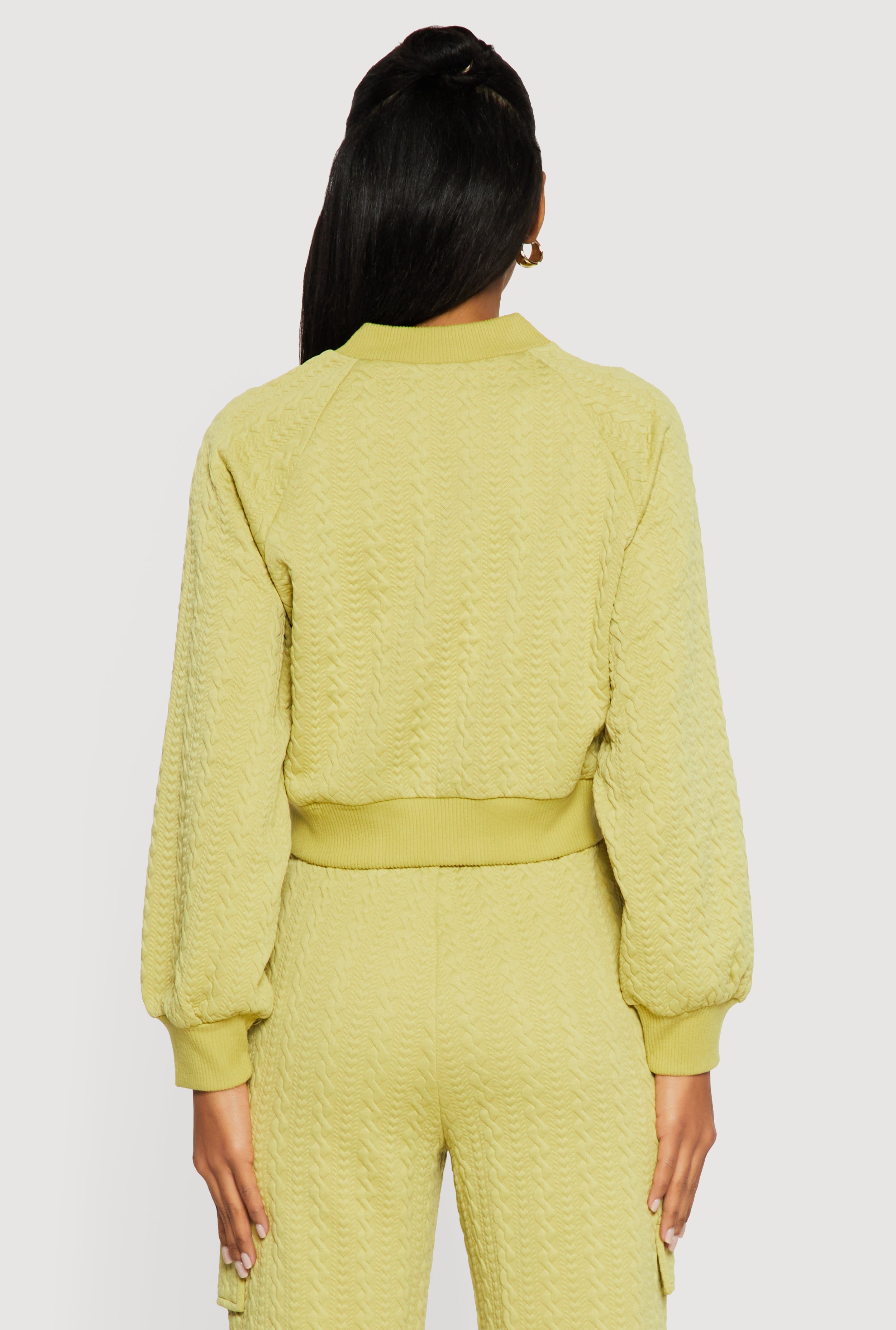 Stay effortlessly cool and cozy in this Textured Knit Zip Front Bomber Jacket, designed to elevate your casual wardrobe with a timeless silhouette. Crafted from soft textured knit fabric, this jacket features a classic fit that flatters every body type. The zip and snap front closures add a modern twist while making it easy to layer over your favorite outfits. With long blouson sleeves and a neat collar, it’s the perfect blend of comfort and style for everyday wear.