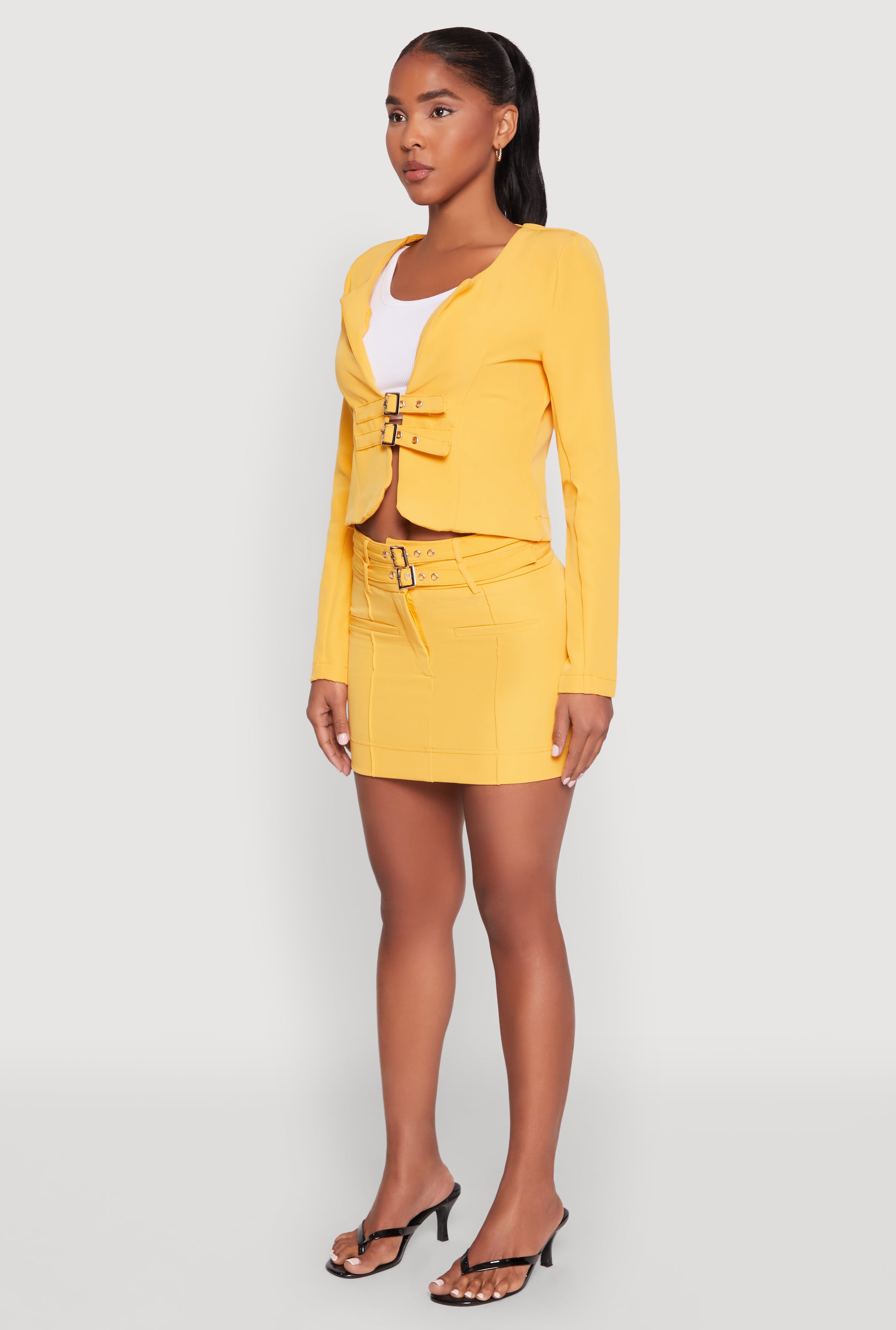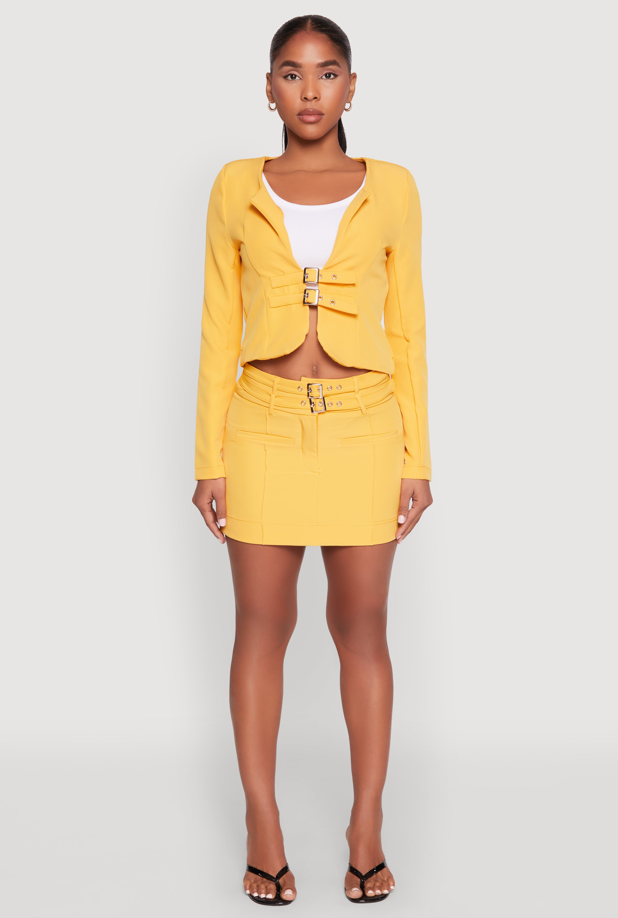 Elevate your style game with the Buckle Front Padded Shoulder Blazer, the perfect mix of chic and edgy. Featuring bold shoulder pads and a trendy cropped hem, this blazer is your new go-to for making a statement. Whether you're dressing up for a night out or adding a fashionable twist to your everyday look, this blazer has got you covered. Its buckle and grommet details add just the right touch of attitude, making it a must-have for your wardrobe. Slip into effortless confidence and turn heads wherever you go.