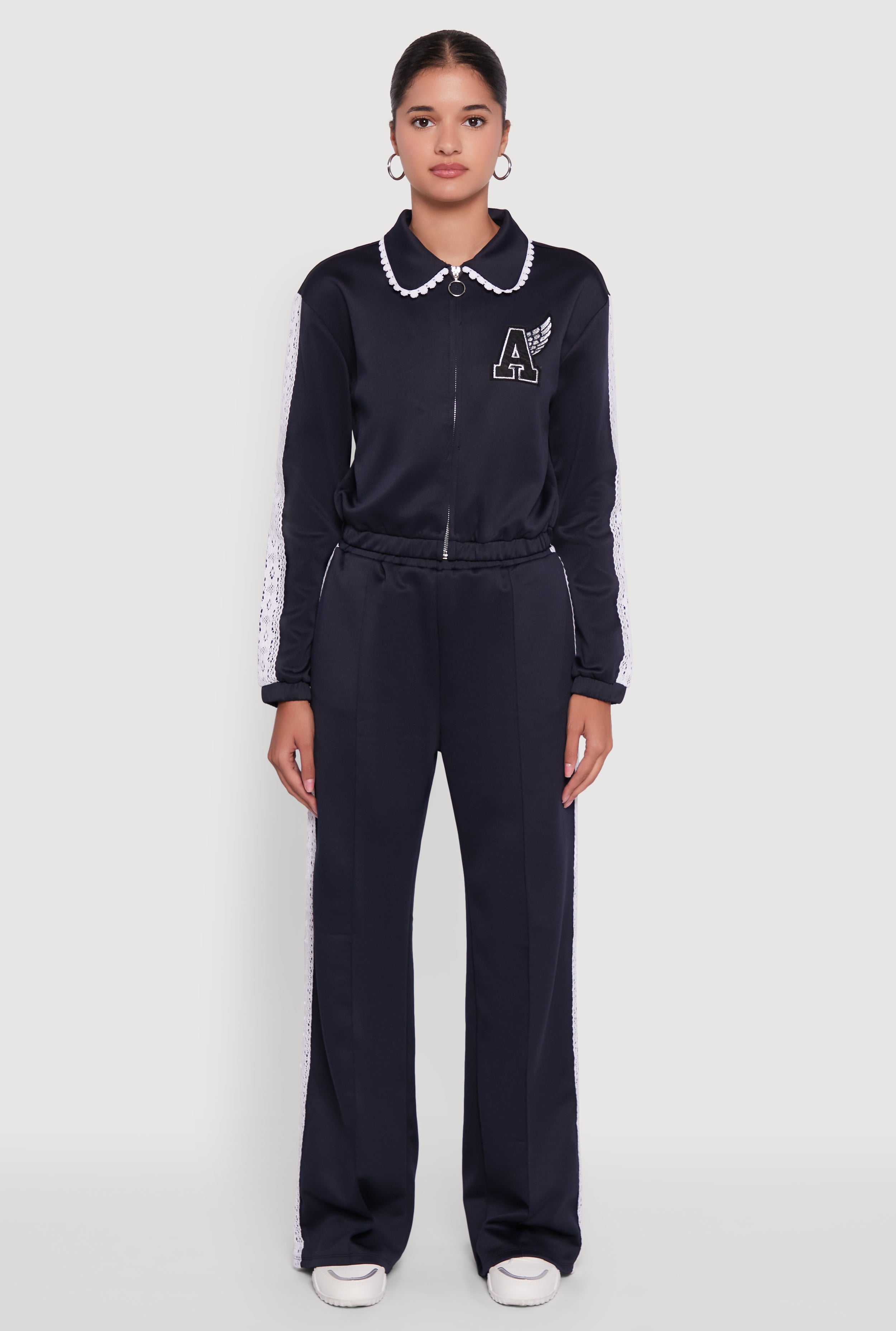 Step up your casual game with the Collared Crochet Trim Graphic Track Jacket. This jacket blends sporty vibes with cute crochet details for a look that's both comfy and effortlessly cool. The O-ring zipper adds a trendy twist while the crochet trim on the collar and sides brings a unique touch you won’t find everywhere. Perfect for those days when you want to stay active but still look put together.