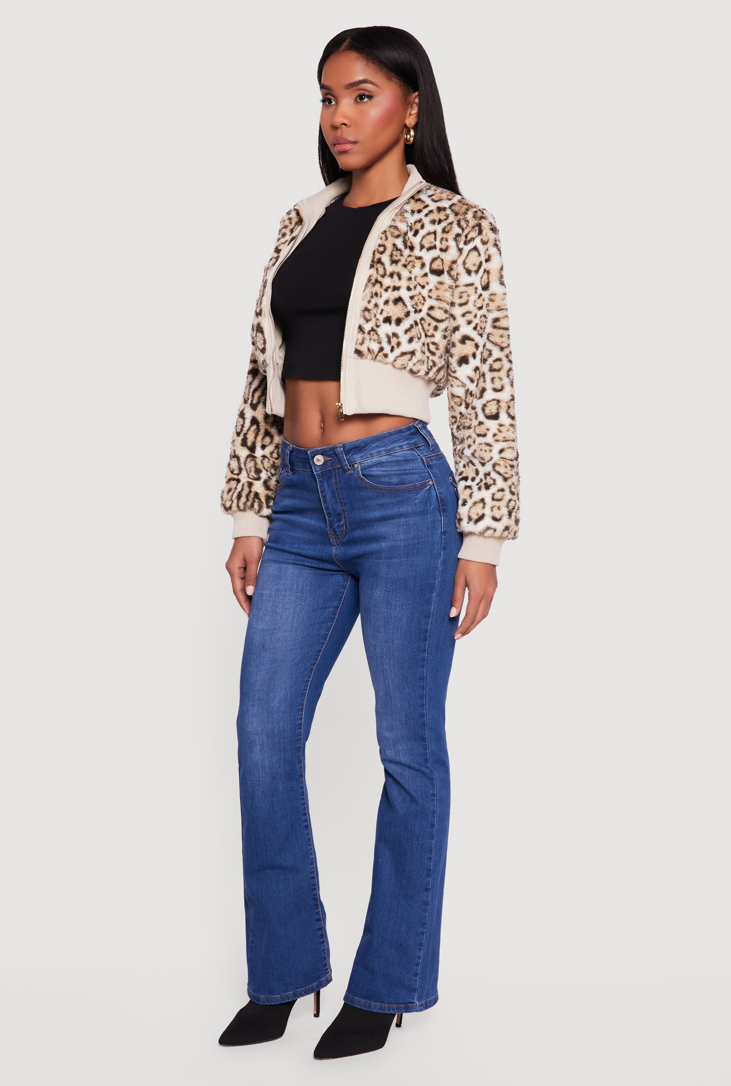 - Zip front closure offers convenience and style