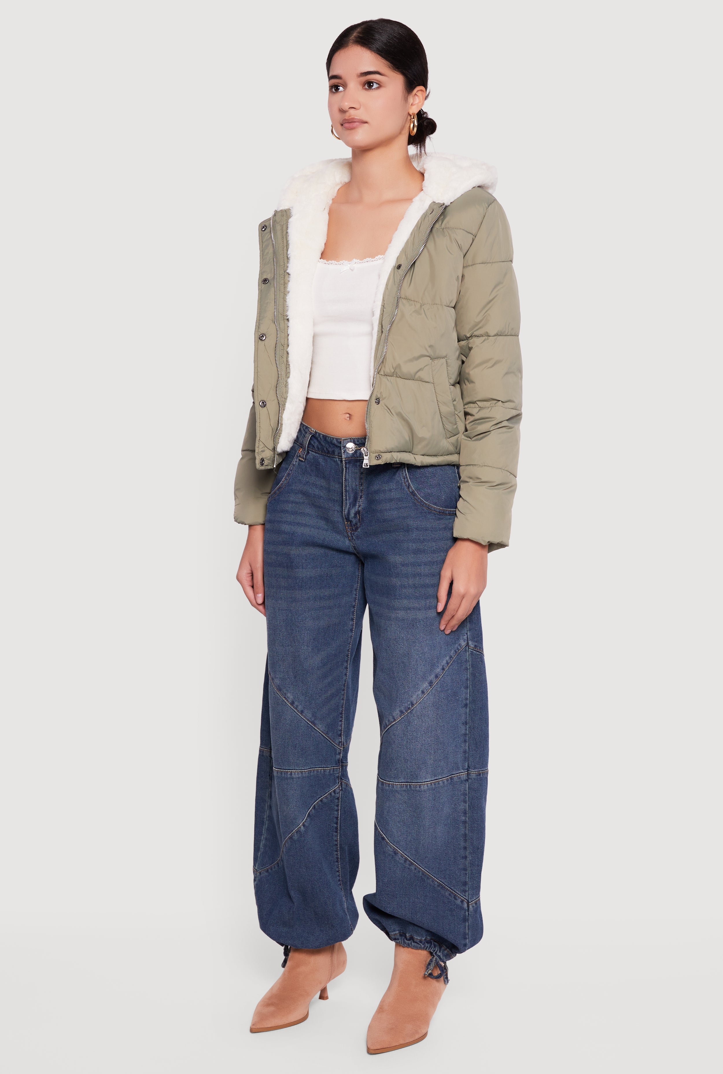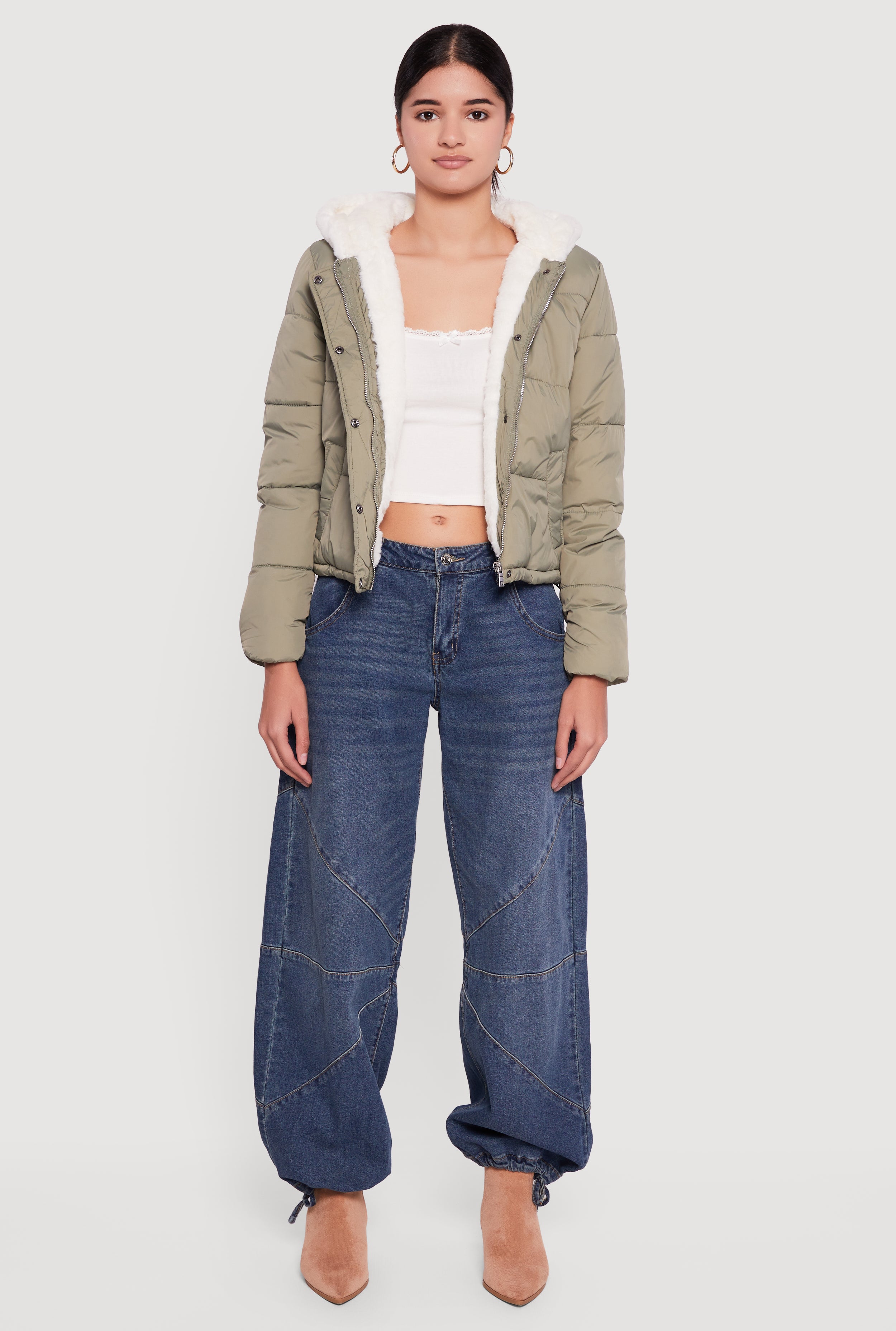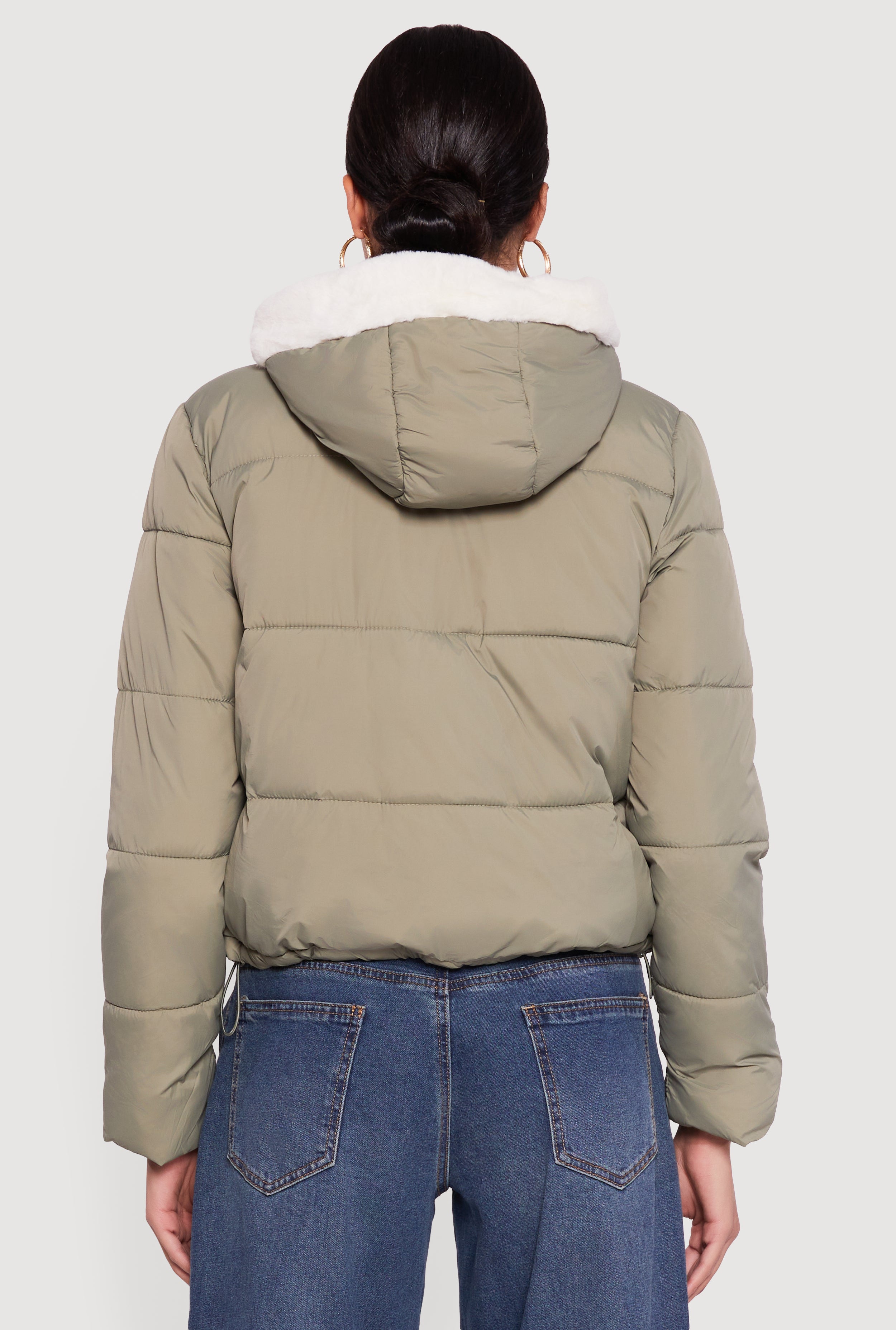 Stay cozy and stylish with this Faux Fur Lined Hooded Puffer Jacket, your new go-to for chilly days. Featuring a snug hood lined with soft faux fur, this jacket combines warmth and fashion effortlessly. The zip and snap button front make layering easy, while the toggle drawstring hem lets you customize your fit for extra comfort and protection against the cold.