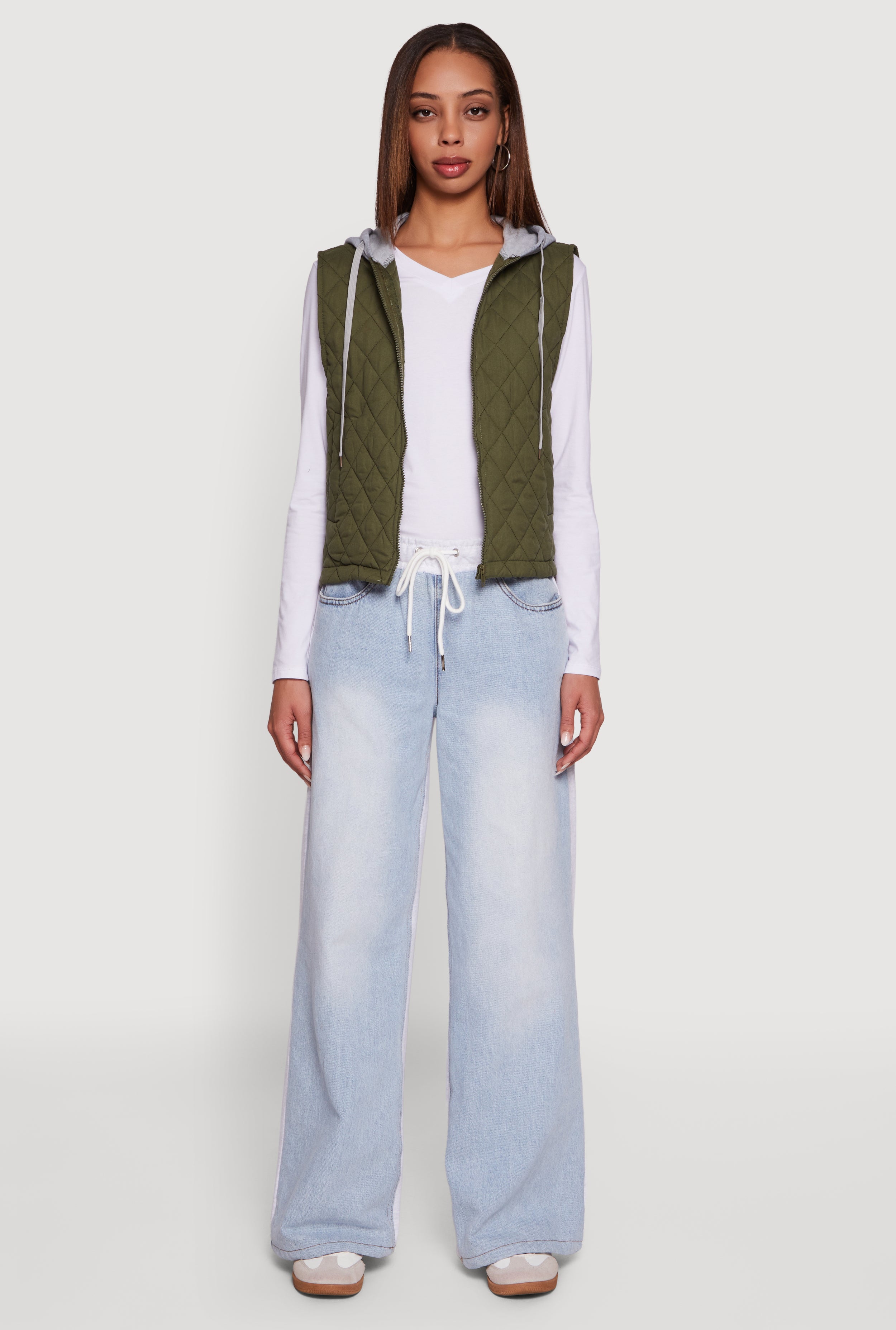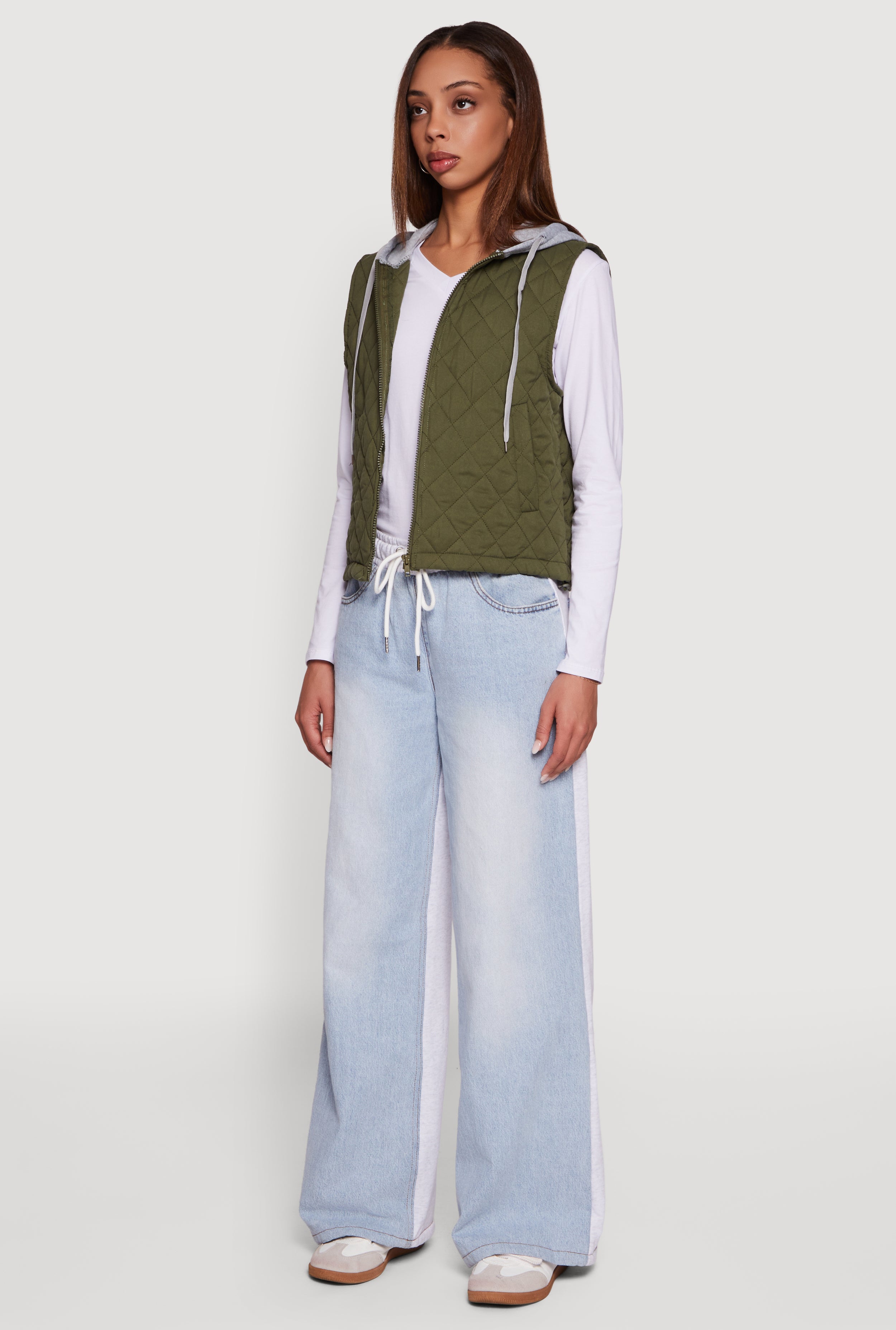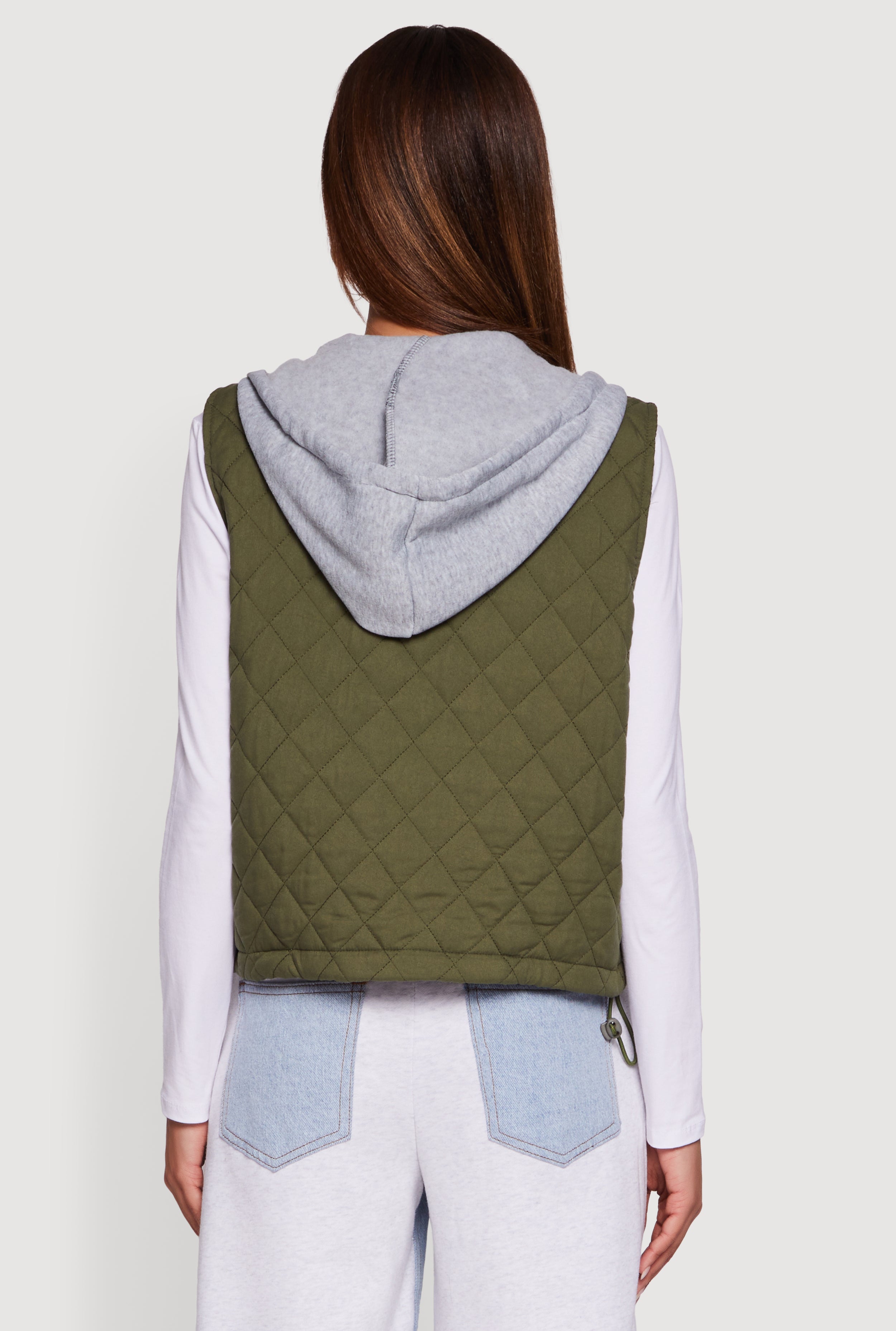 Stay cozy and stylish with this Fleece Hooded Zip Front Quilted Vest that’s perfect for layering on chilly days. Featuring a quilted design and a zip front closure, it combines warmth and convenience effortlessly. The sleeveless cut lets you move freely while the hood adds extra protection against the breeze. Whether you're running errands or meeting friends, this casual outerwear piece keeps your look fresh and comfy.