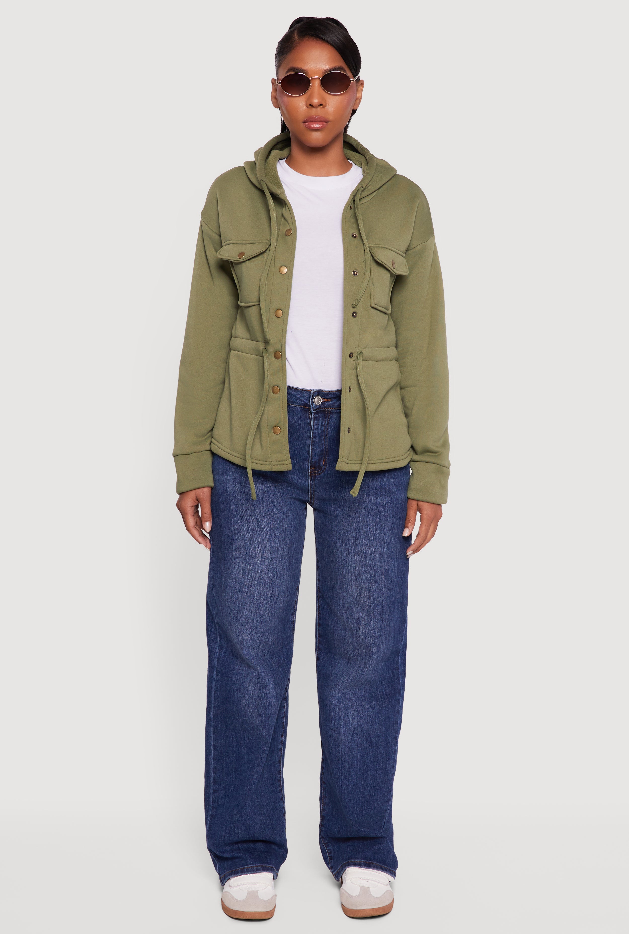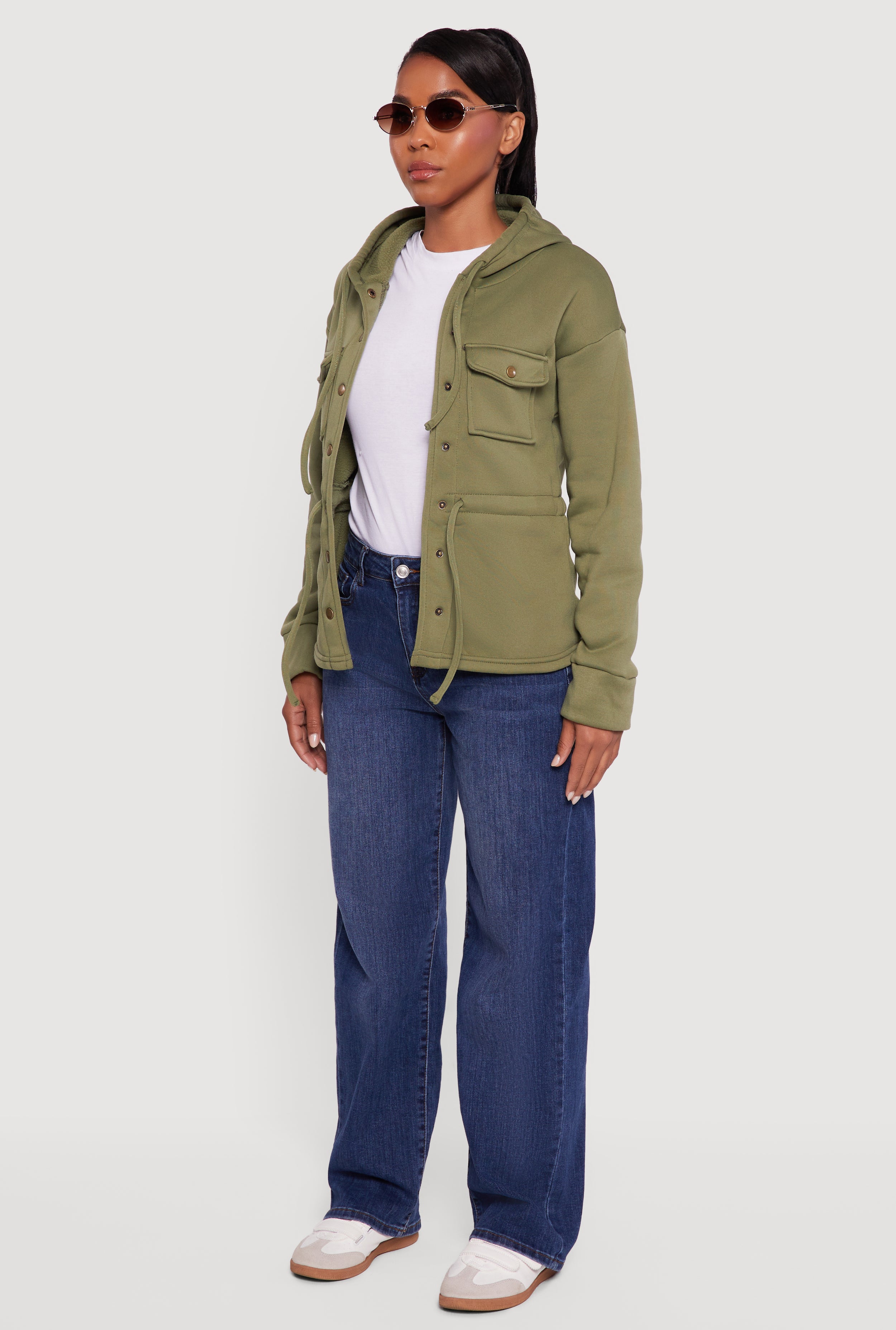 Cozy meets cool in this Sherpa Lined Snap Button Front Anorak Jacket designed to keep you warm without sacrificing style. Perfect for casual days when you want that effortlessly relaxed vibe, this jacket features a hooded neckline and long sleeves with a trendy drop shoulder cut. The soft Sherpa lining wraps you in comfort, while the snap button front makes it easy to layer up or down. Whether you're heading out for a quick errand or chilling with friends, this solid-colored anorak is your new go-to for laid-back warmth and street-smart style.