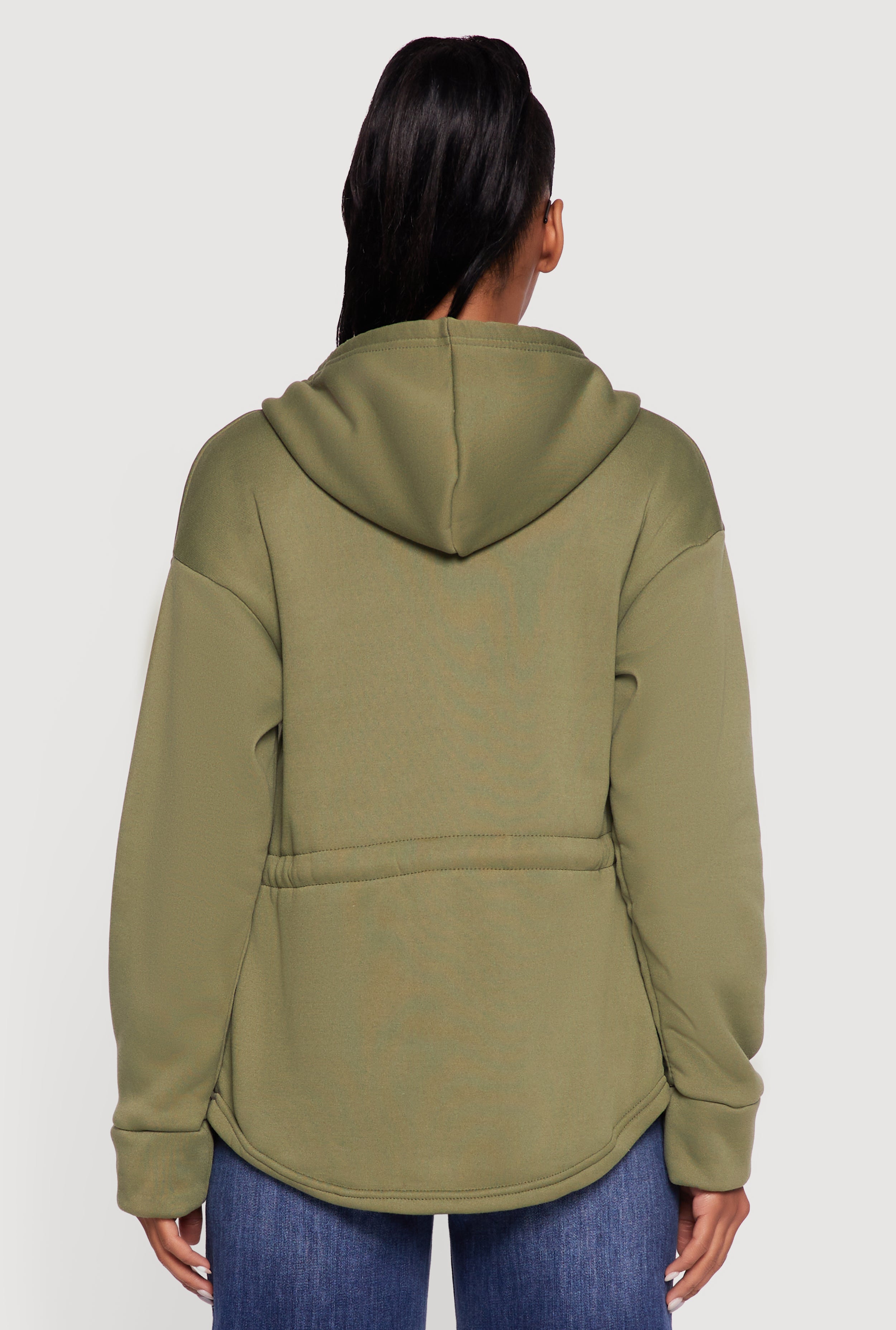 - Hooded neckline adds extra cozy coverage