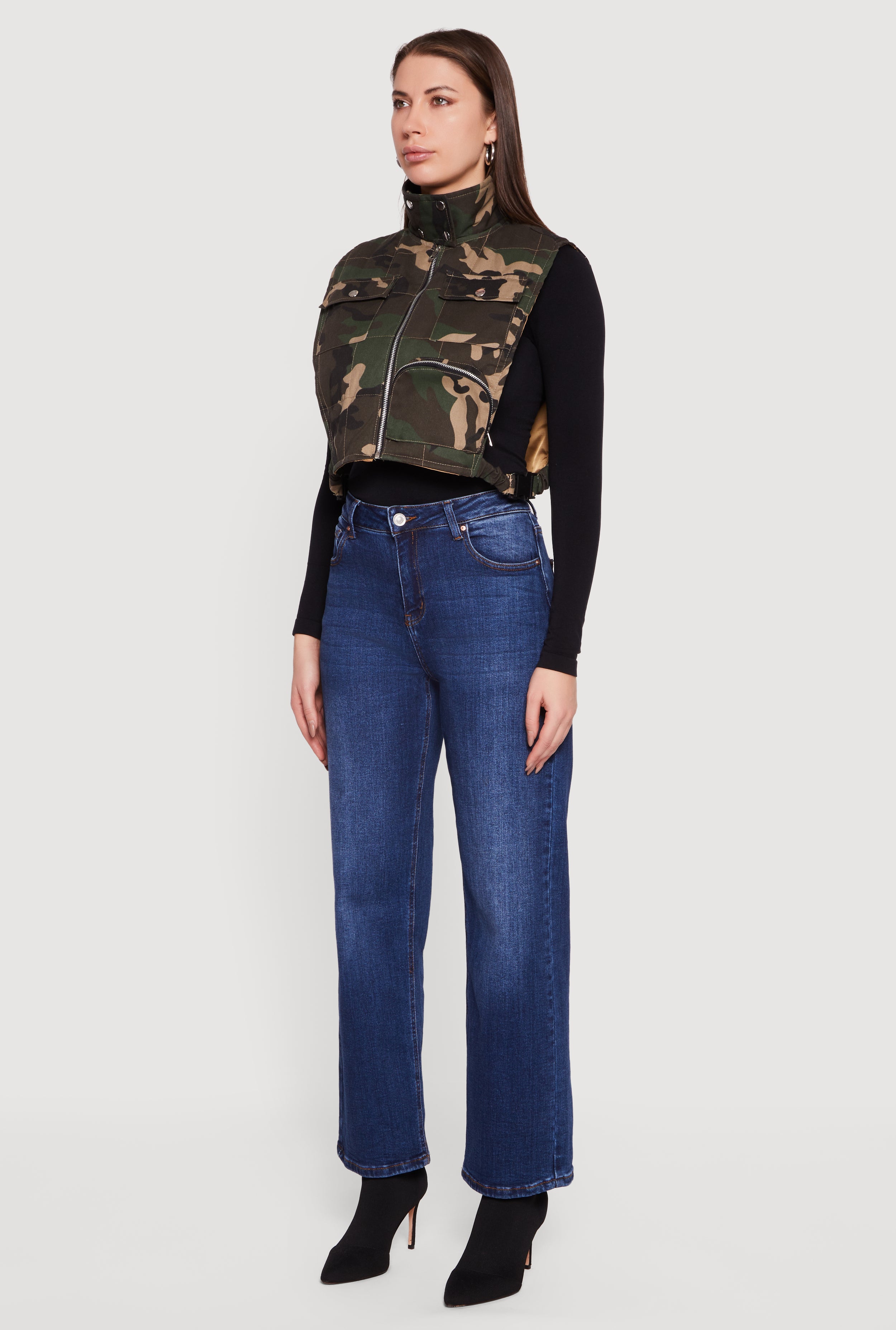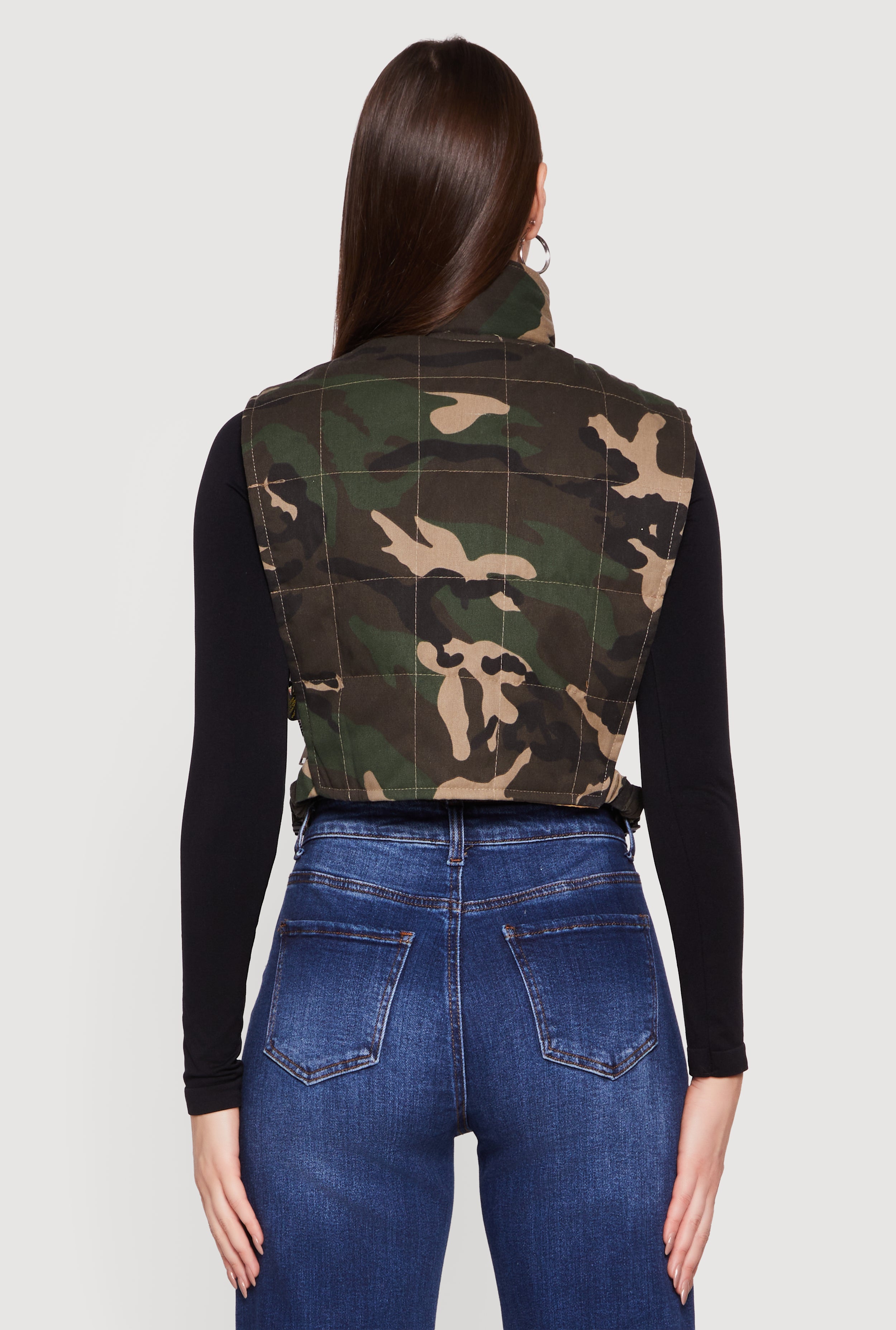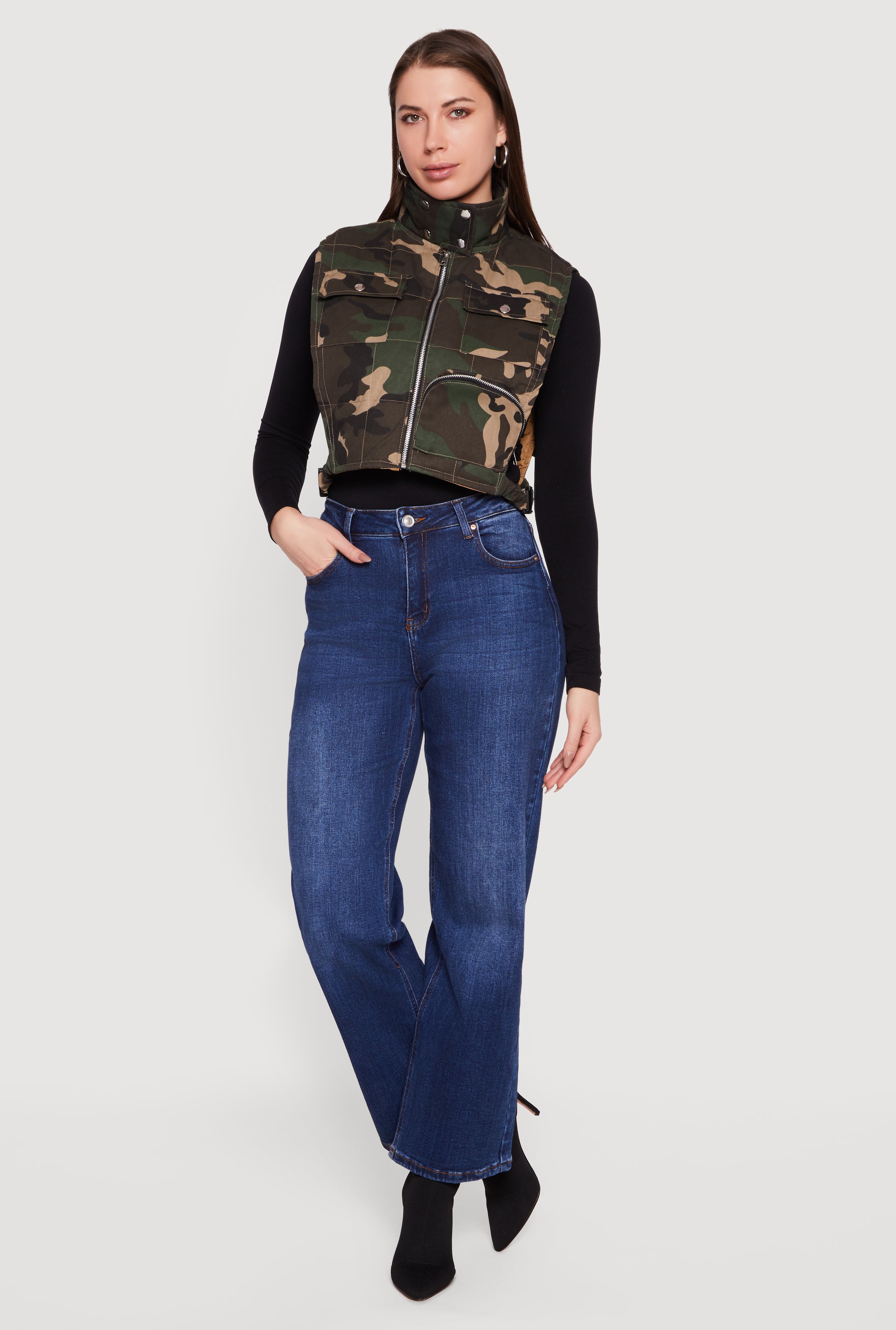 Step up your style game with this Zip Front Mock Neck Cropped Camouflage Vest. Perfect for layering or rocking solo, this vest brings an edgy vibe with its sleek zip closure and side-release buckles. The mock neck adds a trendy touch while the cropped fit keeps it fresh and flattering. Whether you're hitting the streets or just chilling with friends, this lightweight outerwear piece is your new go-to for effortless cool.