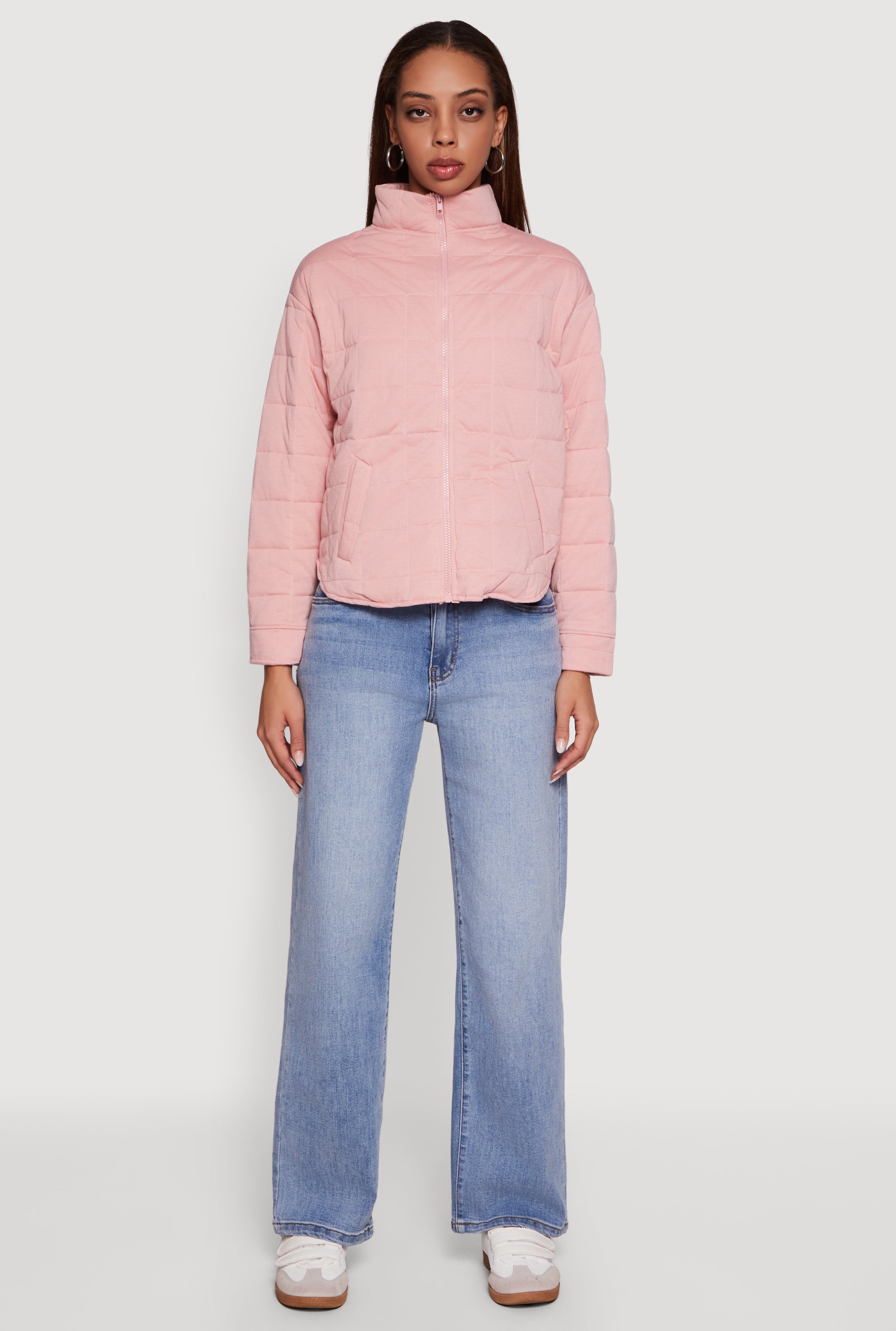 Step out in style and warmth with this Mock Neck Zip Front Quilted Jacket. Designed for casual days and chilly evenings, its sleek quilted pattern and mock neck add a modern twist to your outerwear collection. The convenient zip front makes layering effortless while keeping the cold at bay. Perfect for those who want to stay cozy without sacrificing style.