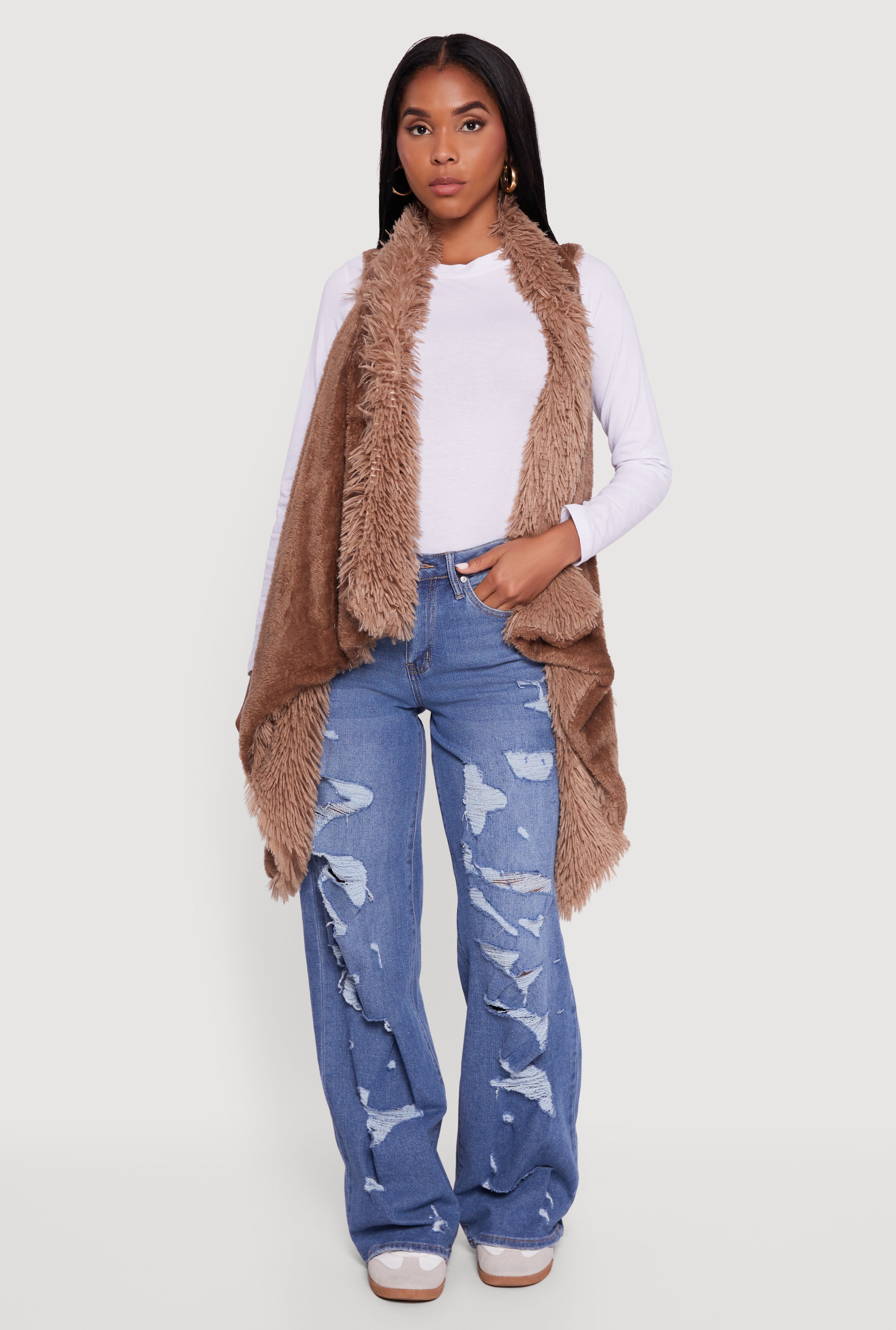 Slip into cozy vibes with this Faux Fur Lined Reversible Shaggy Vest designed to keep your style on point and your comfort maxed out. Perfect for layering on casual days or adding a chic touch to your night out look, this sleeveless vest features a classic fit that flatters every curve from XS to 4X. Flip it inside out for a fresh take on your outfit and enjoy the softness of faux fur that feels as good as it looks. Whether you're running errands or meeting friends, this versatile poncho-style vest is your new go-to for effortless cool and cozy warmth.