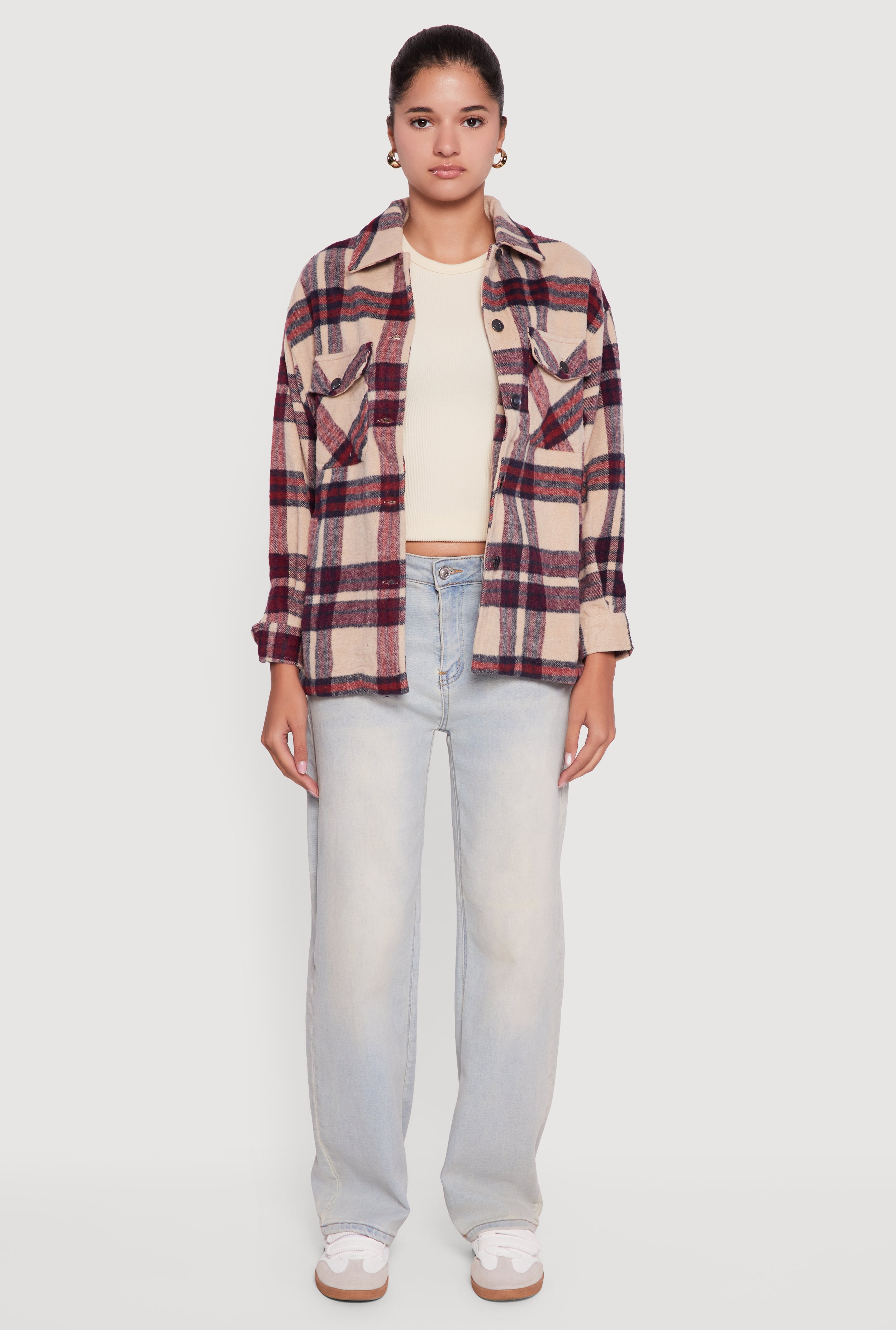 Step up your casual game with the Plaid Brushed Knit Button Front Shacket. This cozy, laid-back layer combines the timeless charm of plaid with the soft comfort of brushed knit fabric. Perfect for those chilly days when you want to look effortlessly cool without sacrificing warmth. Button it up for a polished vibe or leave it open to show off your favorite tee. Your new go-to for easy style and all-day comfort.