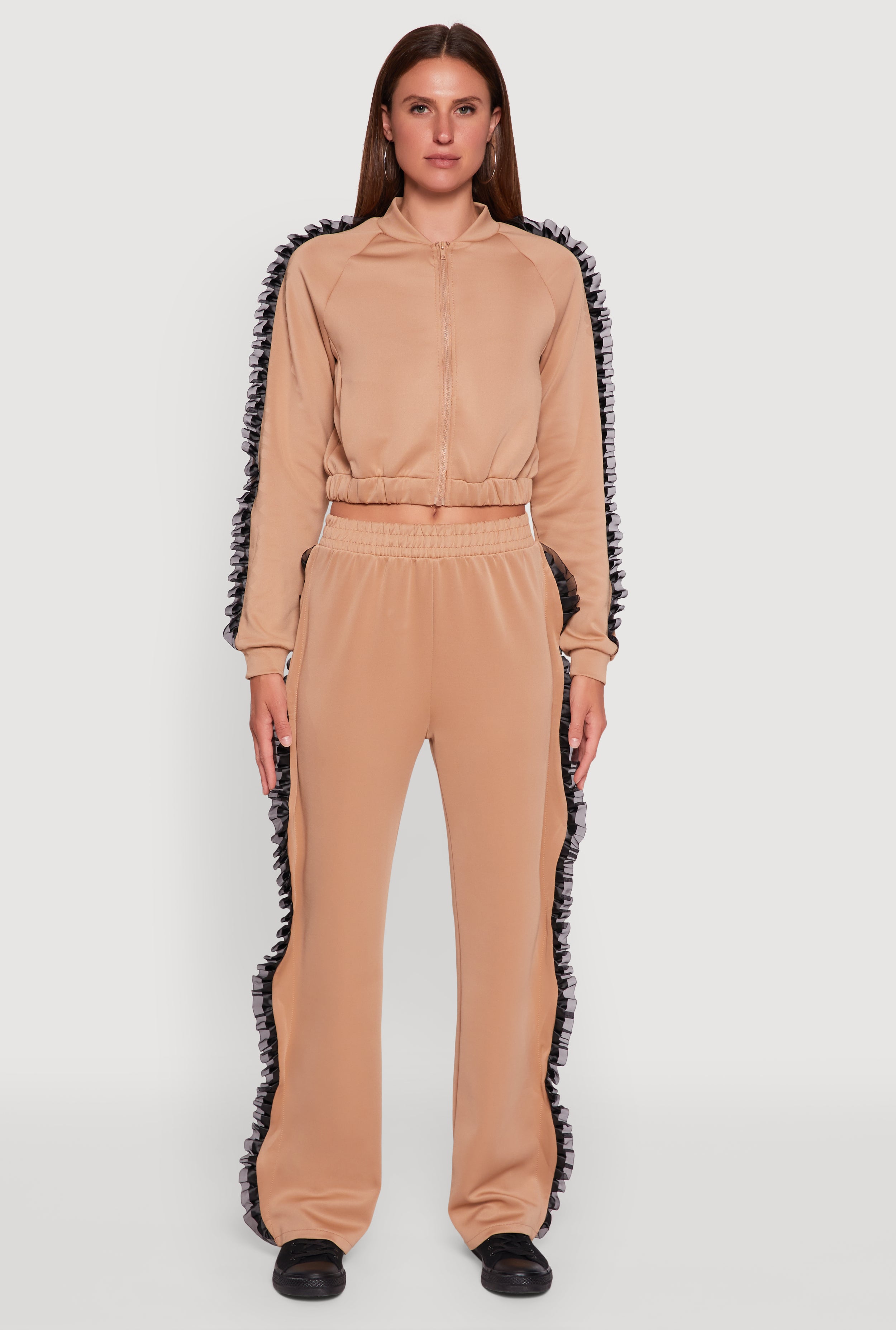 Step up your casual game with the Ruffle Chiffon Organza Long Sleeve Zip Front Jacket. This lightweight, cropped jacket blends delicate chiffon and airy organza for a dreamy, effortless look. The playful ruffles add a flirty touch while the band collar and zipper closure keep it sleek and modern. Perfect for layering over your athleisure or leisurewear, it’s your new go-to for chill days when you want to feel comfy and cute without trying too hard.