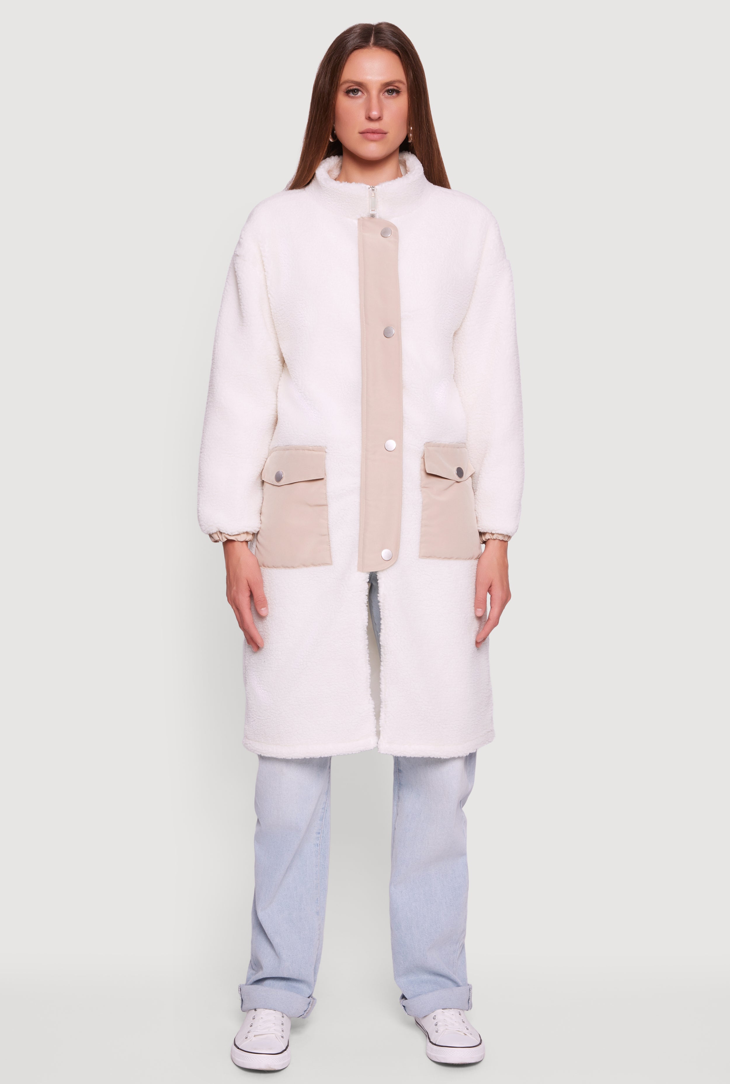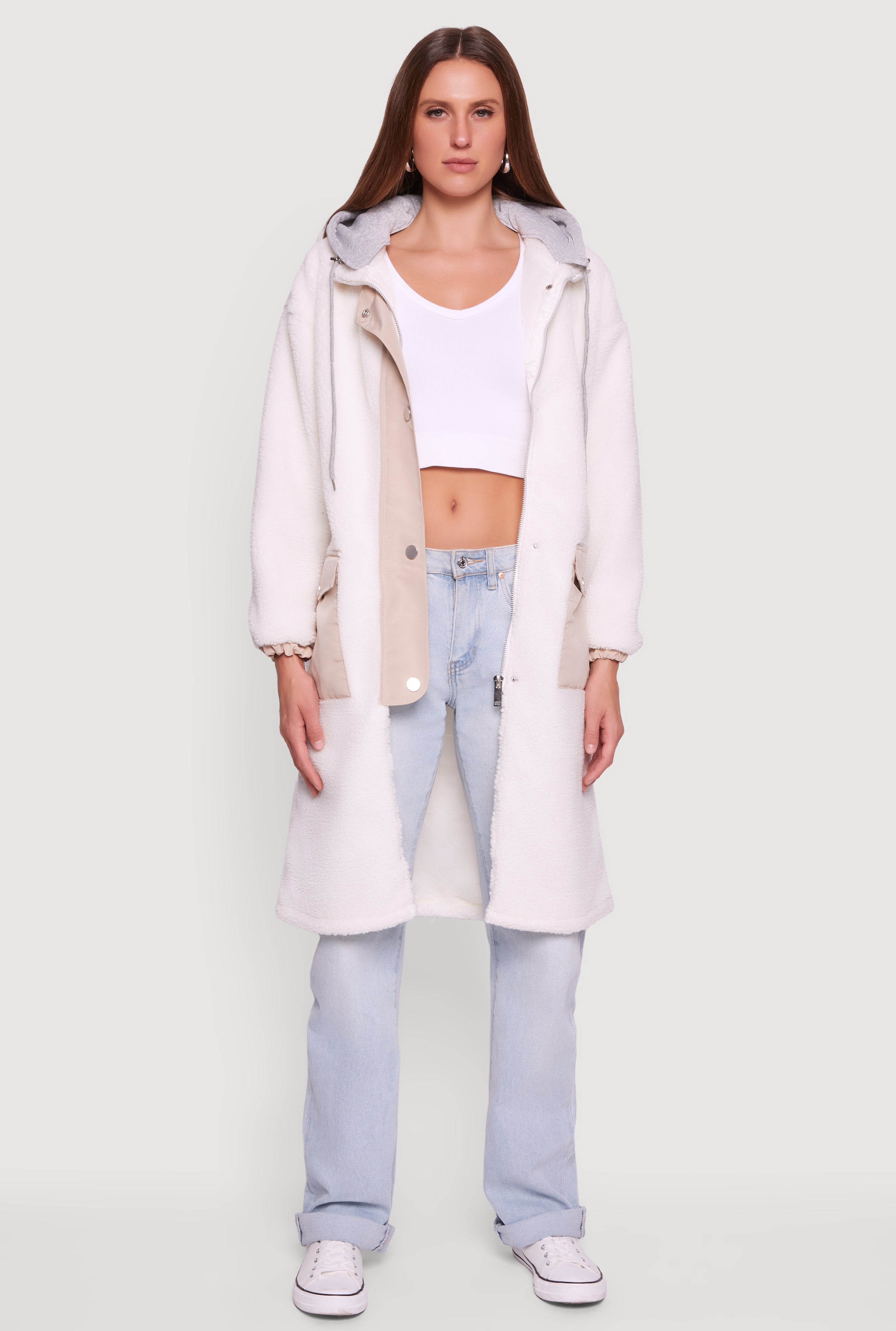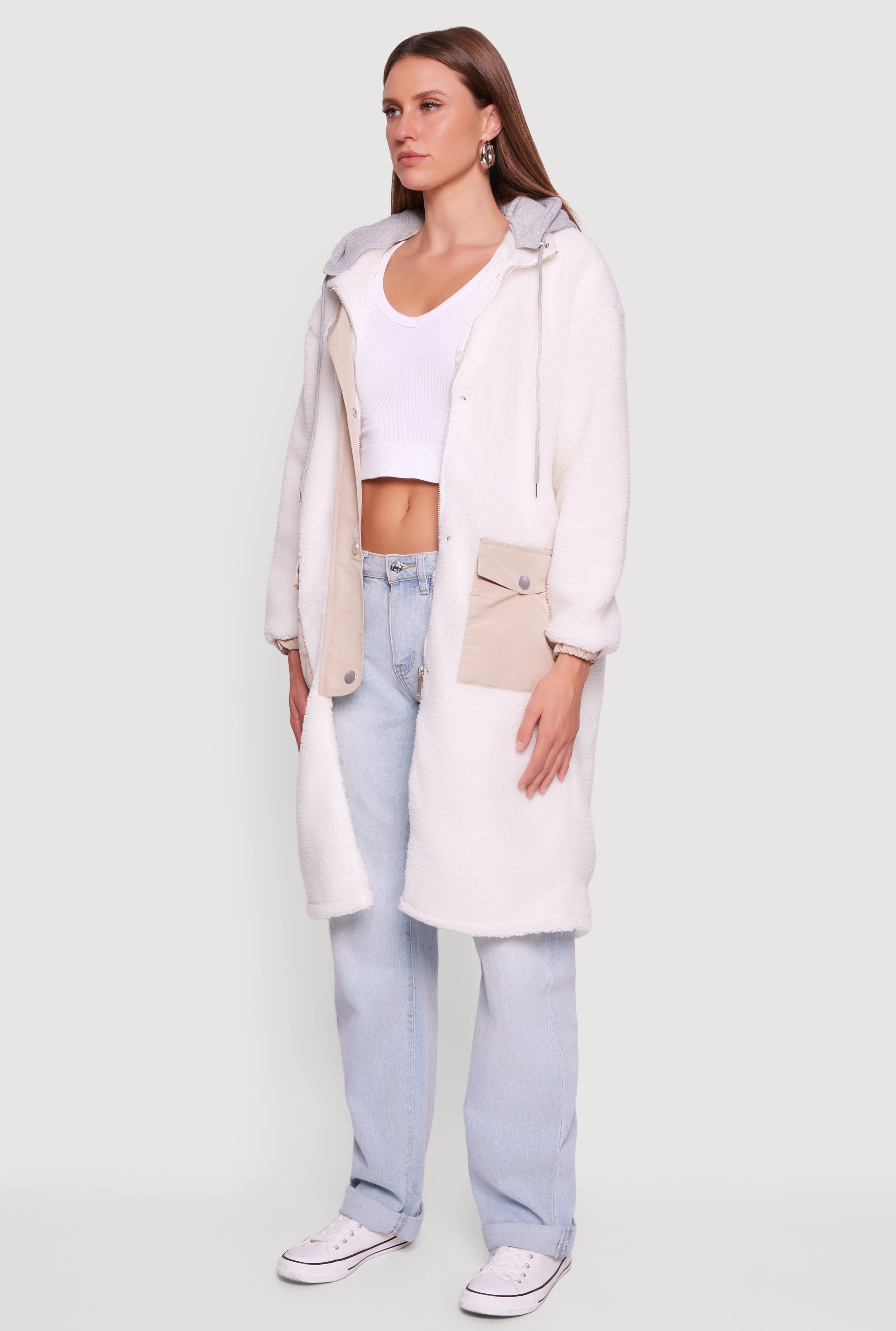 Stay cozy and stylish with this Snap Button Zip Front Sherpa Coat featuring a removable hood for versatile looks. Perfect for casual days, this sherpa jacket combines warmth and comfort with easy snap buttons and zipper closures. Whether you're out running errands or meeting friends, this lightweight outerwear adds a trendy touch to any outfit.