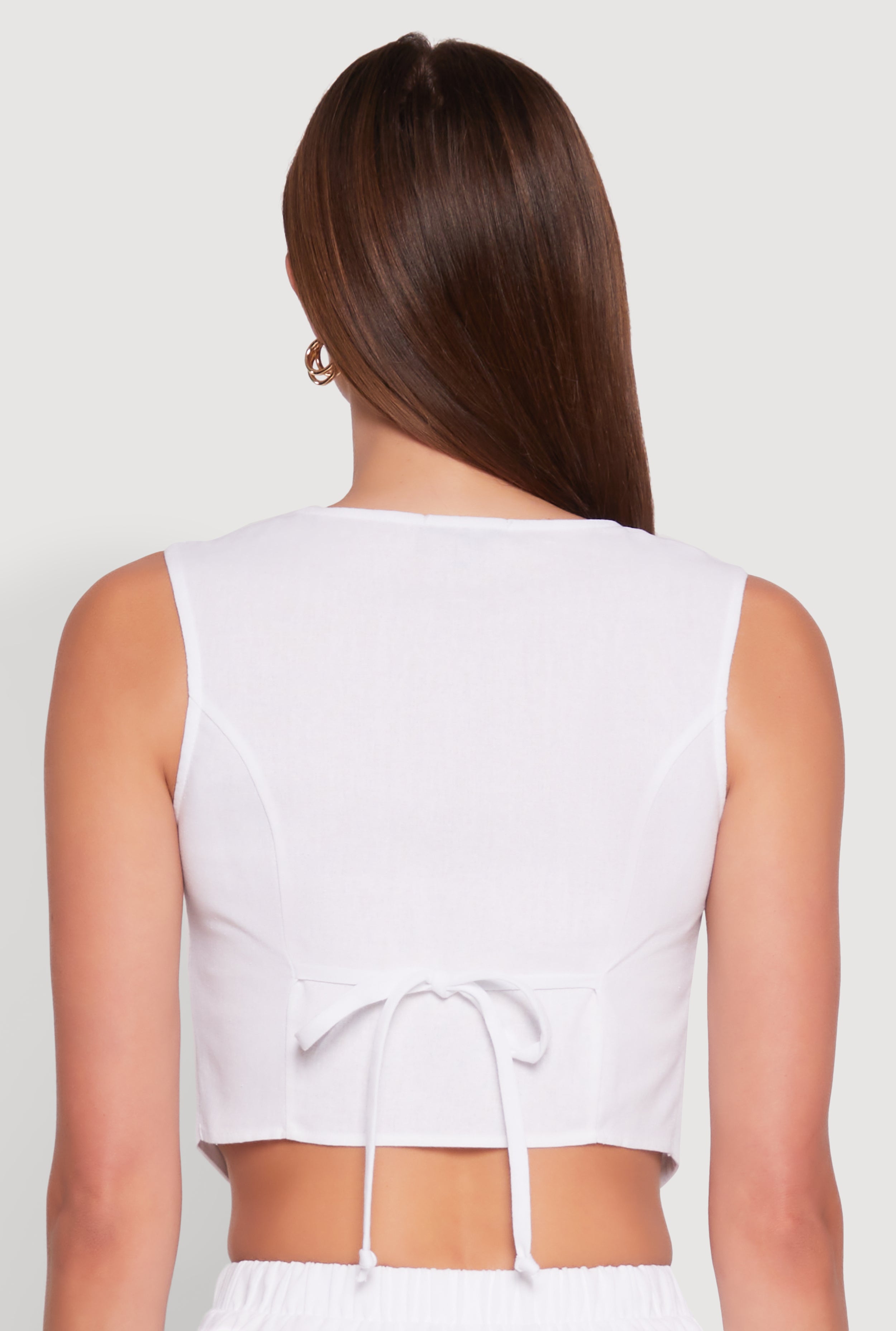 Upgrade your wardrobe with this effortlessly chic Cropped Square Neck Vest. Made from breathable linen, it’s perfect for adding a fresh, stylish touch to your everyday looks. The sleeveless design and cropped hem give it a modern vibe, while the tie back detail adds a flirty, customizable fit. Whether you're dressing up for a casual day out or layering for a more polished set, this vest is your new go-to piece for looking cute and feeling confident.