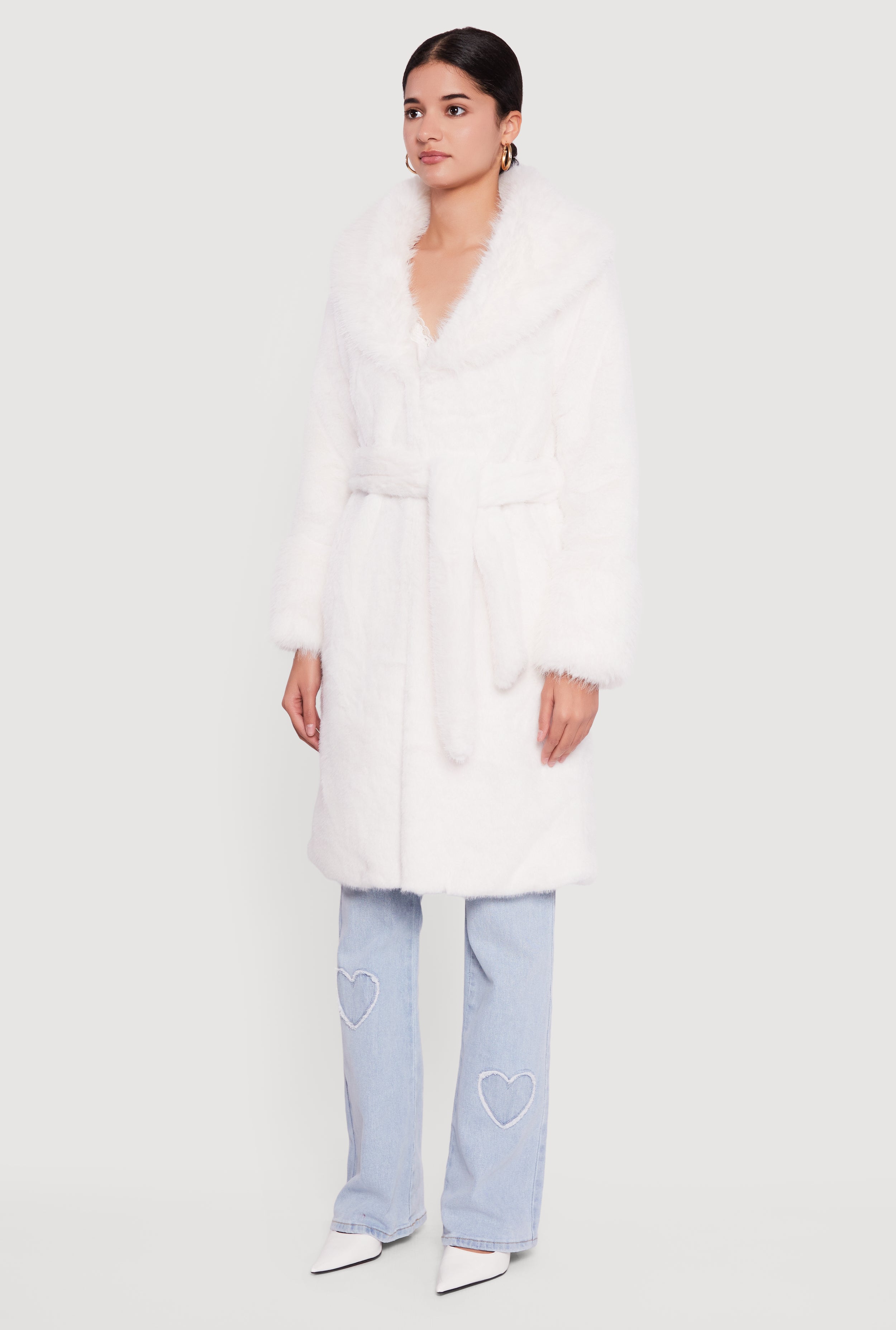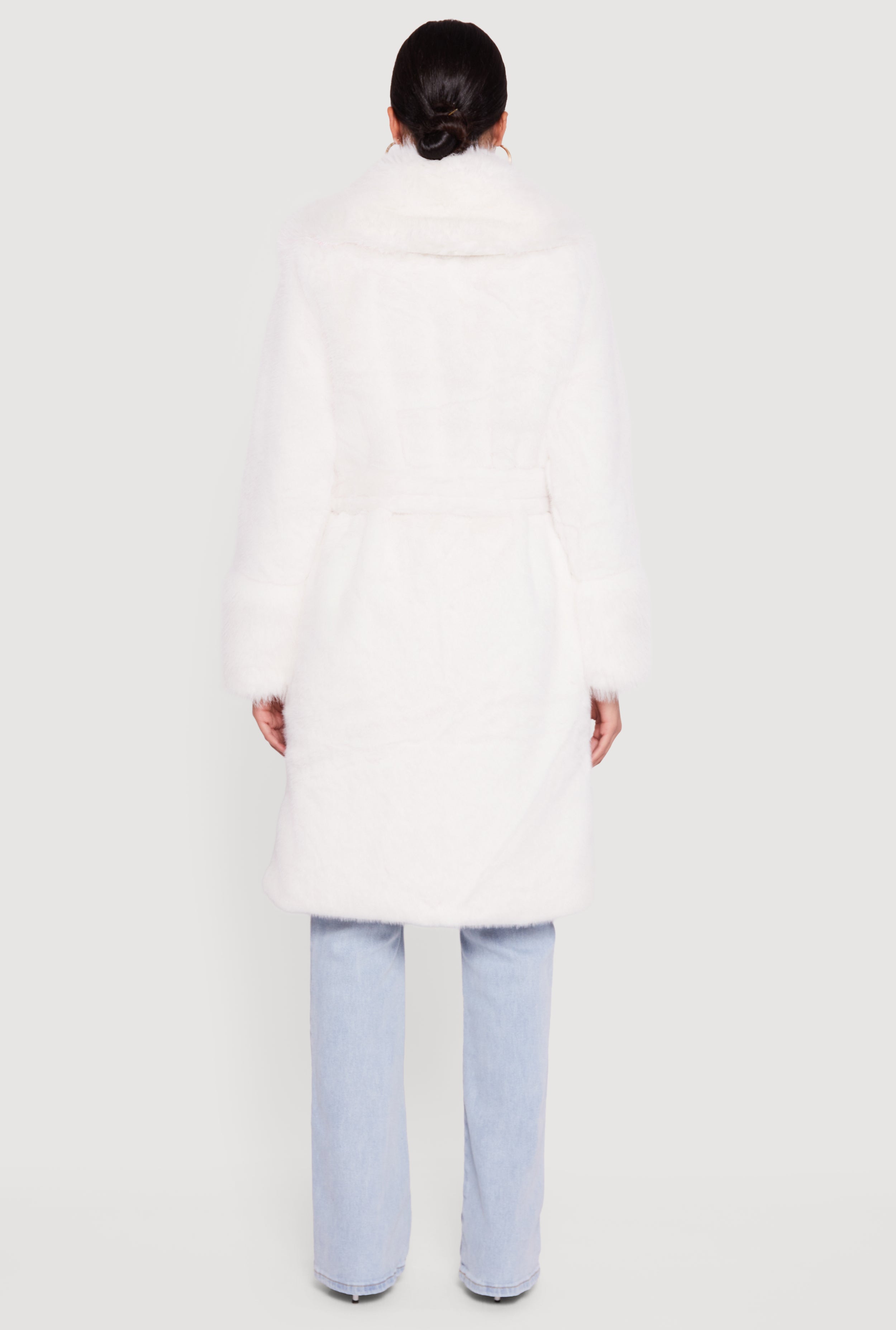 Tie Waist Belted Faux Fur Trench Coat